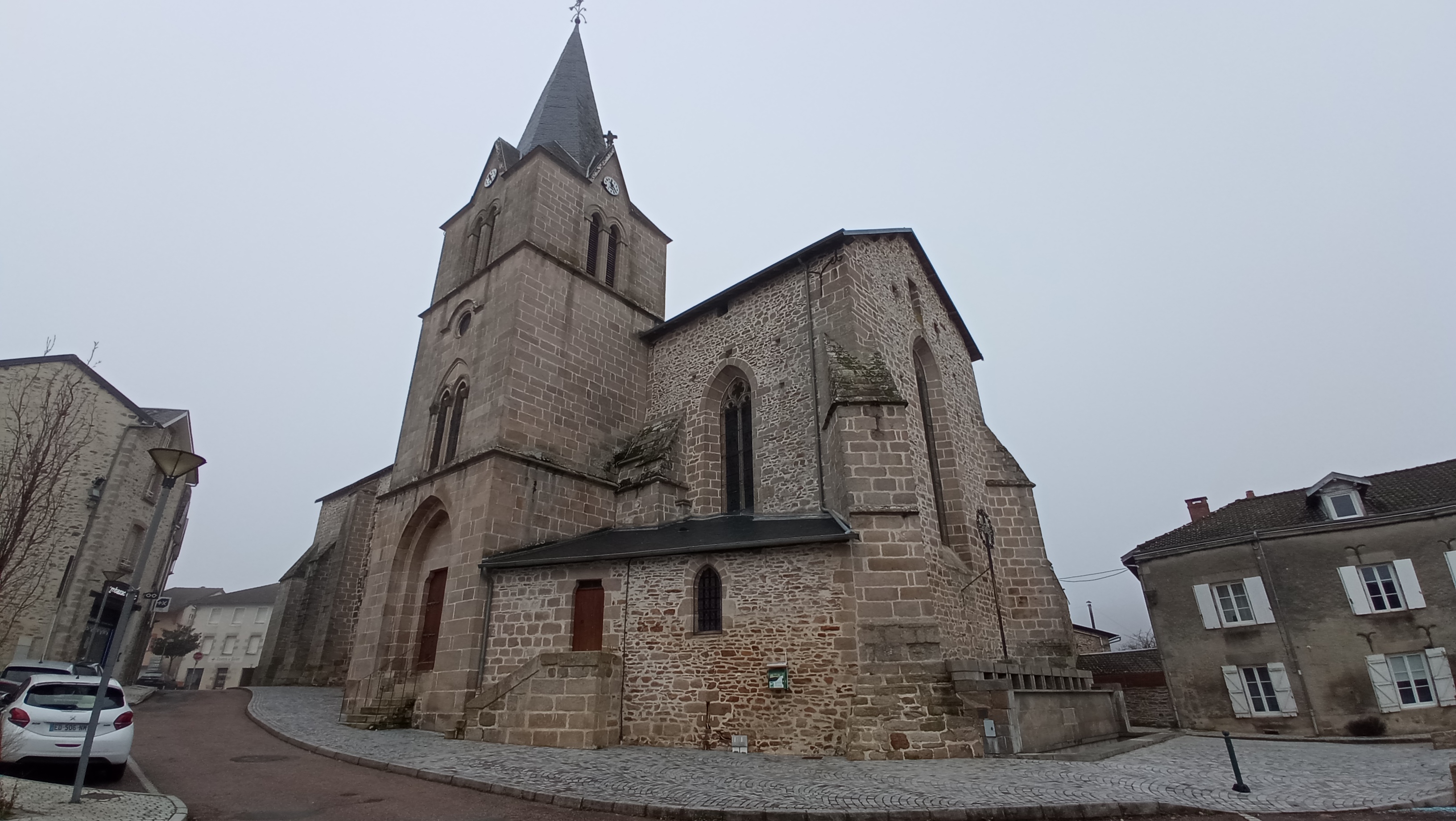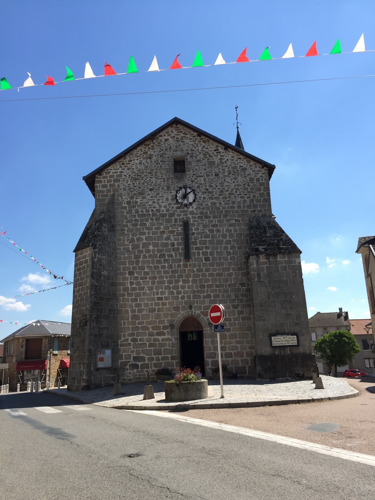 Construite au 12ème siècle, il reste peu de chose de l'édifice primitif. Cette église fut presque entièrement reconstruite, d'abord au 16ème siècle puis aux 18ème et 19ème siècles. Cette petite église est bien mise en valeur sur la place du village d'Ambazac, village charmant dont le musée, entre-autre, est tout à fait intéressant. J'ai trouvé à cette église un charme certain. Fort accueillant lorsque l'on y pénètre, cet édifice abrite deux éléments du trésor de l'abbaye de Grandmont, deux éléments presque millénaires : une châsse-reliquaire byzantine, décorée d'émaux (technique limousine des champlevés) et une dalmatique (tissage en soie brodée d'or).
