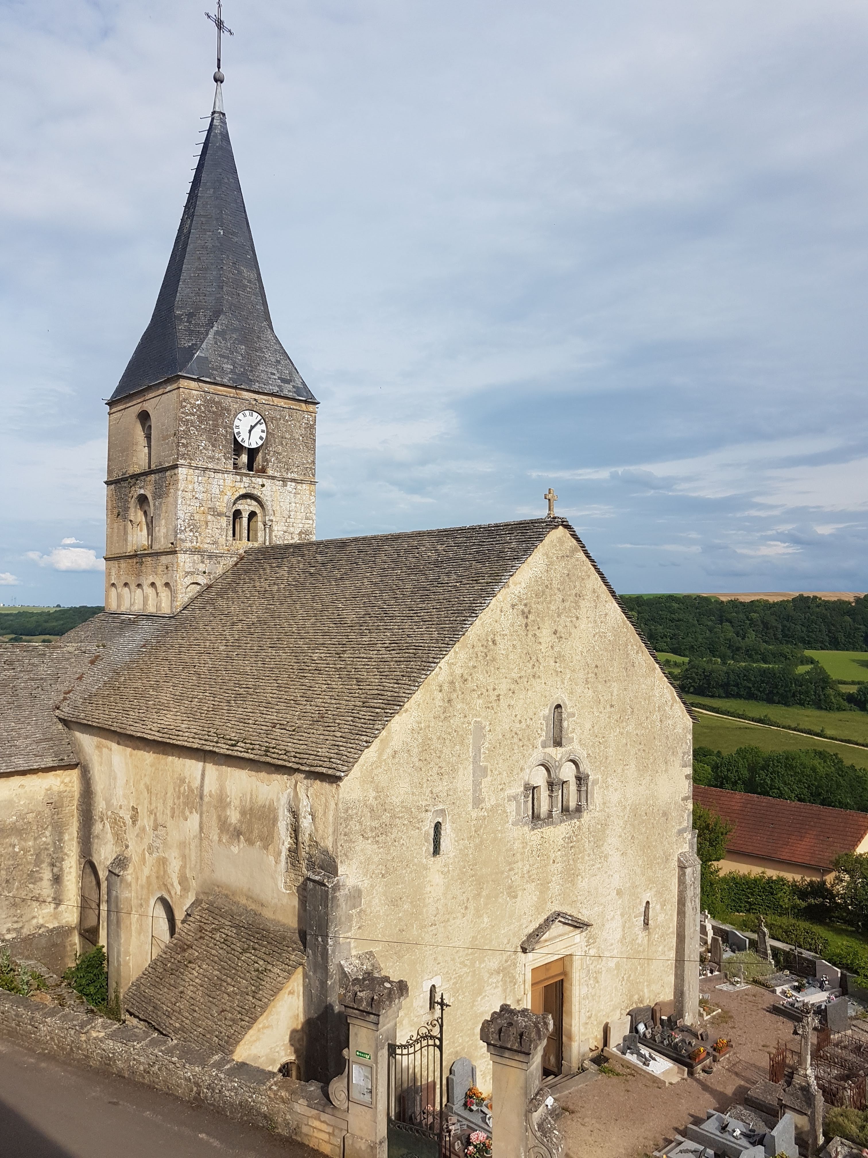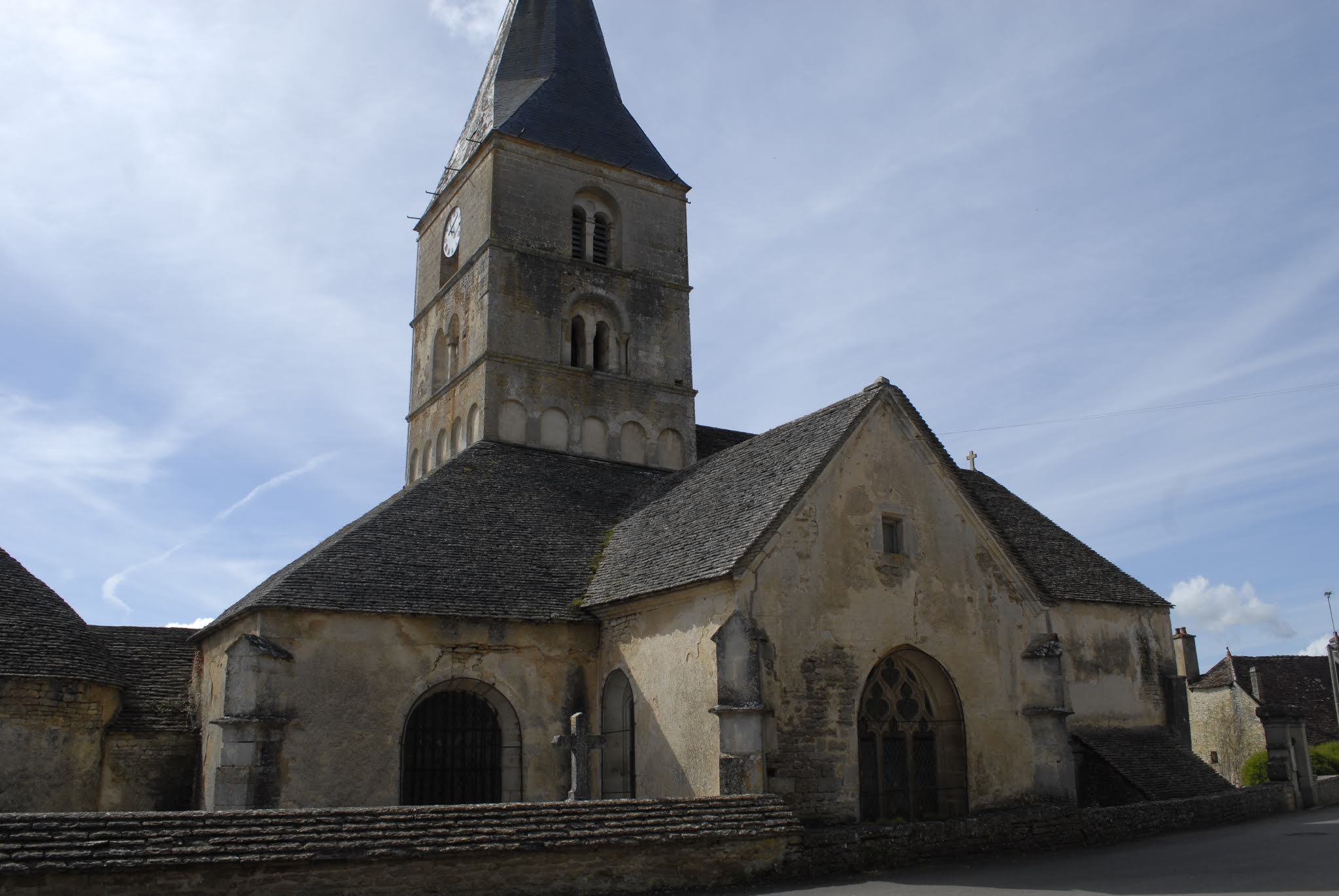 Une splendide église romane, en haut du village, et donnant face au château de l'autre côté de la vallée. L'ensemble présente toutes les caractéristiques du roman bourguignon. L'architecture est d'une grande finesse, et l'état de conservation est bon. Les intérieurs sont d'une pureté. L'église dispose encore de son cimetière attenant. Les décors intérieurs et tout l'ensemble est à visiter.