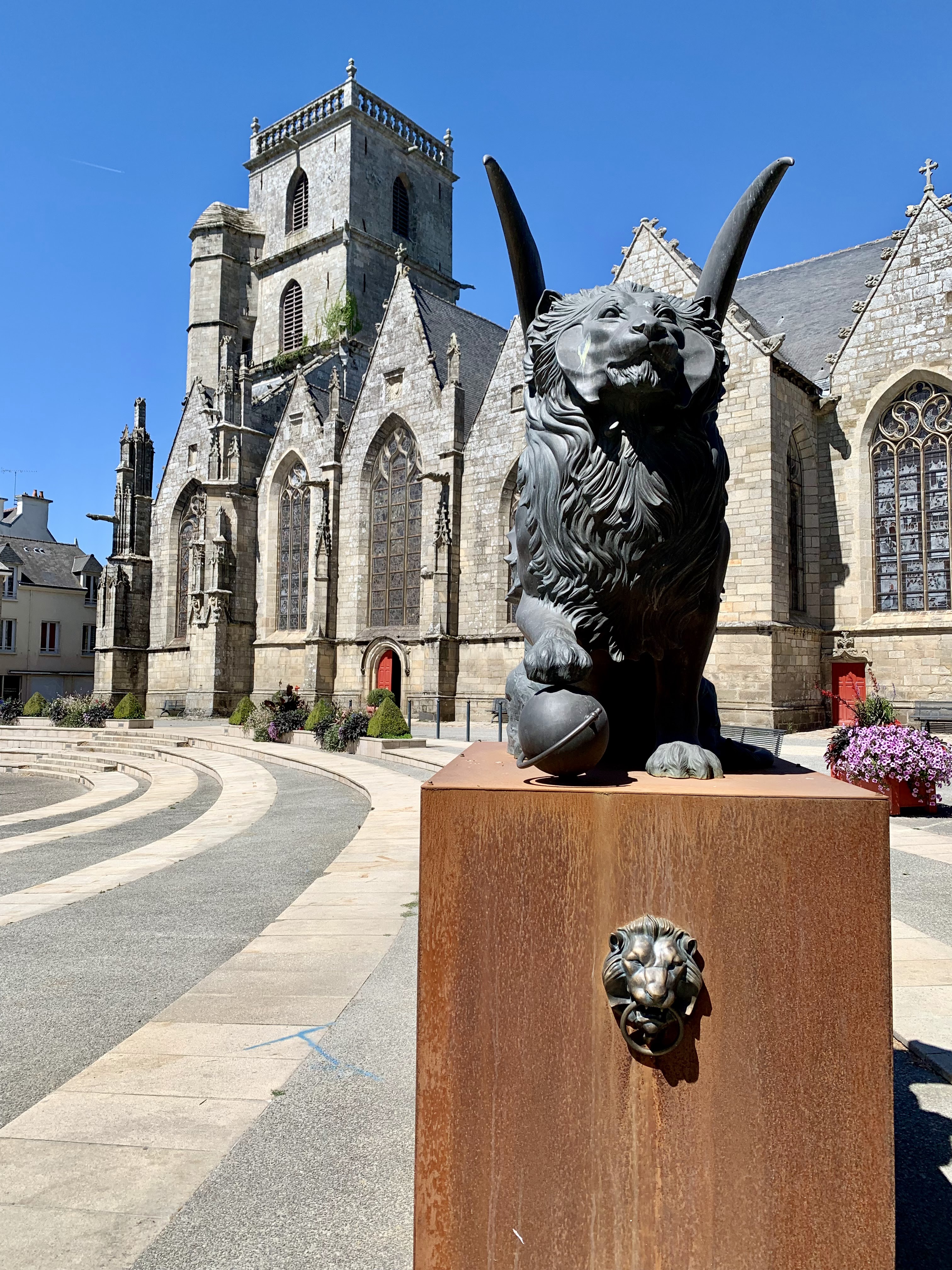 Charmante petite commune avec cette jolie église qui surplombe en sa place gardée par l’emblème du lion des ducs de Bretagne. Très bien mise en valeur de l’extérieur. Pas de fioriture mais reposante