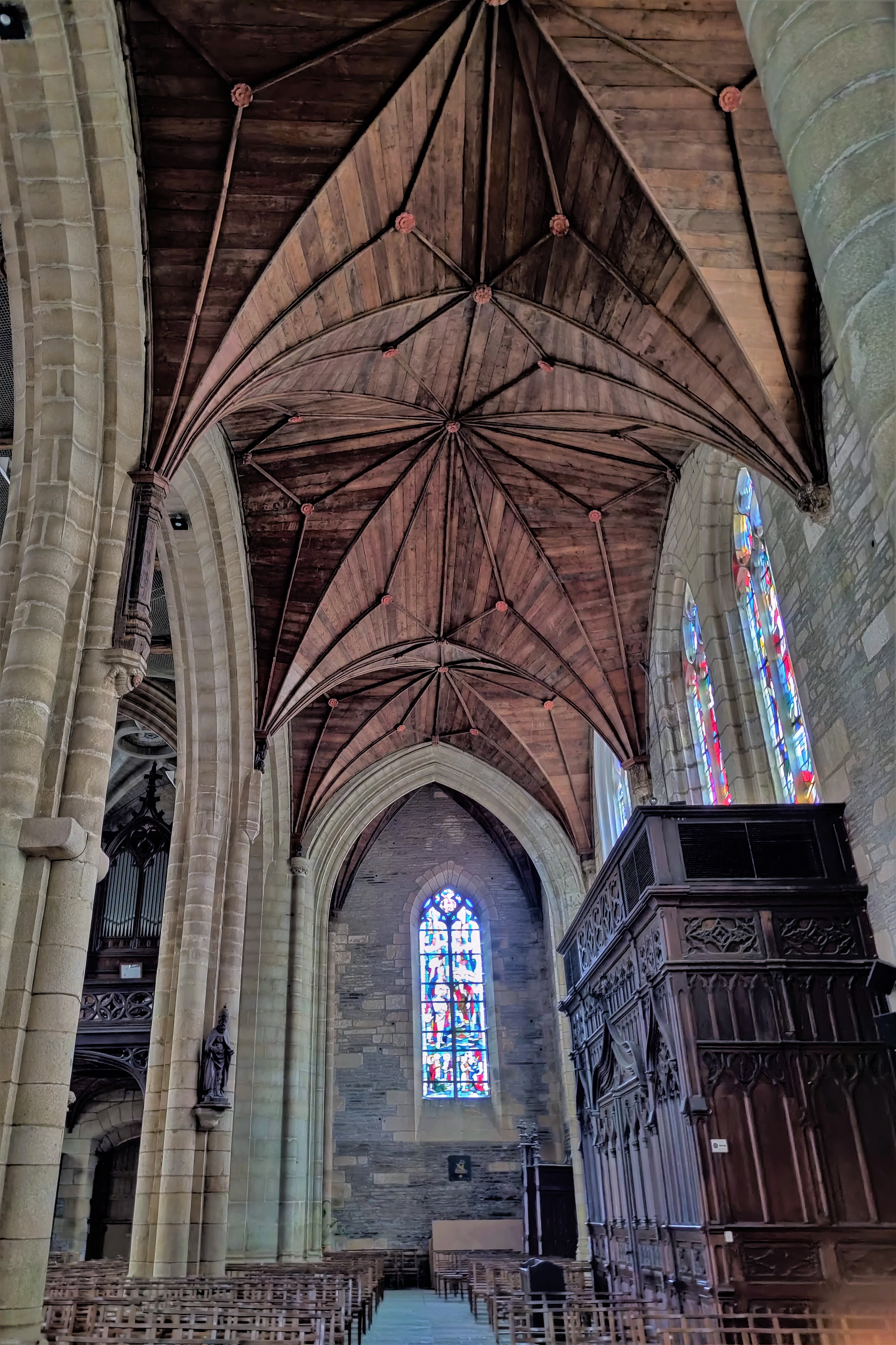Une église du 15ème et 16ème, remplaçant un édifice médiéval détruit durant les conflits féodaux du 14ème. Un plan rectangulaire pour une église aux dimensions imposantes, riches de décors sculptés lapidaires à l'extérieur. A l'intérieur, le plafonnement en bois, voûté en berceau brisé du vaisseau central et en fausse croisées d'ogives des bas-côtés est remarquable. Les décors des poutres n'étaient pas éclairés, un manque de mise en valeur dommageable. Un endroit propre au recueillement, à la prière ou à la simple détente, loin de l'agitation de la cité.