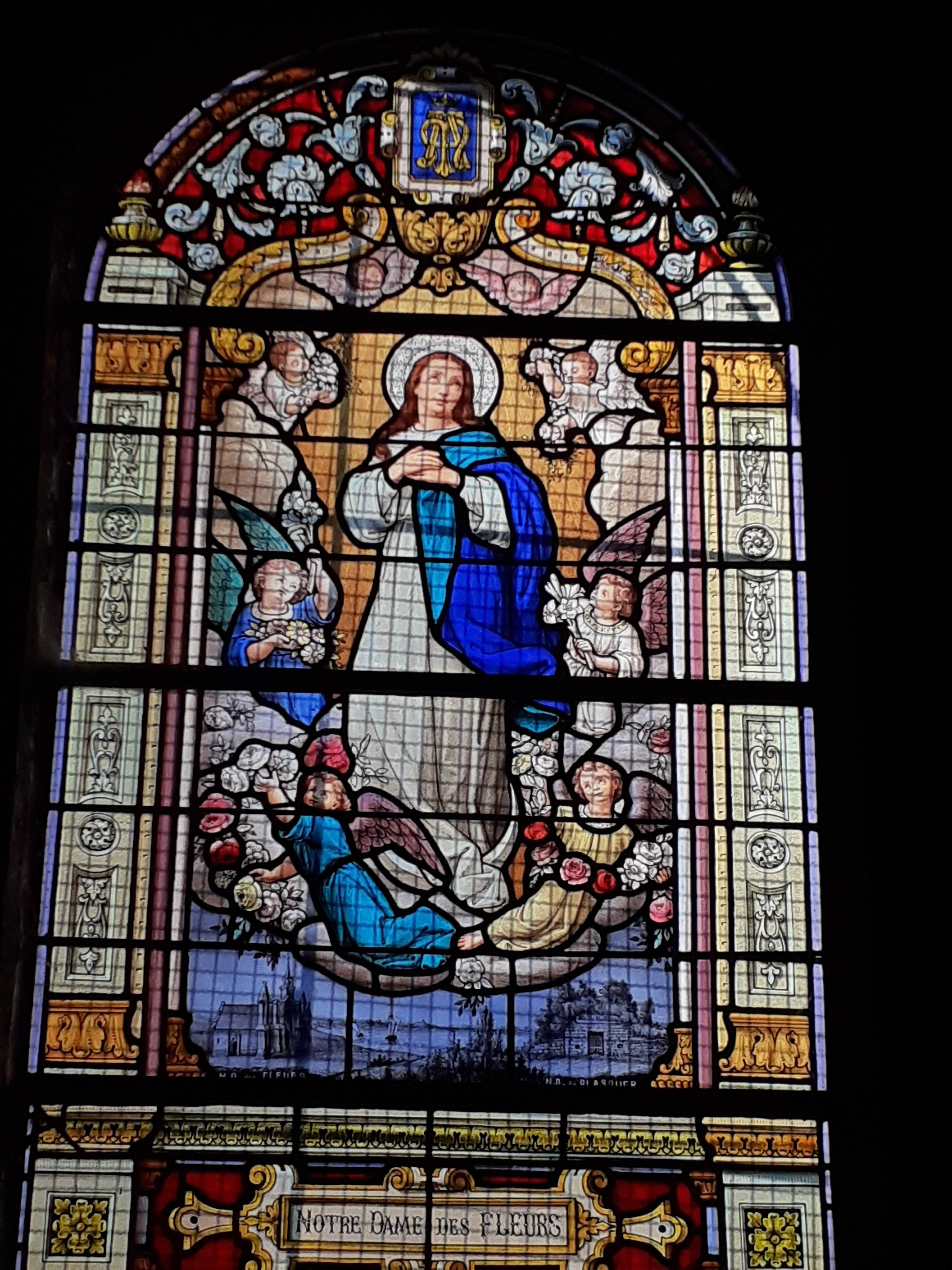 Petite église avec de beaux vitraux.