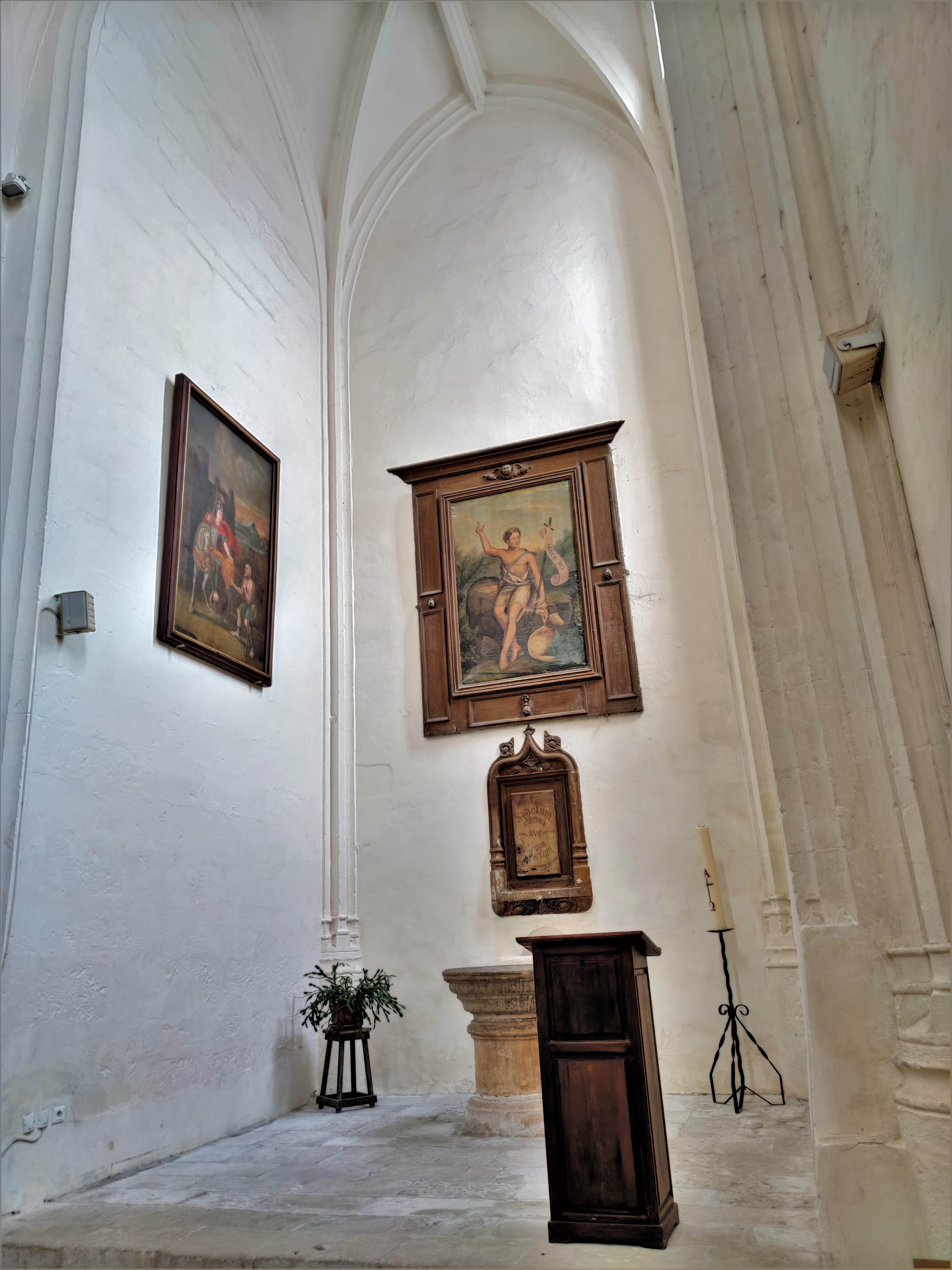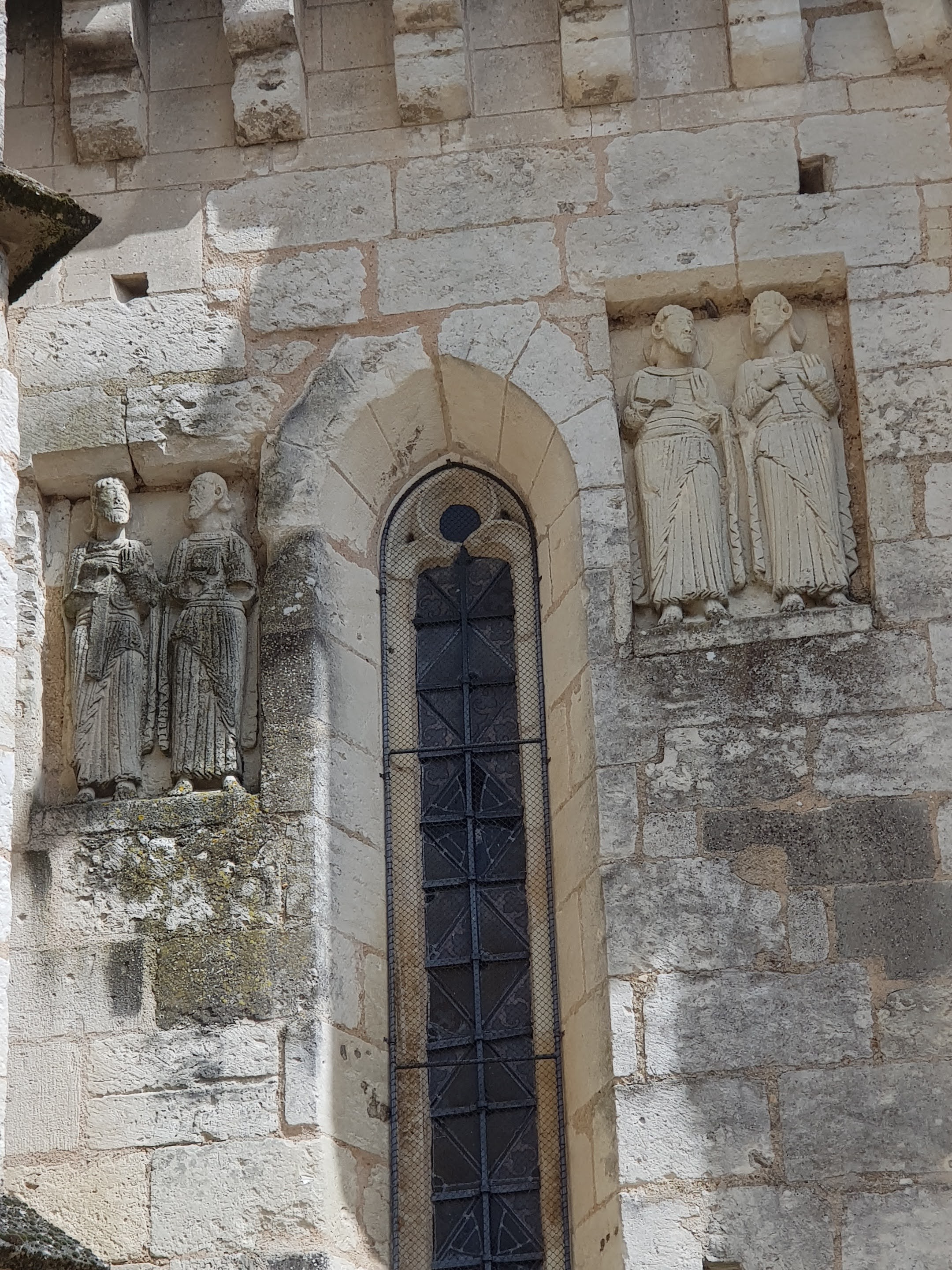 L'église était fermée quand je suis passé à Saint-Astier, ce qui interdit d'en dire beaucoup. Toutefois, les bas-reliefs des apôtres qu'on découvre au au-dessus de l'entrée secondaire sont très beaux.