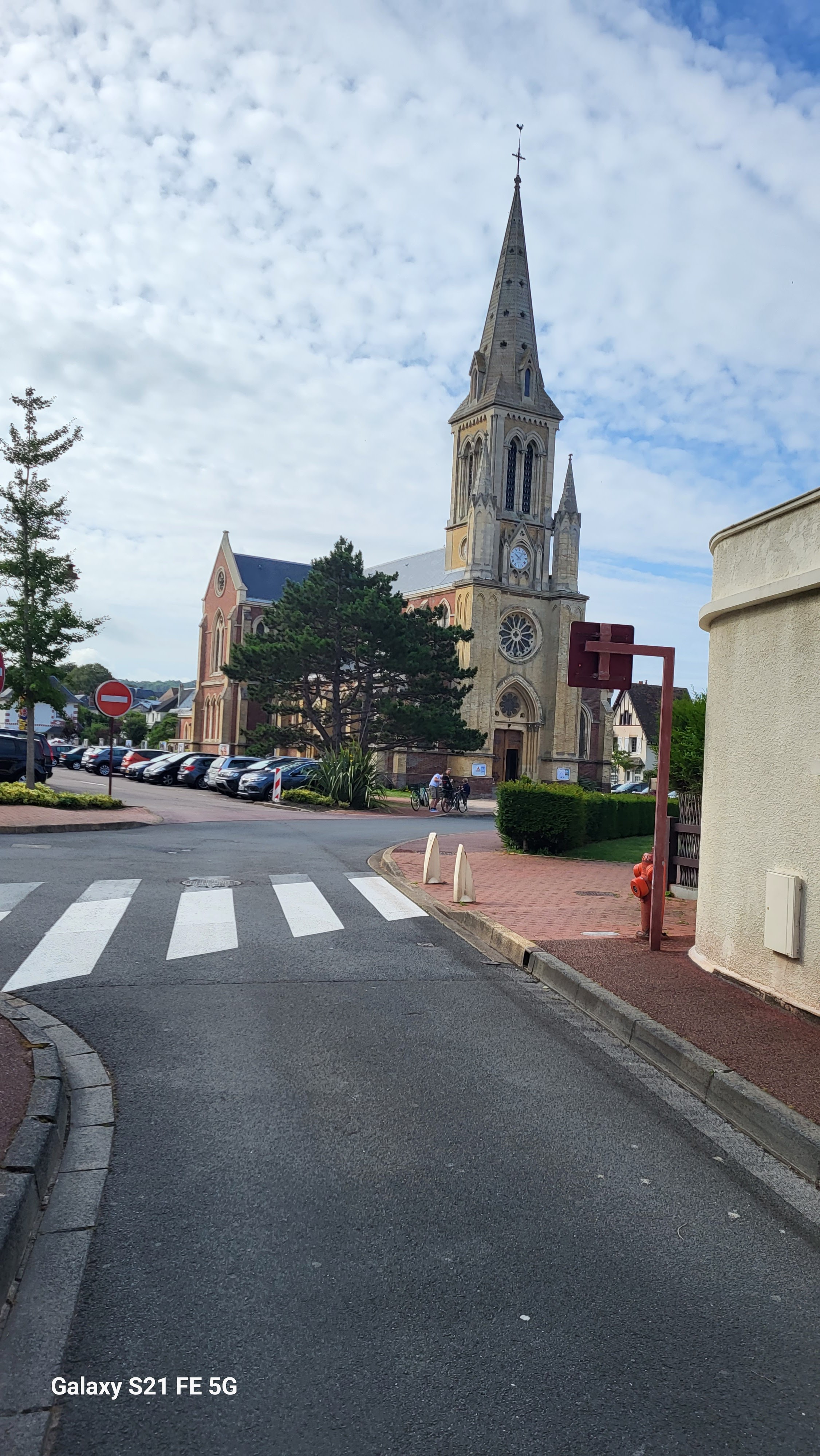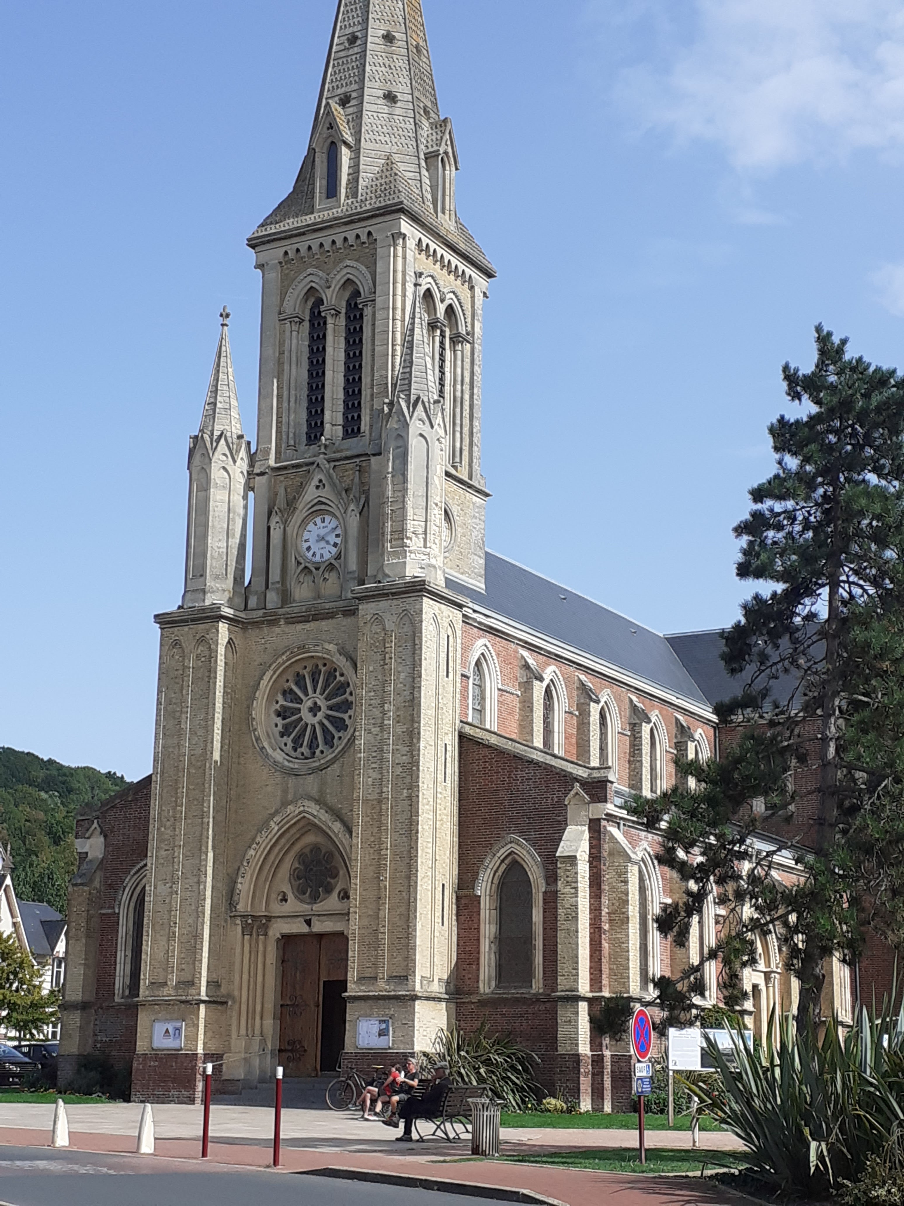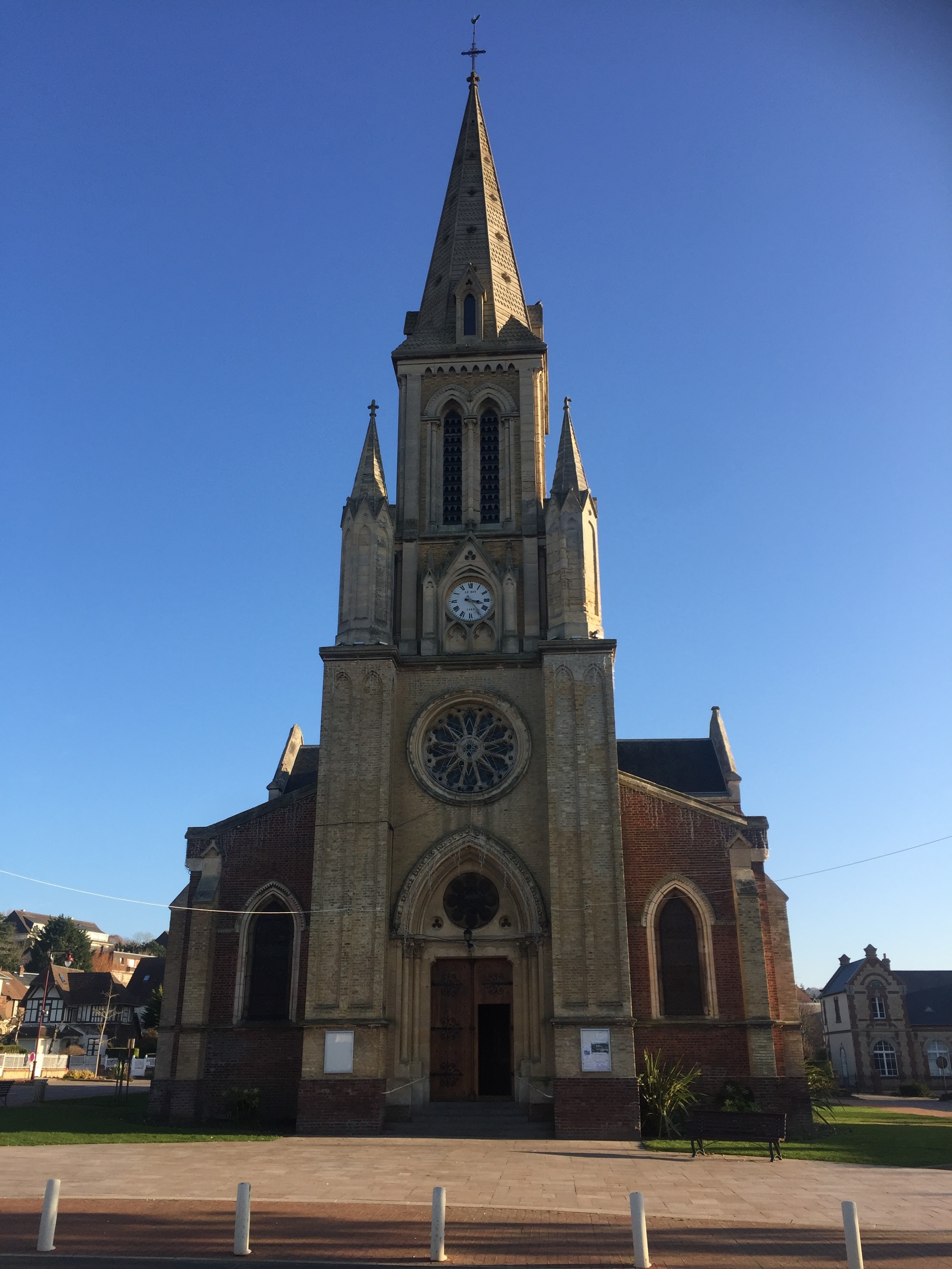 belle église, centre Houlgate, grand parking autour.