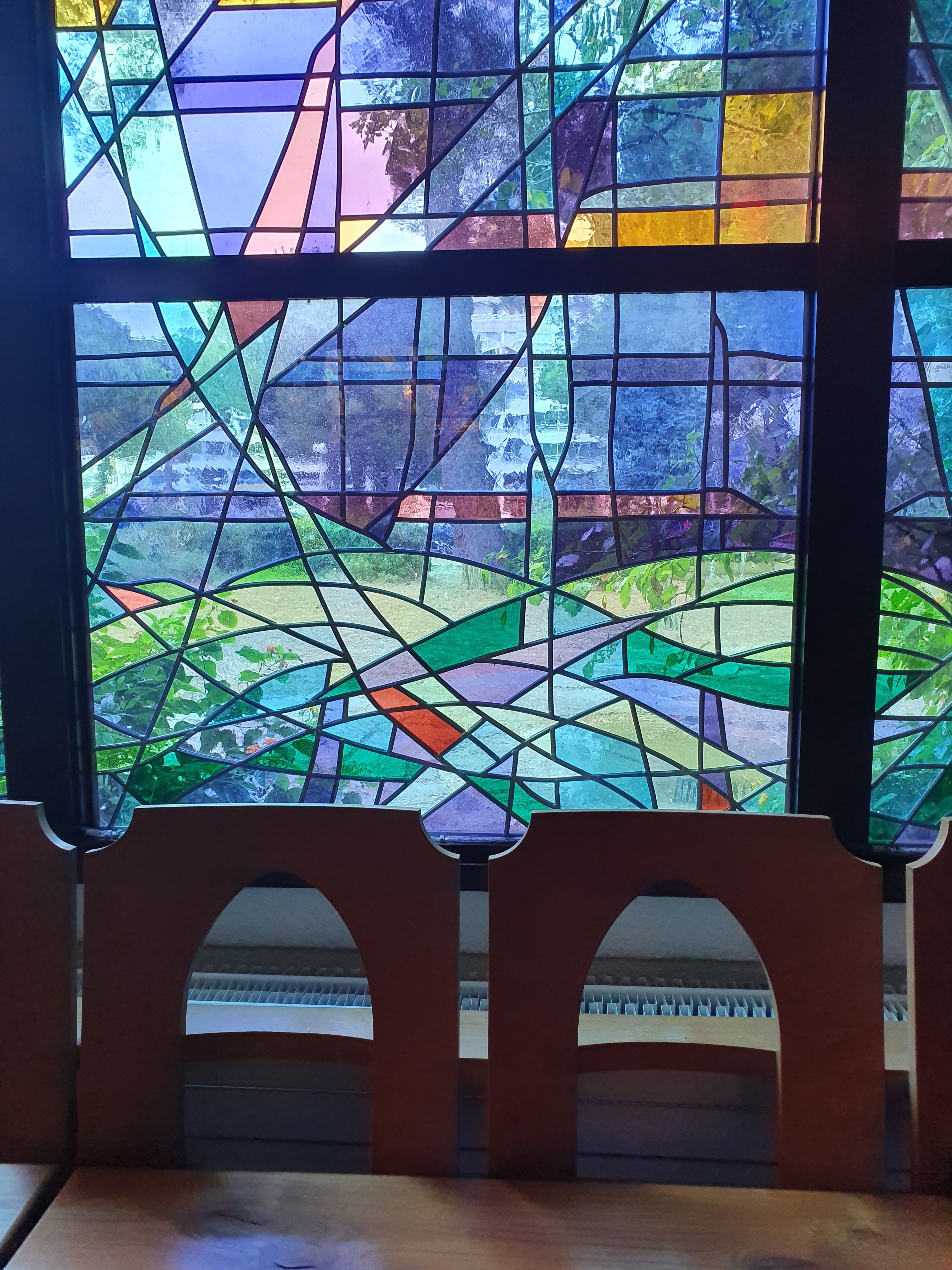 Belle réalisation dans l esprit de l architecture de cette ville, moderne, lumineuse, de beaux vitraux.