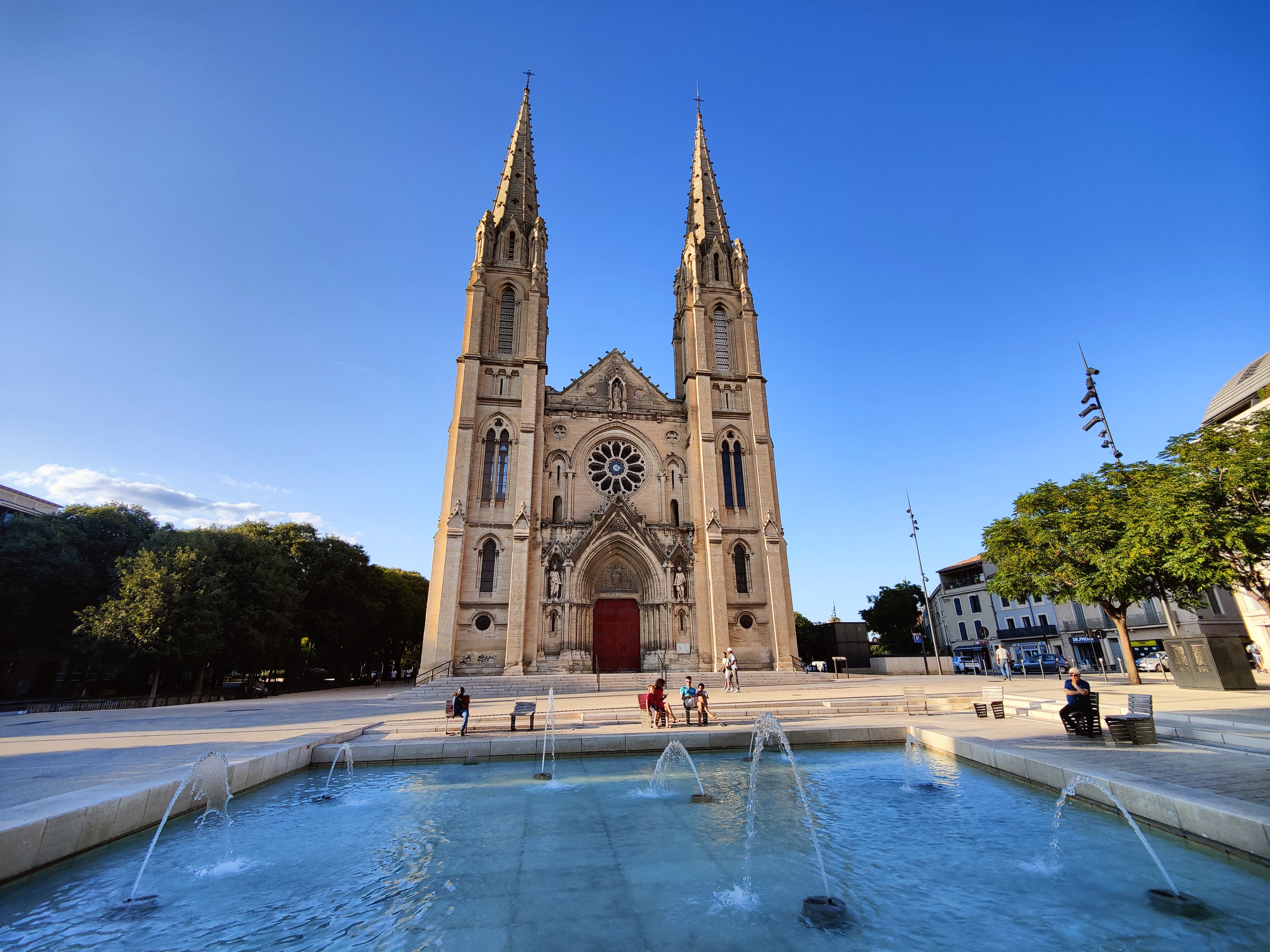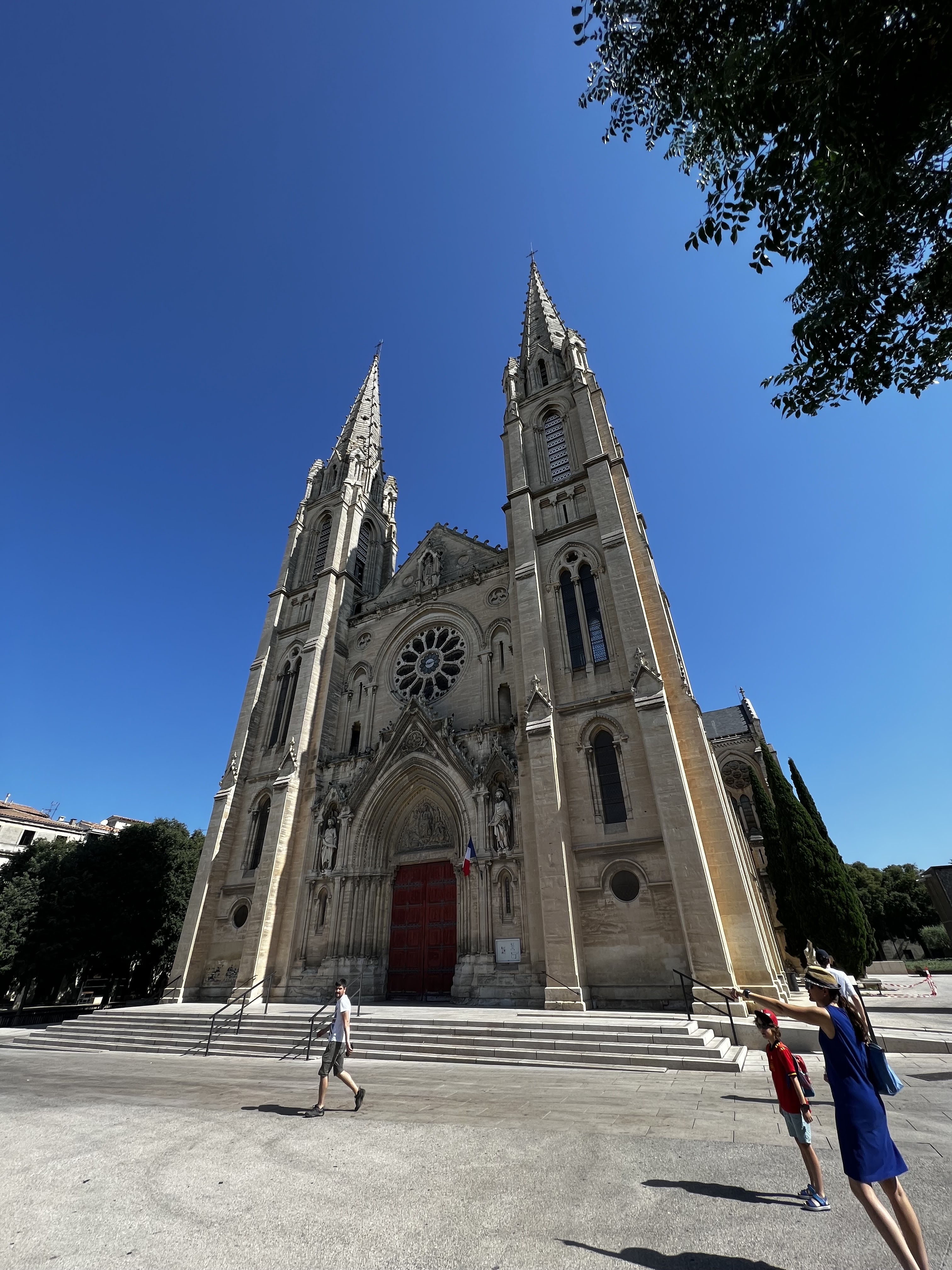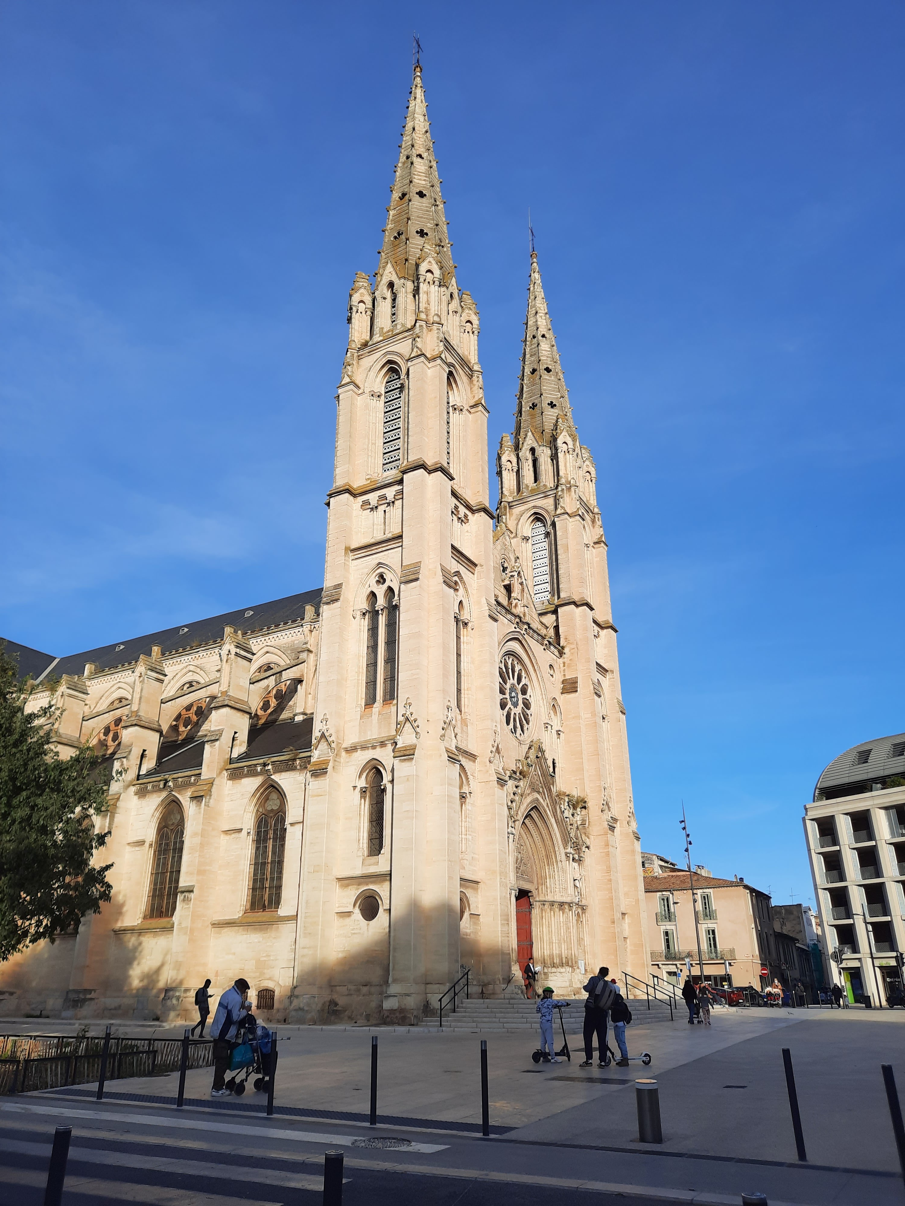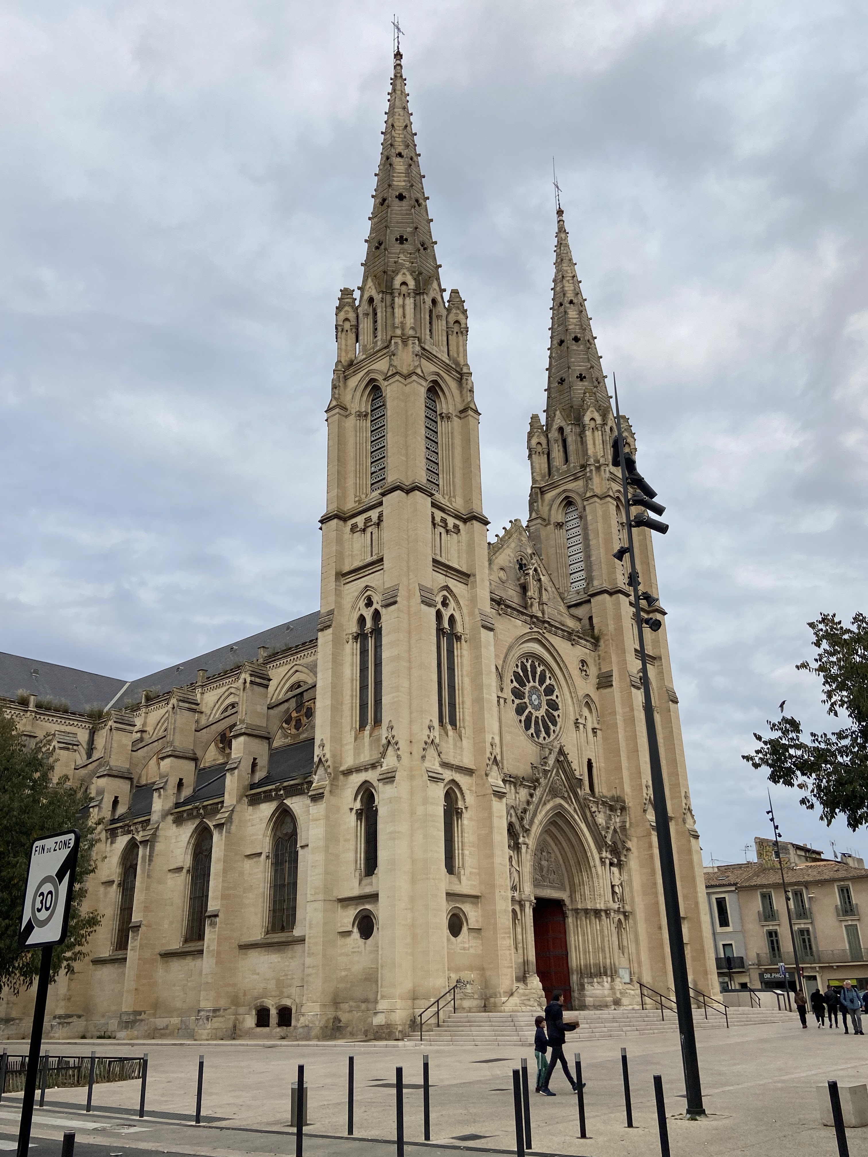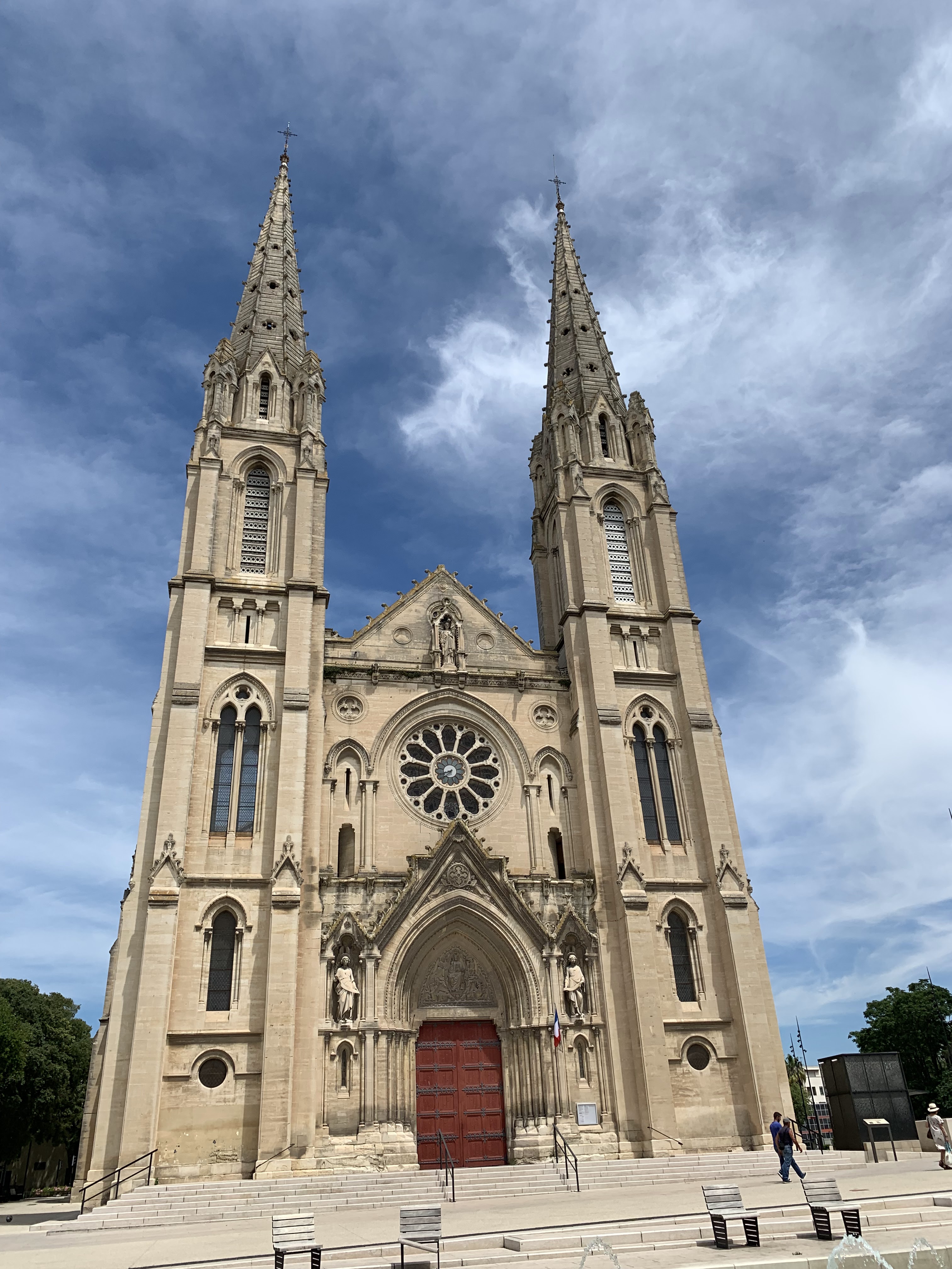 C'est une belle église de la fin du XIXème siècle, agréable à l'oeil avec ses deux grandes tours pointues et élancées, elles donnent un bel aspect et sont très photogéniques. Elle est très grande, c'est apparemment la plus grande église de la ville de Nîmes.