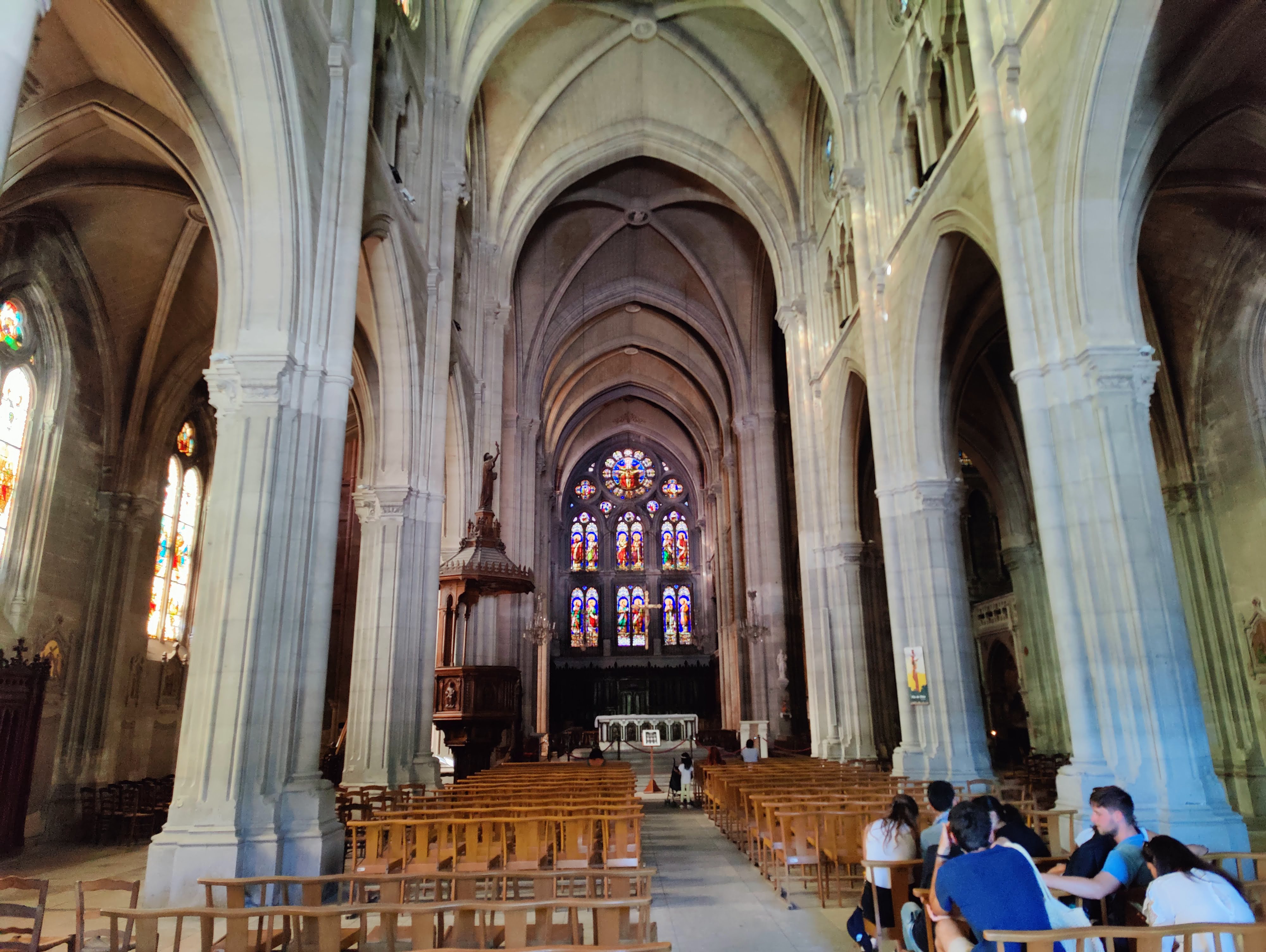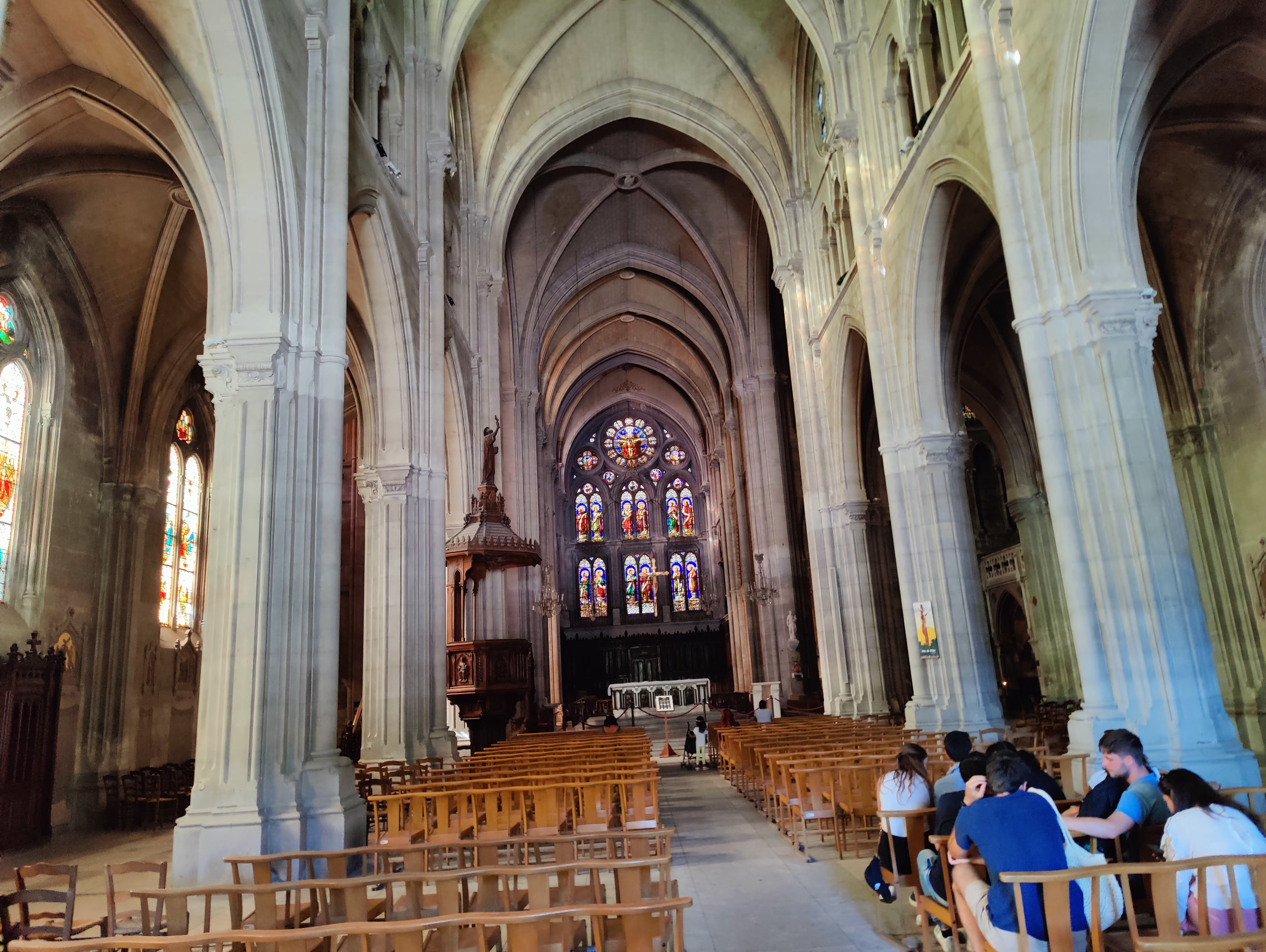 Site faisant partie du top10 àvoir sur Lyon. En plus situé près de la Porte d’Auguste : autre lieu à voir. L'édifice est de style néo-gothique. Elle possède notamment deux clochers en façade surmontés de hautes flèches qui atteignent 70 mètres. À l'intérieur, la hauteur sous voûtes est de 20 mètres. En forme de croix latine, d'une longueur totale de 65 mètres pour 30 mètres de largeur au niveau du transept, c'est la plus grande église de Nîmes avec une capacité d'accueil de 3 000 personnes. Elle est d'ailleurs souvent confondue avec la cathédrale. ⛪️