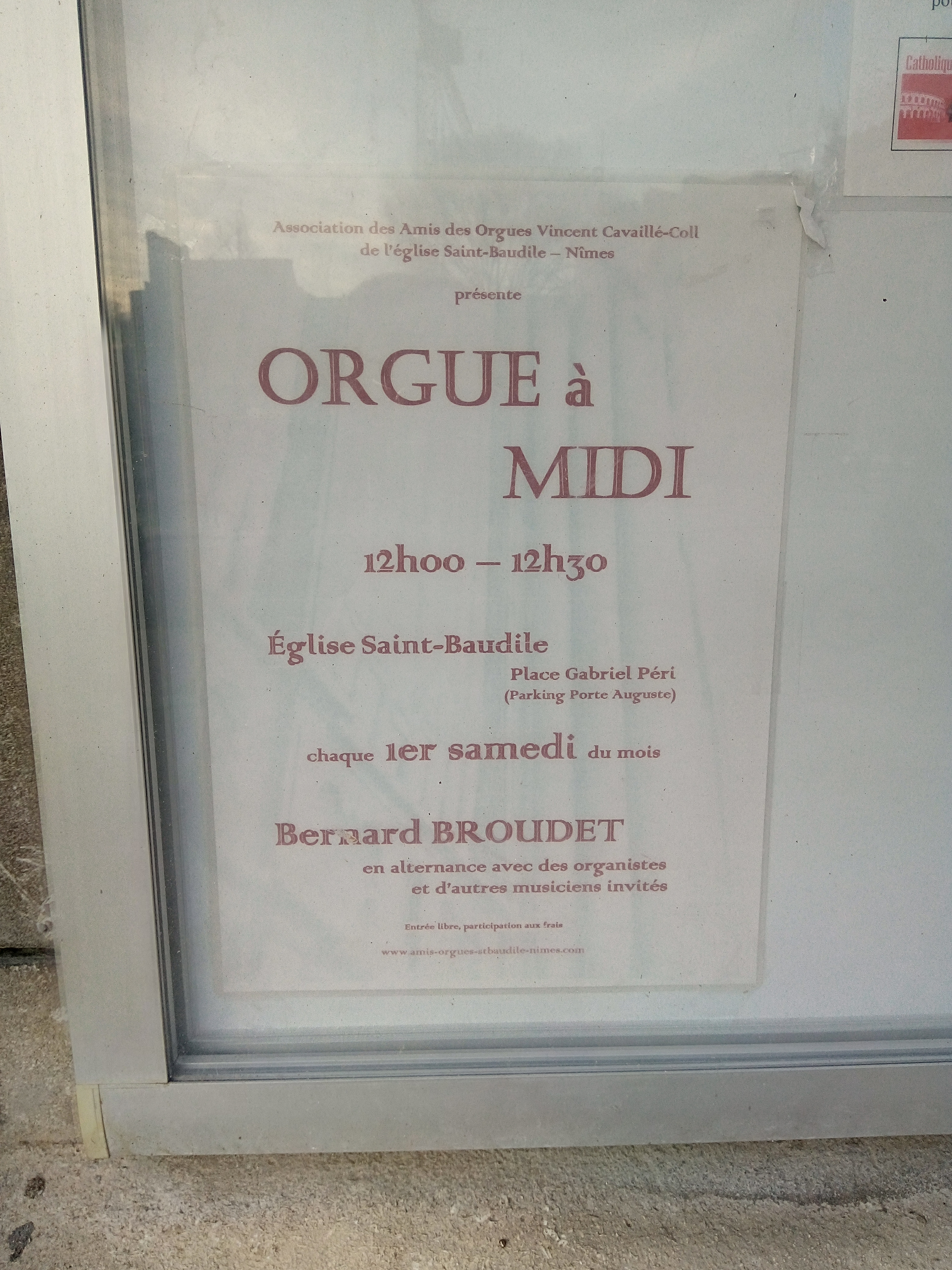 L'église Saint-Baudile est un fabuleux lieu de culte situé en centre ville de Nîmes dans un quartier très passant (Université, bars, agence immobilière, supermarché, librairie biblique et classique etc.....). L'église de situe à côté d'un site archéologique (Porte d'Auguste). Le parvis de l'église Saint-Baudile a été formidablement bien restauré avec avec une superbe fontaine qui trône devant. Seul petit bémol à l'intérieur certains icônes religieux ne sont pas éclairés, on ne peut pas se recueillir devant . De plus, devant la statue de sainte Bernadette, les chaises ne sont pas disposées face à la statue pour le recueillement et un seul point de vente à l'entrée de l'église pour l'achat des cierges. Un petit plus, l'église propose une opération orgue à midi le samedi entre 12 heures et 12 heures 30 ...une messe musicale mise en place par l'association des amis des orgues Vincent Cavaillé-Coll de l'église Saint-Baudile. L'entrée est libre et participation libre au bon vouloir de chacun. L'église se situe place Gabriel Péri. Possibilité de se garer dans les rues parallèles ou au parking Porte Auguste.