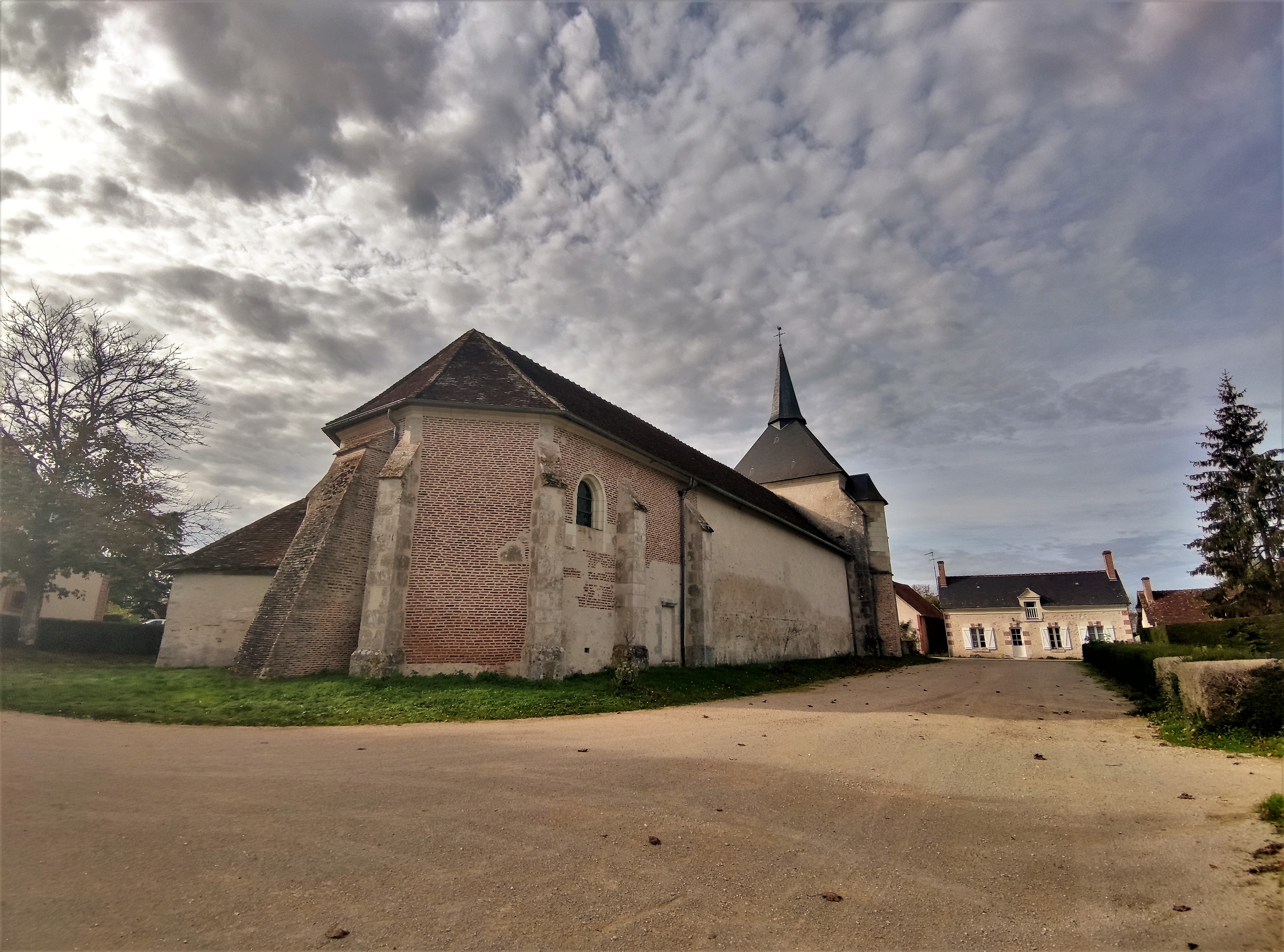 Église protégée depuis 1938 par les Monuments Historiques, elle protège quelques objets classés. Je me faisais une joie de la visiter, elle était fermée lors de mon passage et aucune indication sur les possibilités de visite. La mairie était également fermée (ouverte 8 h par semaine). Petite église de village construite au 12ème (la nef) la partie Est date du 16ème, la maçonnerie est un agencement de pierres et de briques.