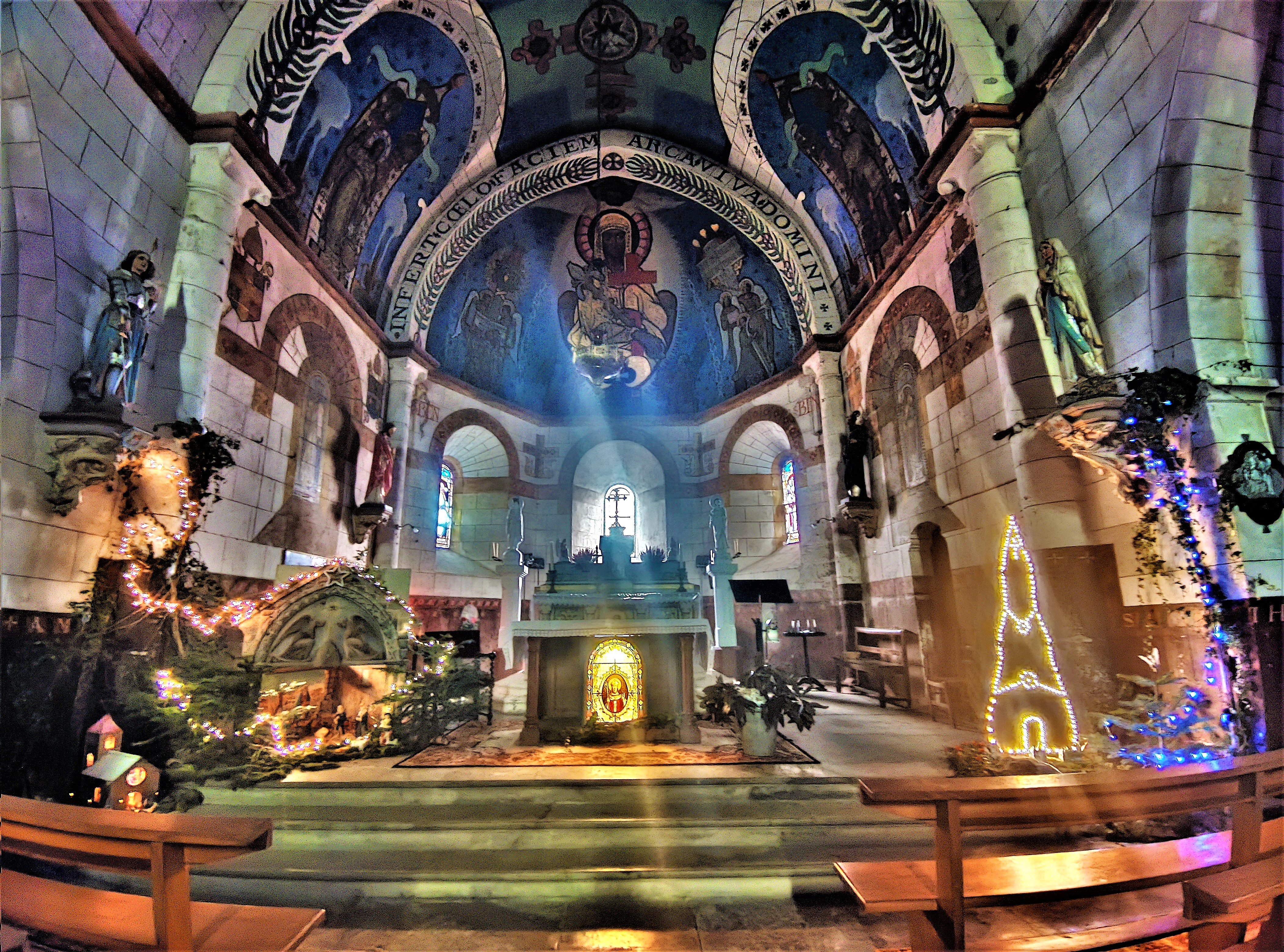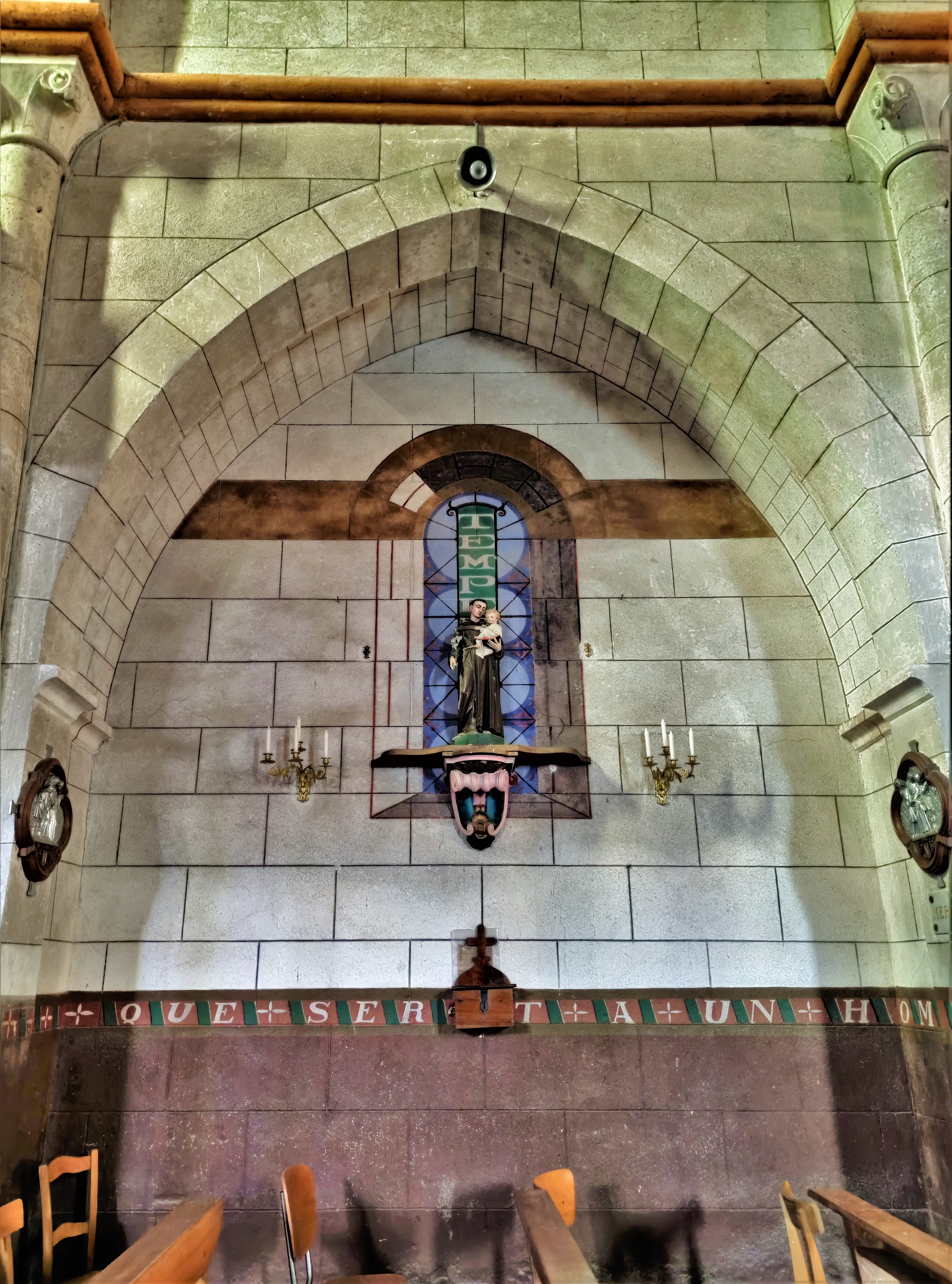 L'extérieur est simple et austère, l'intérieur chaleureux, architecture et décors apportent une énergie particulière. Ancienne prieurale, construite au 12ème siècle, elle sera restaurée aux 15ème, 16ème, 19ème et 20ème siècles, les caractéristiques romanes de l'église primitive ont été conservées. Placée sur un promontoire rocheux, elle domine la Vienne. De spectaculaires décors peints furent réalisés au 19ème siècle, renouant avec la tradition des églises romanes hautes en couleurs du début du millénaire (Voir l'abbaye de Saint Savin et ses décors du 11ème siècle). L'extérieur est simple et austère, l'intérieur chaleureux, l’architecture et les décors apportent une énergie particulière, c'est une église ouverte et accueillante. A priori ouverte tous les jours, en cas de fermeture, il faut s'adresser à la mairie.