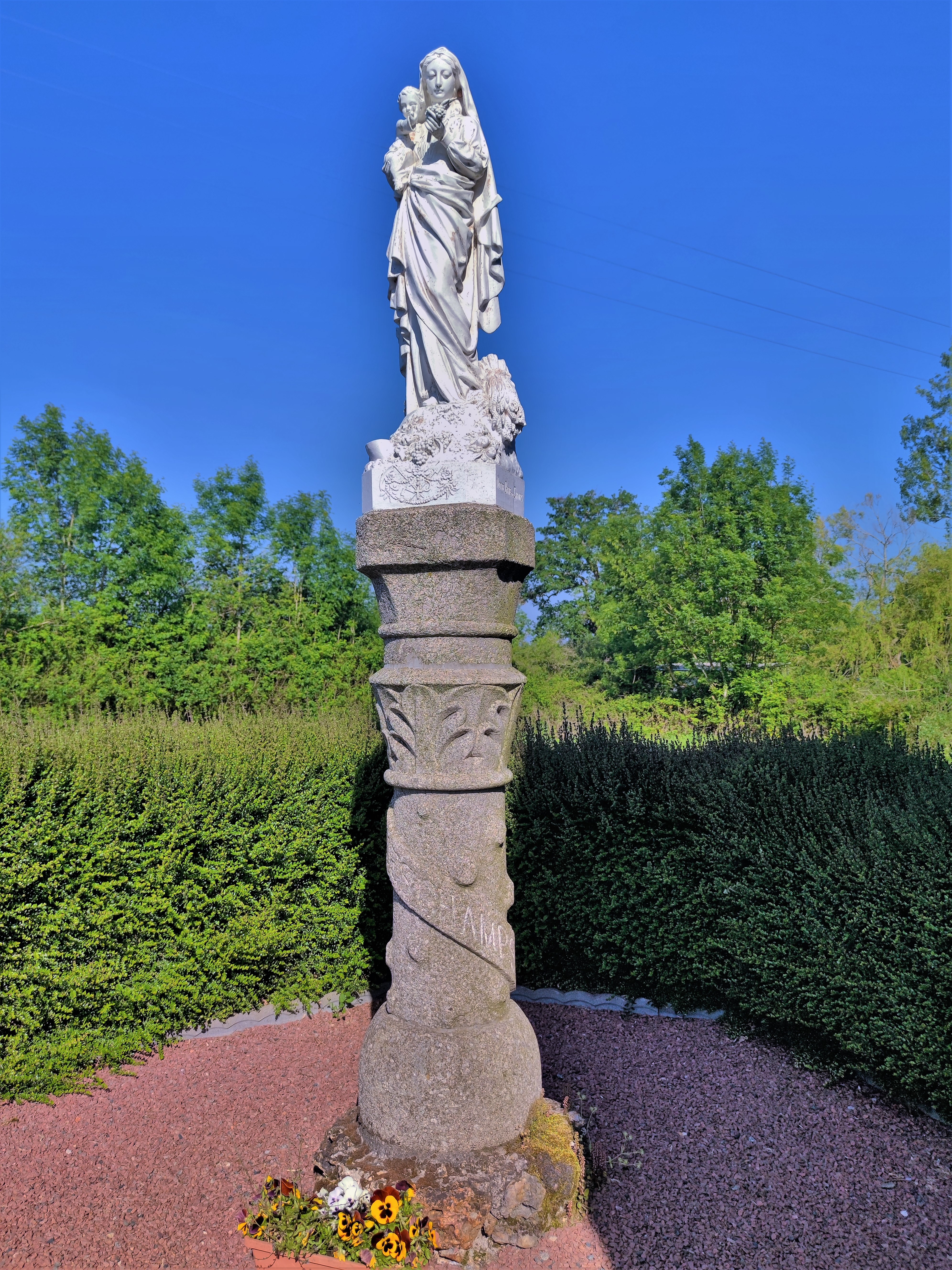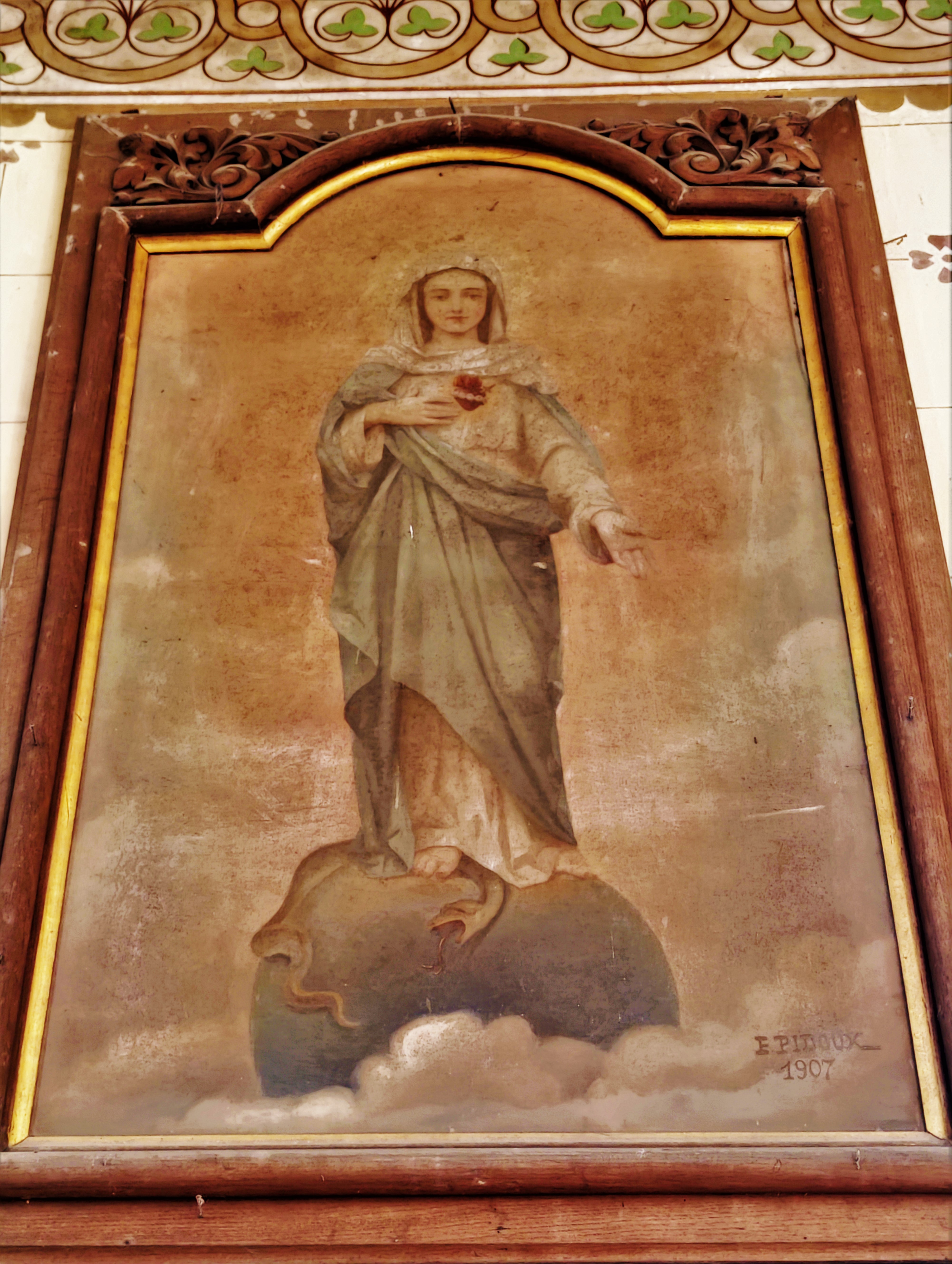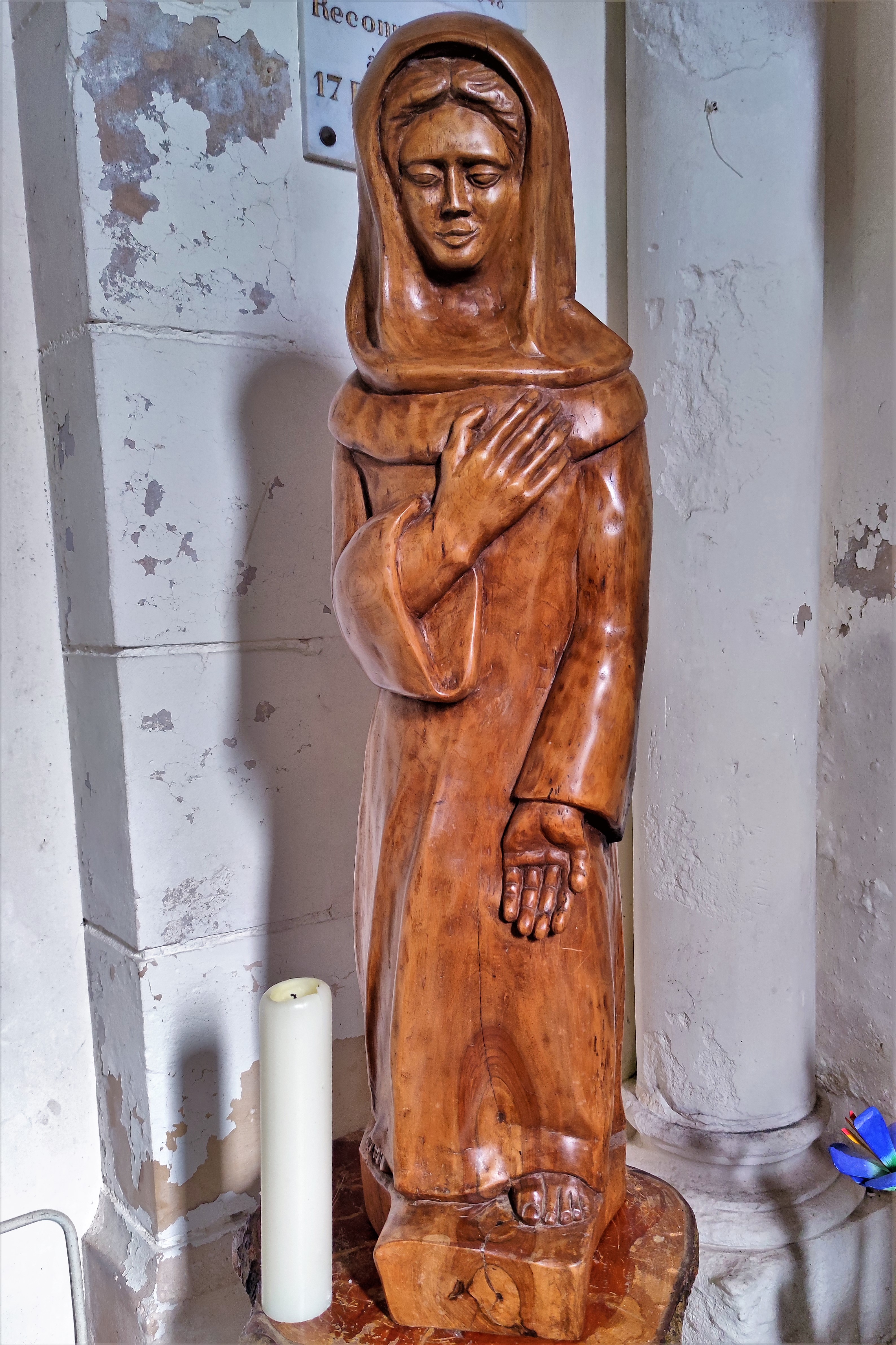 Ordinairement fermée, j'ai profité de l'intervention technique d'un employé municipal. Elle remplaça, fin 19ème, l'église romane de la commune La Boissière, lorsque le hameau Lageon, qui s'était beaucoup développé, devint chef-lieu de commune et que cette dernière changea de nom. L'ancienne église romane Saint-Benoît de la Boissière est aujourd'hui privée et utilisée comme bâtiment agricole. Inscrite par les Monuments Historiques depuis 2001, elle bénéficiera peut-être d'une mise en valeur. L'église Saint-Benoît de Lageon, joliment installée sur un petit espace arboré, est un bel exemple d'église rurale, une Sainte-Vierge-des-Champs trône à gauche du portail. La nef à 5 travées et arc doubleaux prolonge la travée sous clocher. Des arcatures entourent les baies en plein cintre et leurs vitraux non historiés. La travée du chœur est un peu plus étroite, l'abside est hémisphérique. Cette église, voûtée en berceau, simple et bien tenue, est accueillante, voire chaleureuse. Les vitraux historiés du sanctuaire, des peintures, de nombreuses statues de diverses époques agrémentent la visite. Voilà un endroit calme, idéal pour s'isoler, se détendre et méditer.