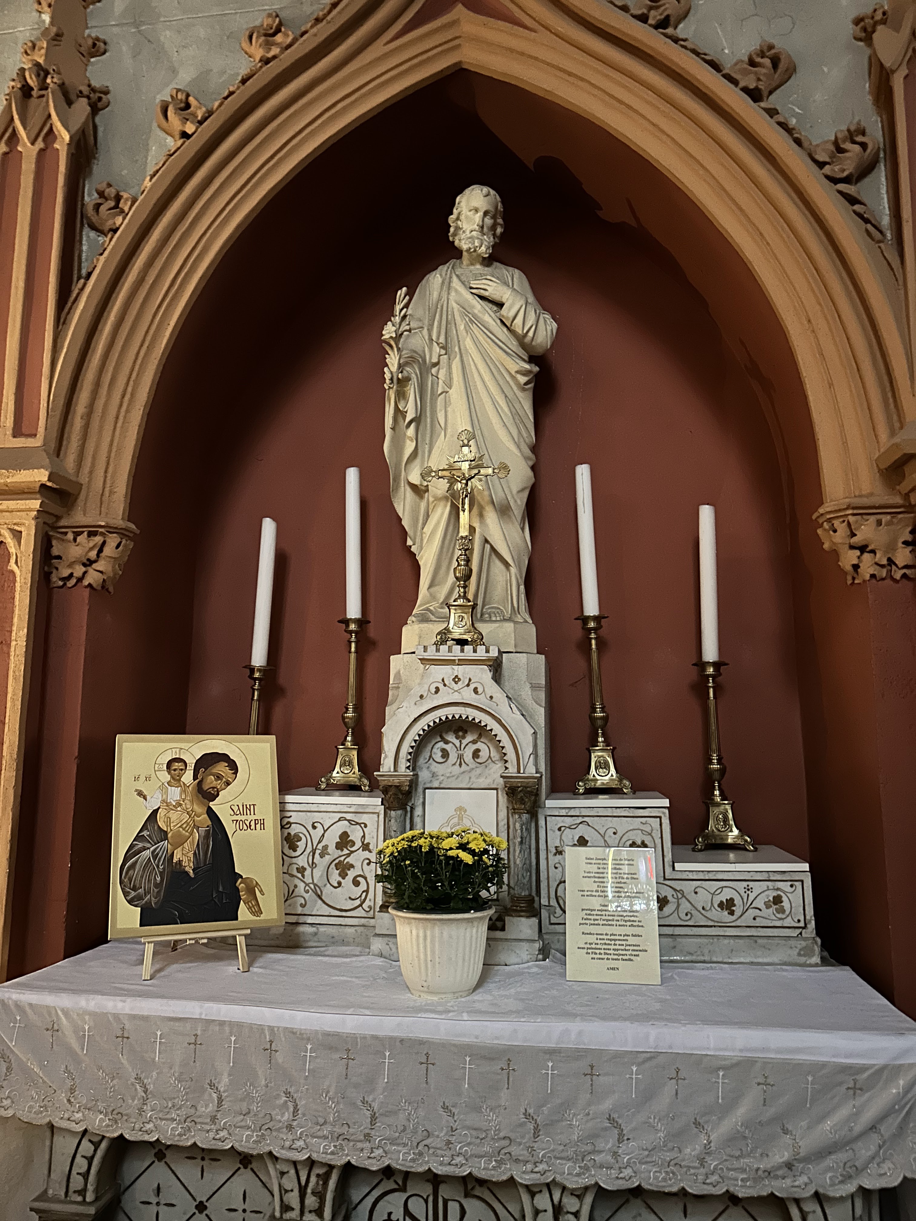 Nous avons vraiment apprécié notre visite à l’église Saint-Blaise et Saint-Martin. Il s’agit d’une église paroissiale plus petite que la plus grande cathédrale que nous voyons. Nous avons eu la chance de venir entre les services un dimanche et avons trouvé l'église toujours ouverte mais sans service. A l'intérieur se trouve un coffre contenant les ossements du Benneureux Jean-Joseph Lataste, dominicain né à Cadillac en 1832. Béatifié par feu notre Pape Benoît XVI en 2013.