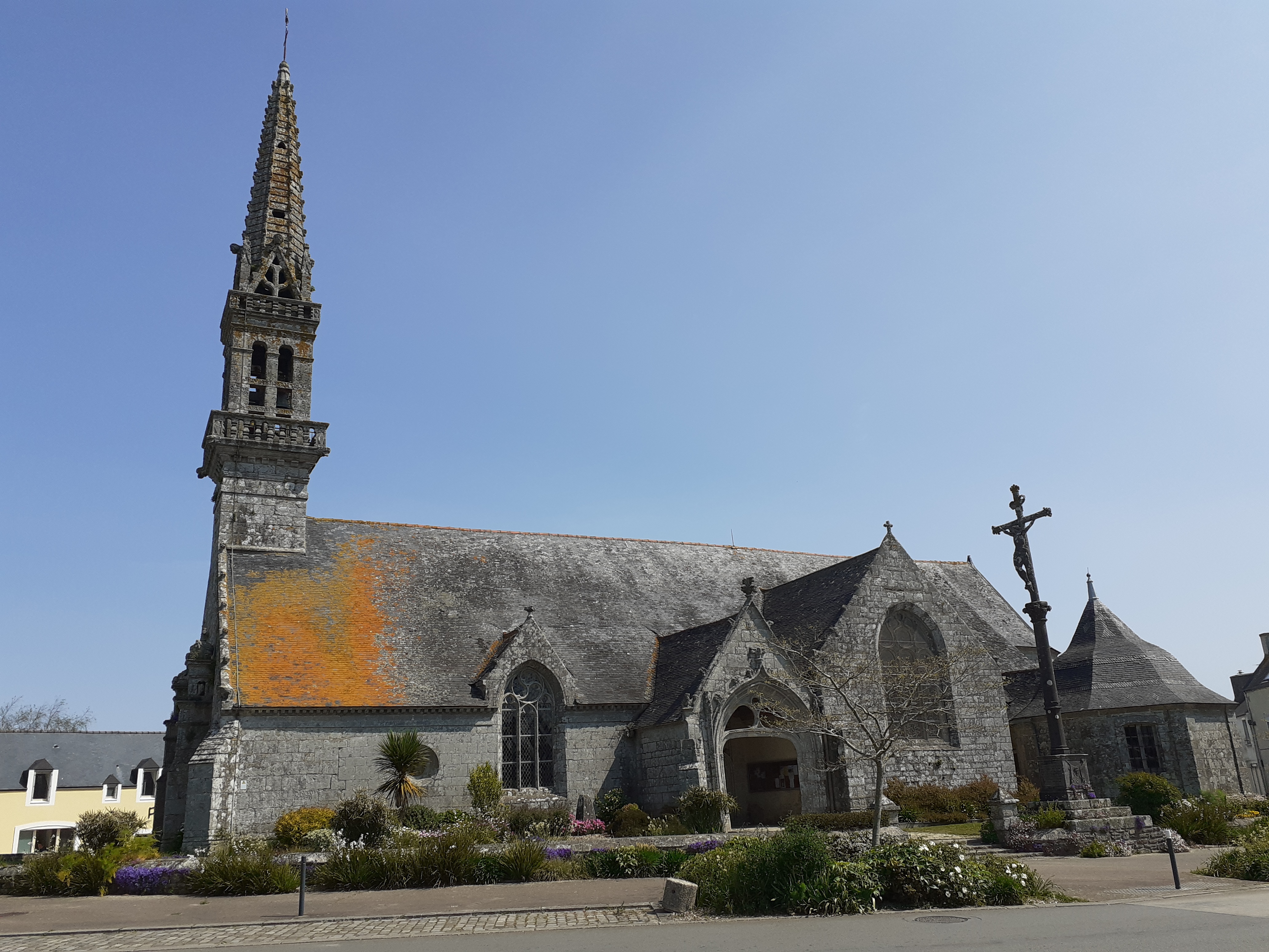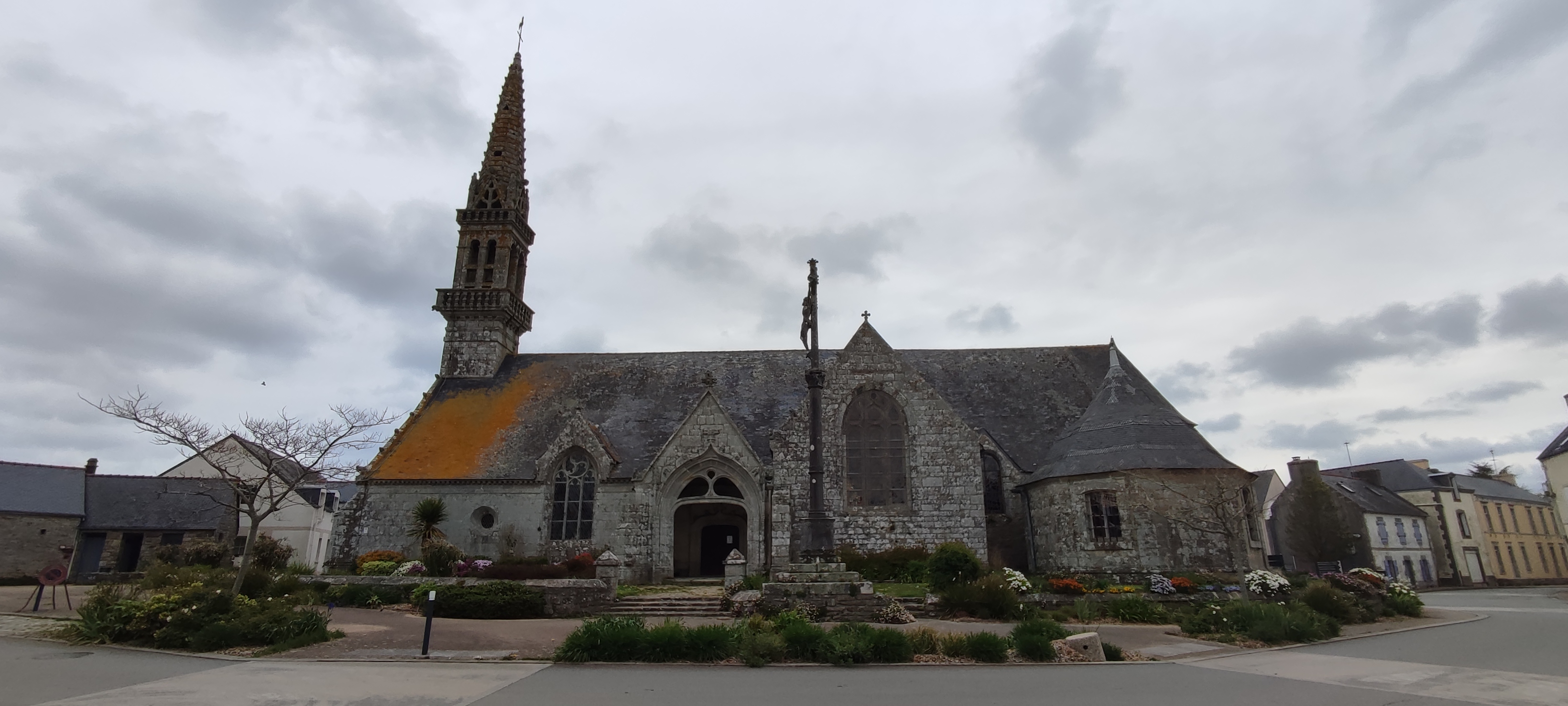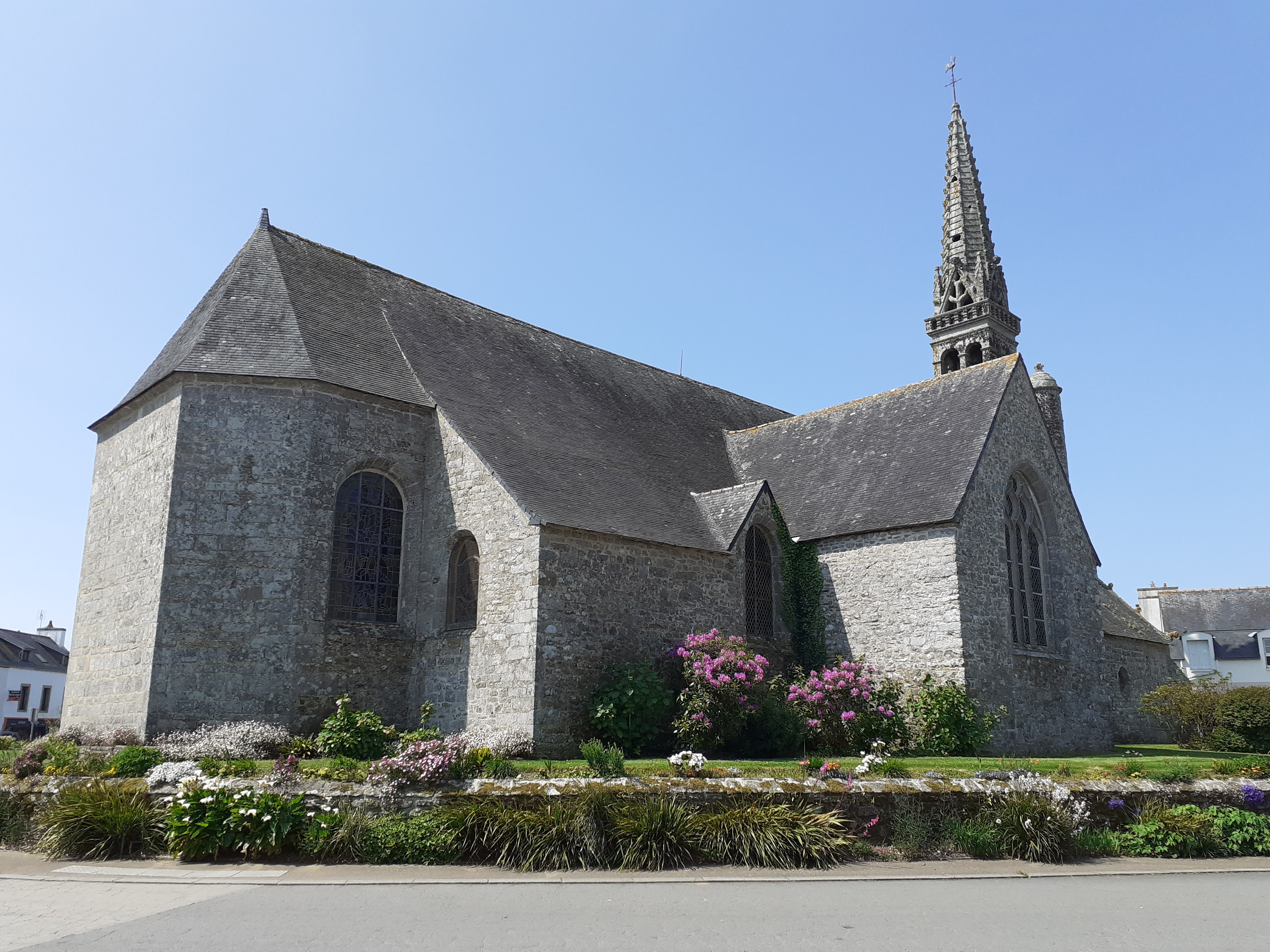 Jolie église entourée de beaux massifs de fleurs en plein centre du village,une petite halte sympa à faire sur la route de la pointe du RAZ....