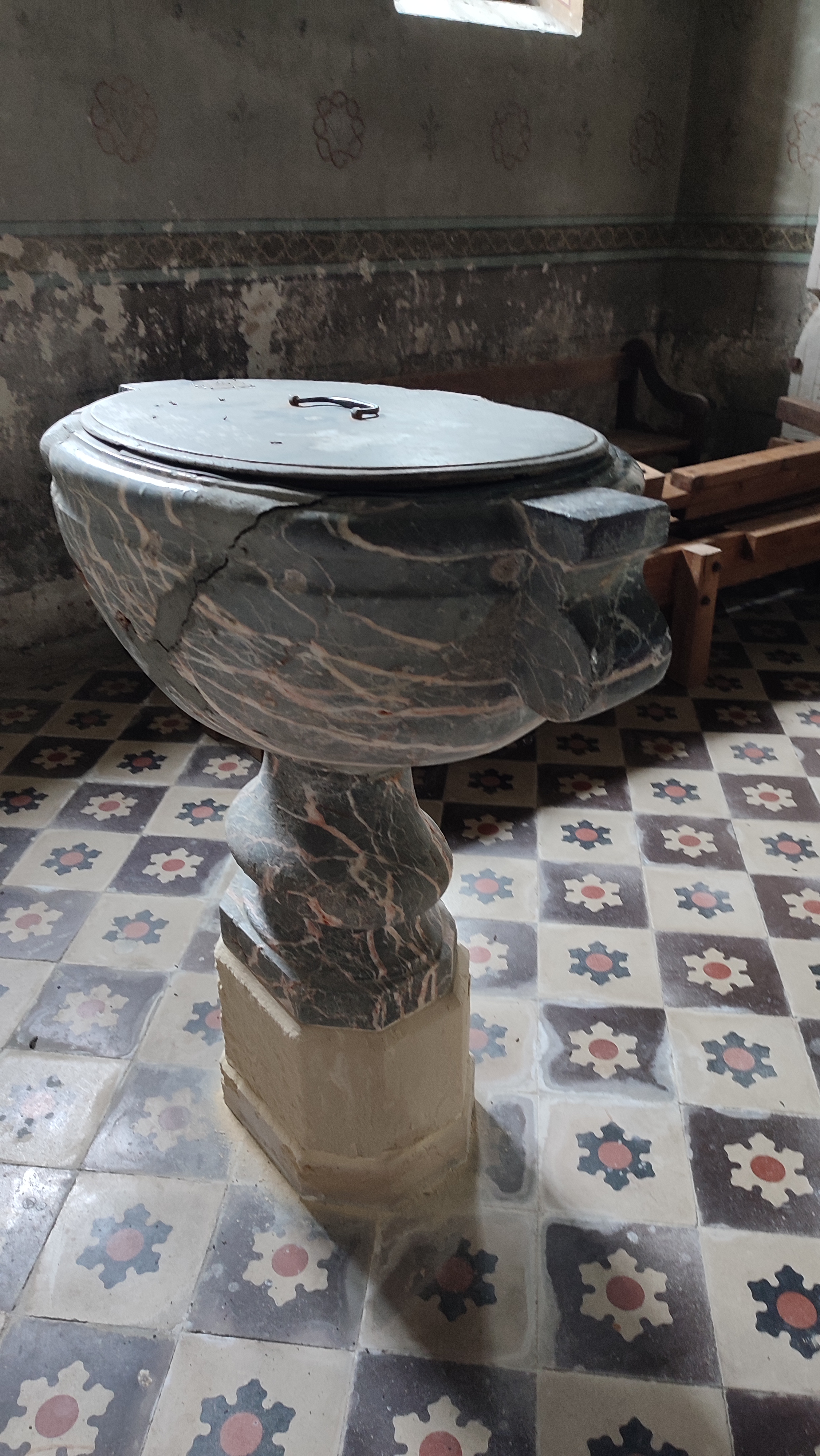 La restauration est magnifique, les couleurs sont éclatantes, l'église n'est pas grande mais il s'en impose une magnifique grandeur. De l'extérieur on ne s'attend pas à cette fraîcheur c'est superbe. Les fonds baptismaux est dans un marbre nervuré, magnifique. Elle jouxte le cimetière qui se trouve derrière. Et au contraire de beaucoup d'églises elle est accessible, quelq'un ouvre la porte en début de journée et la referme en fin.