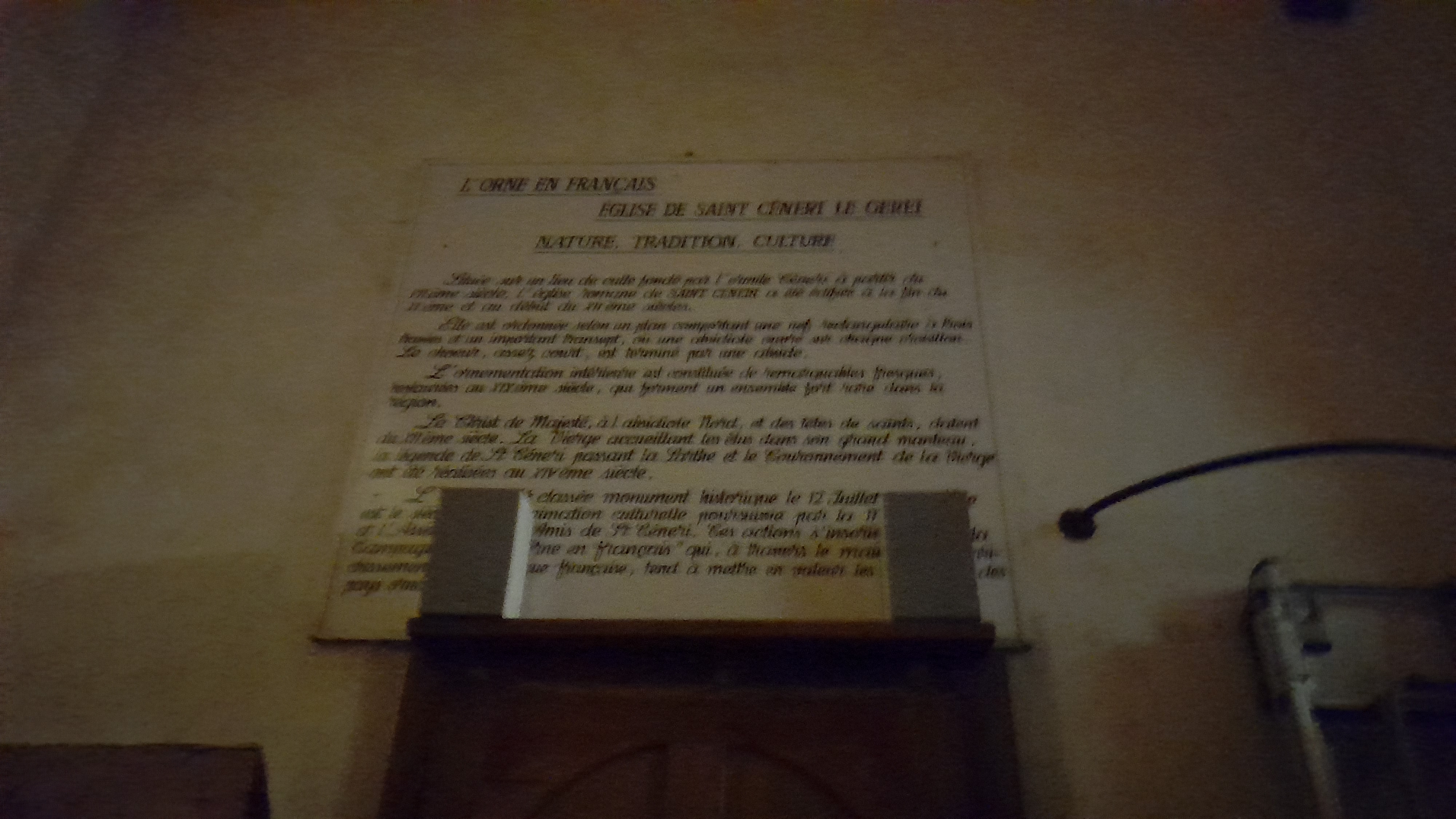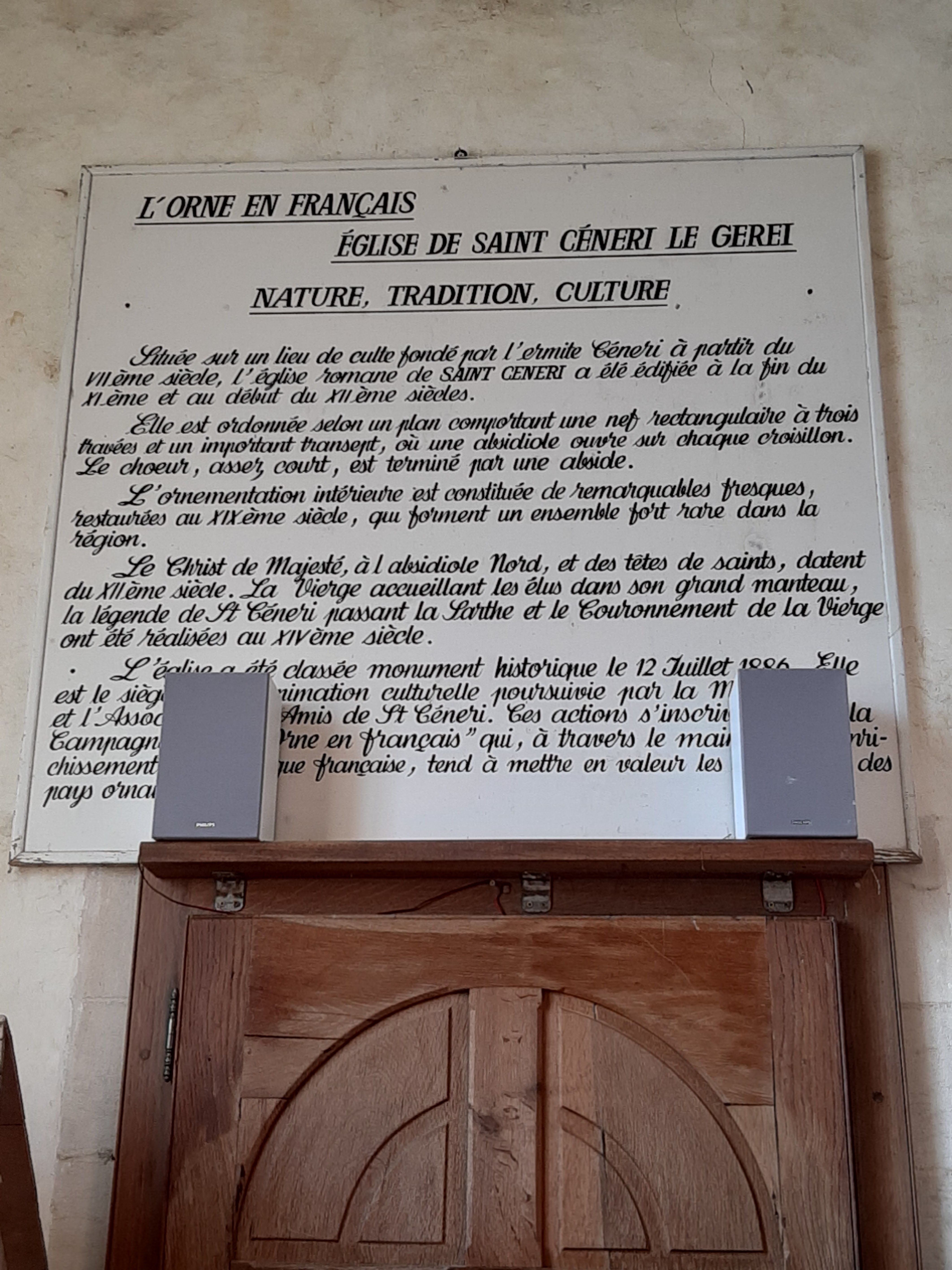Surtout ne pas manquer de visiter cette église , superbes Fresques et le chemin de croix magnifique fait par un artiste de St Céneri Christian Malzieux , petit village tout en fraicheur ou il fait bon s'arrêter ,