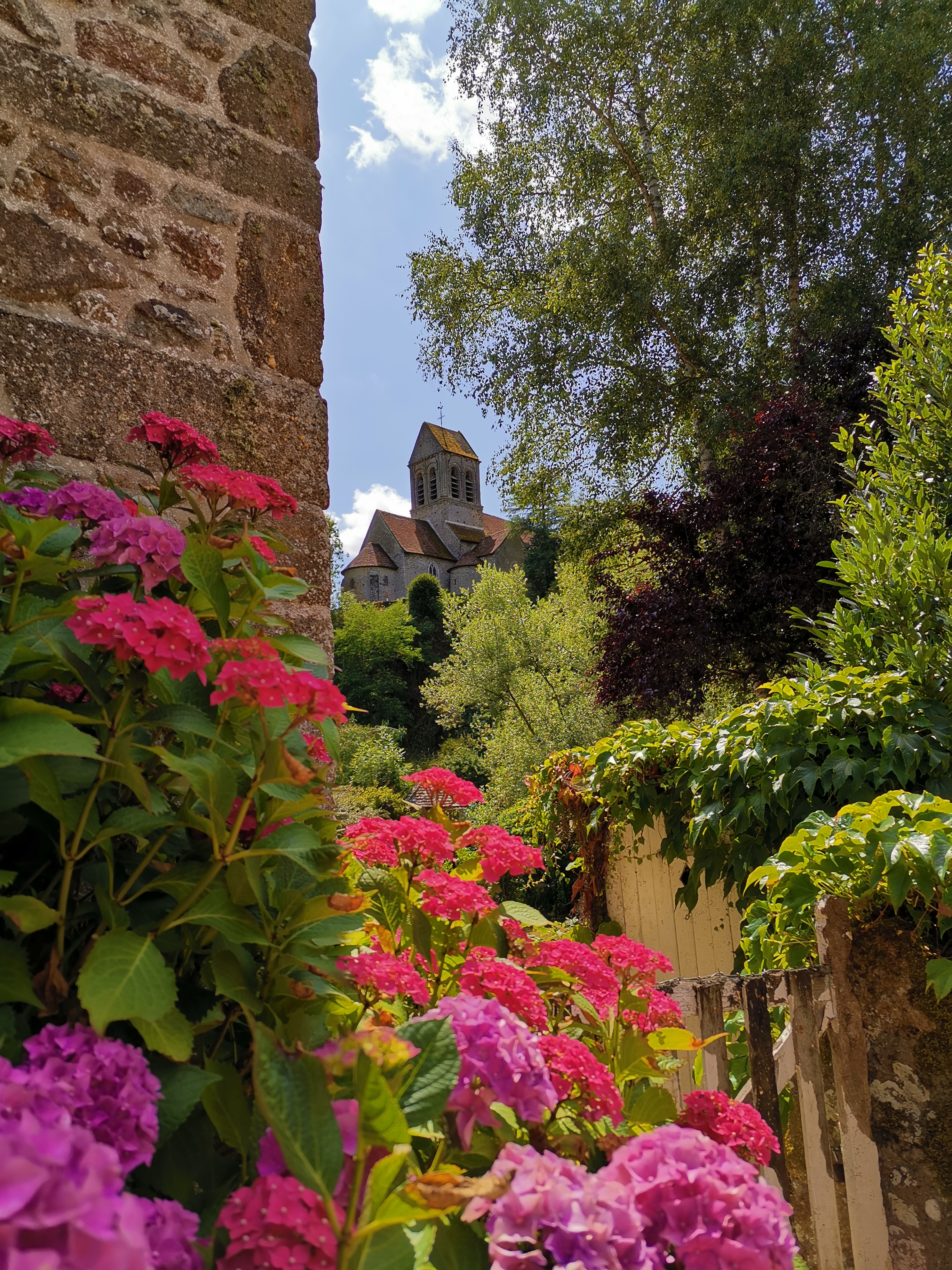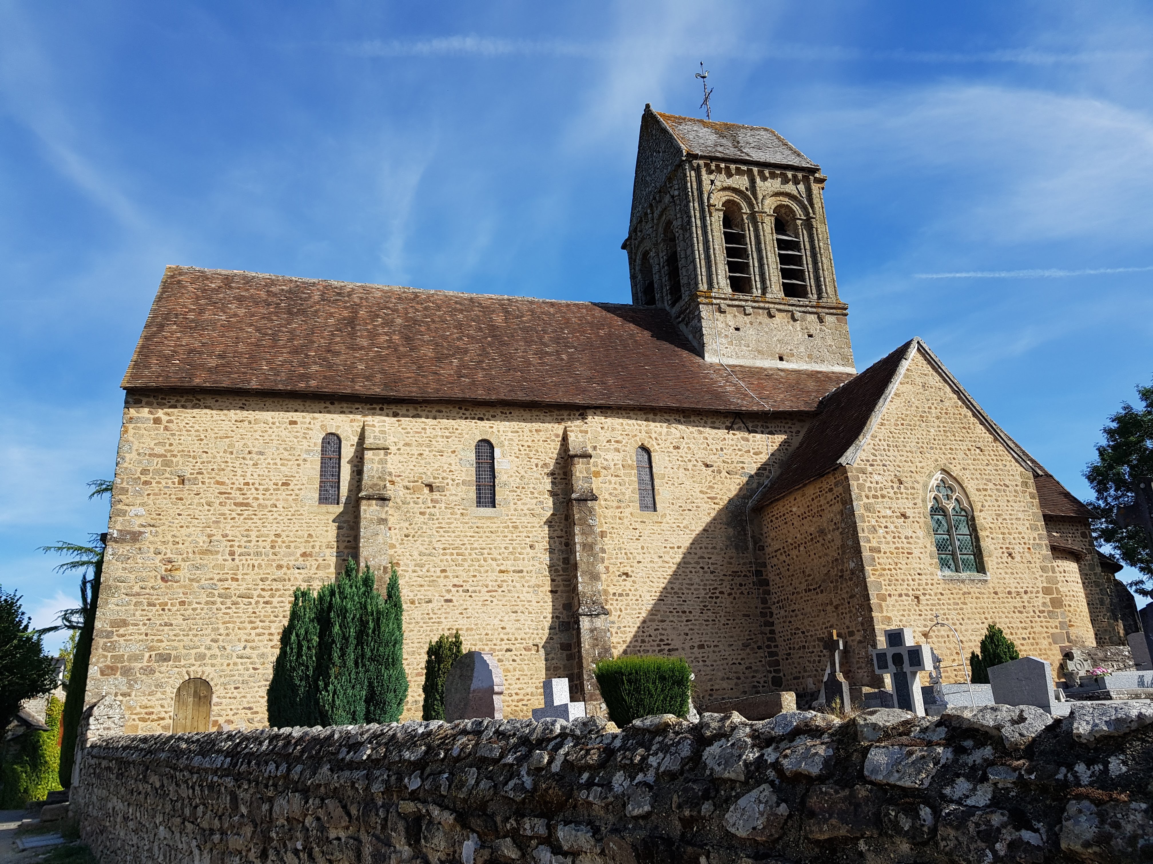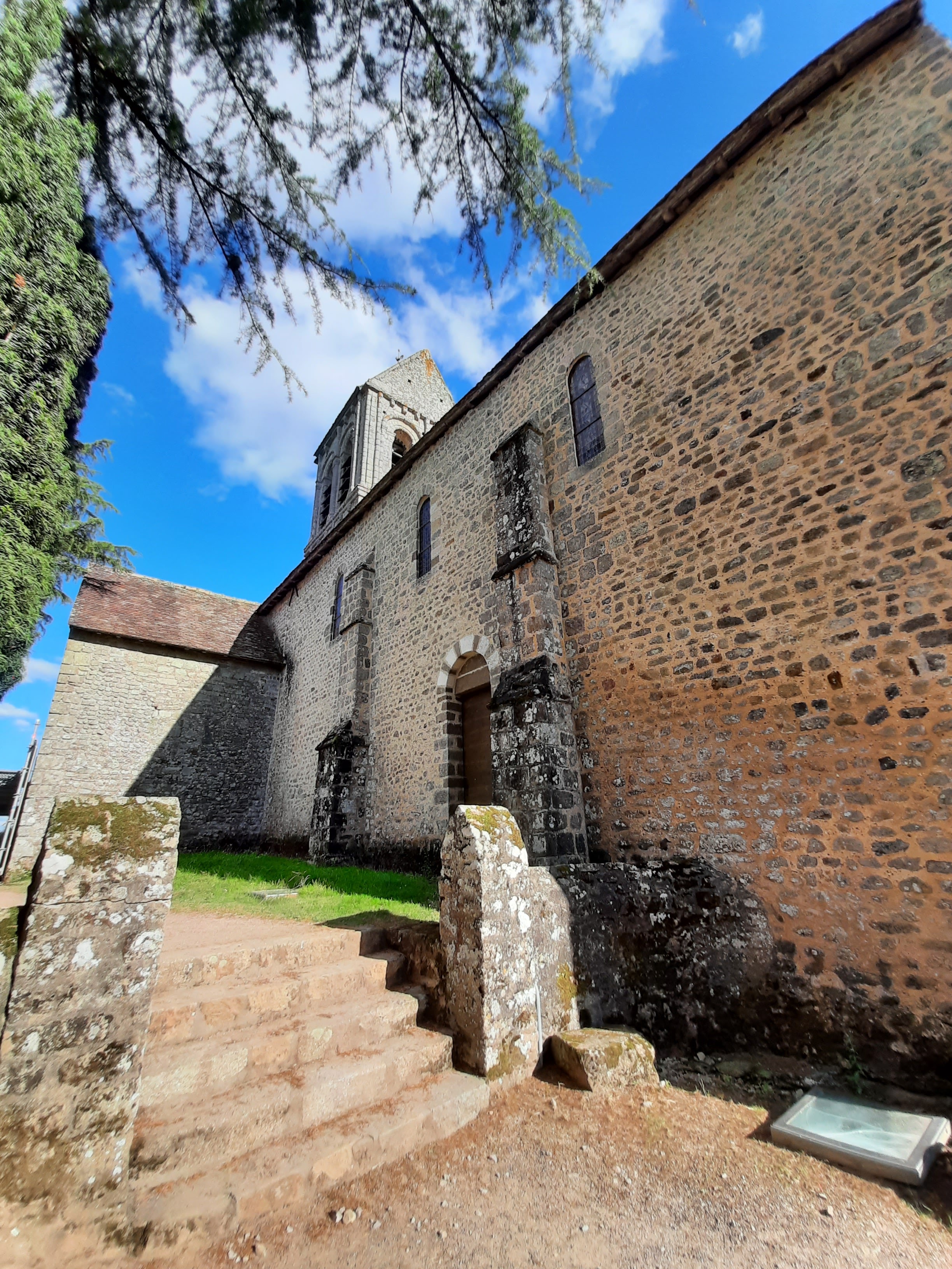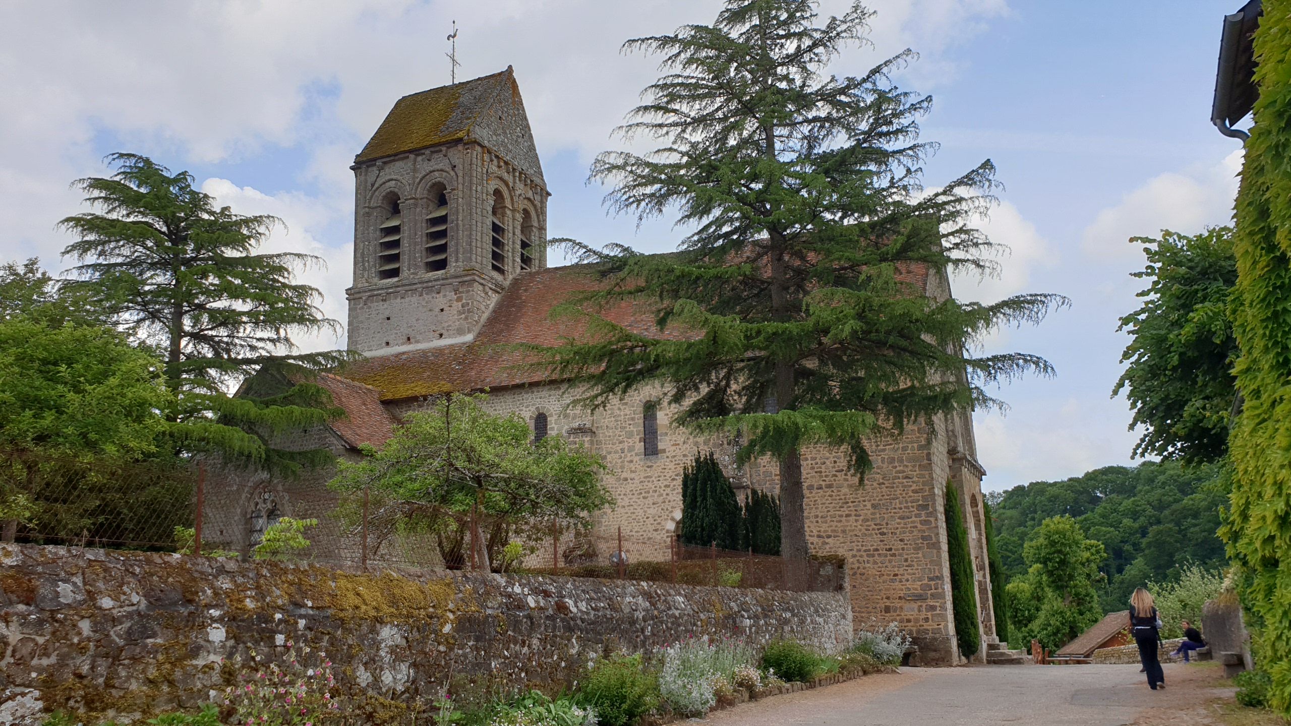 Charmante église Romane. Situation dans un beau village. Vue panoramique. Je reviendrais pour visiter les jardins.