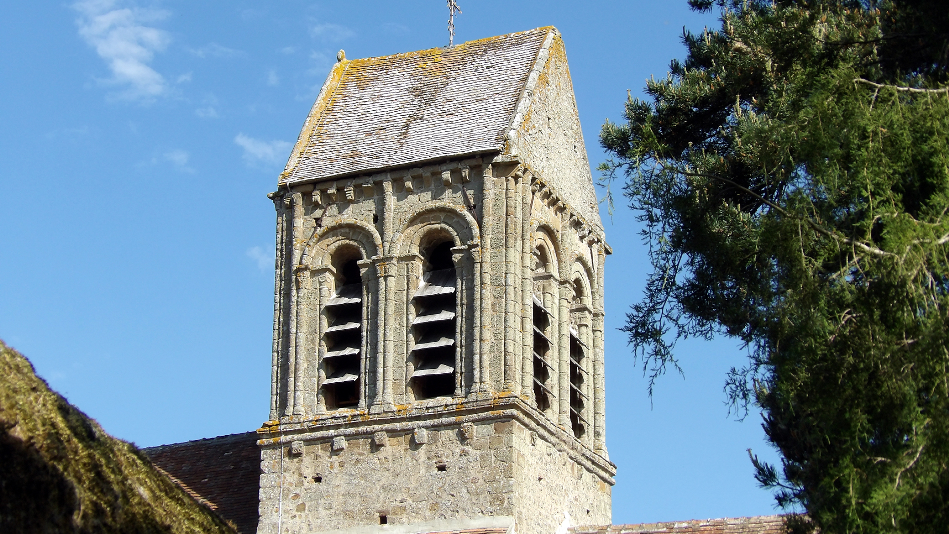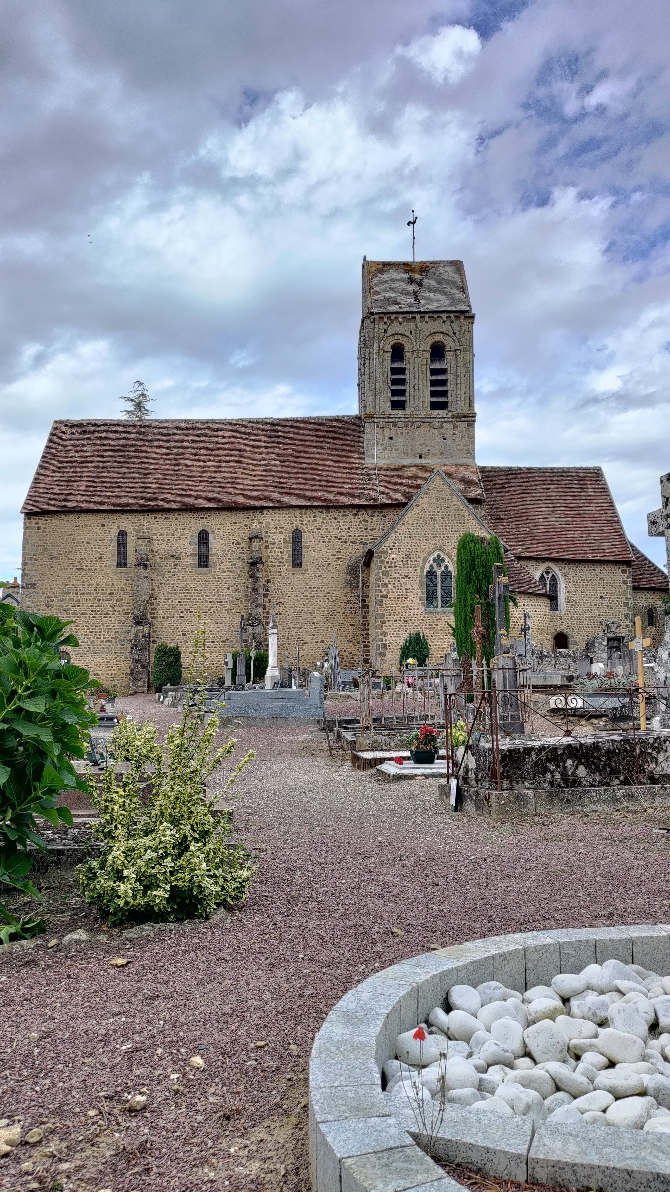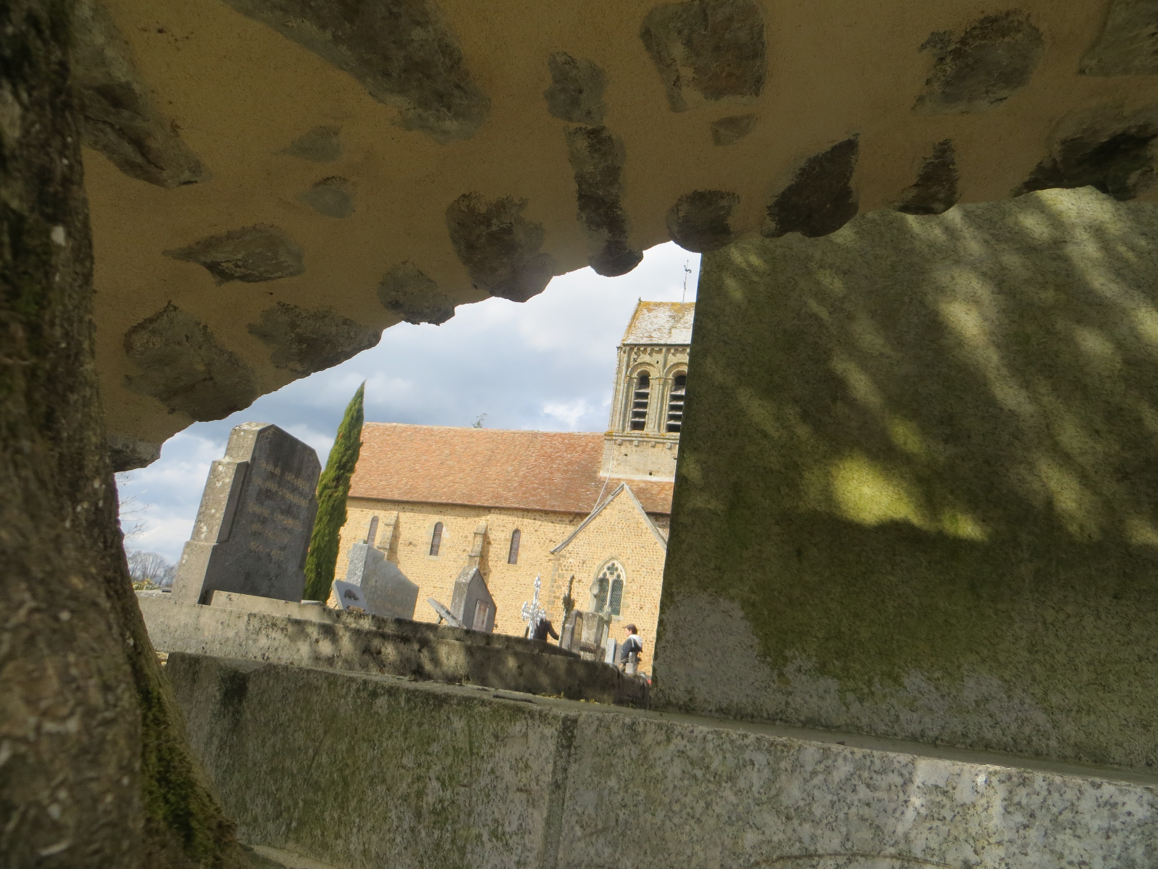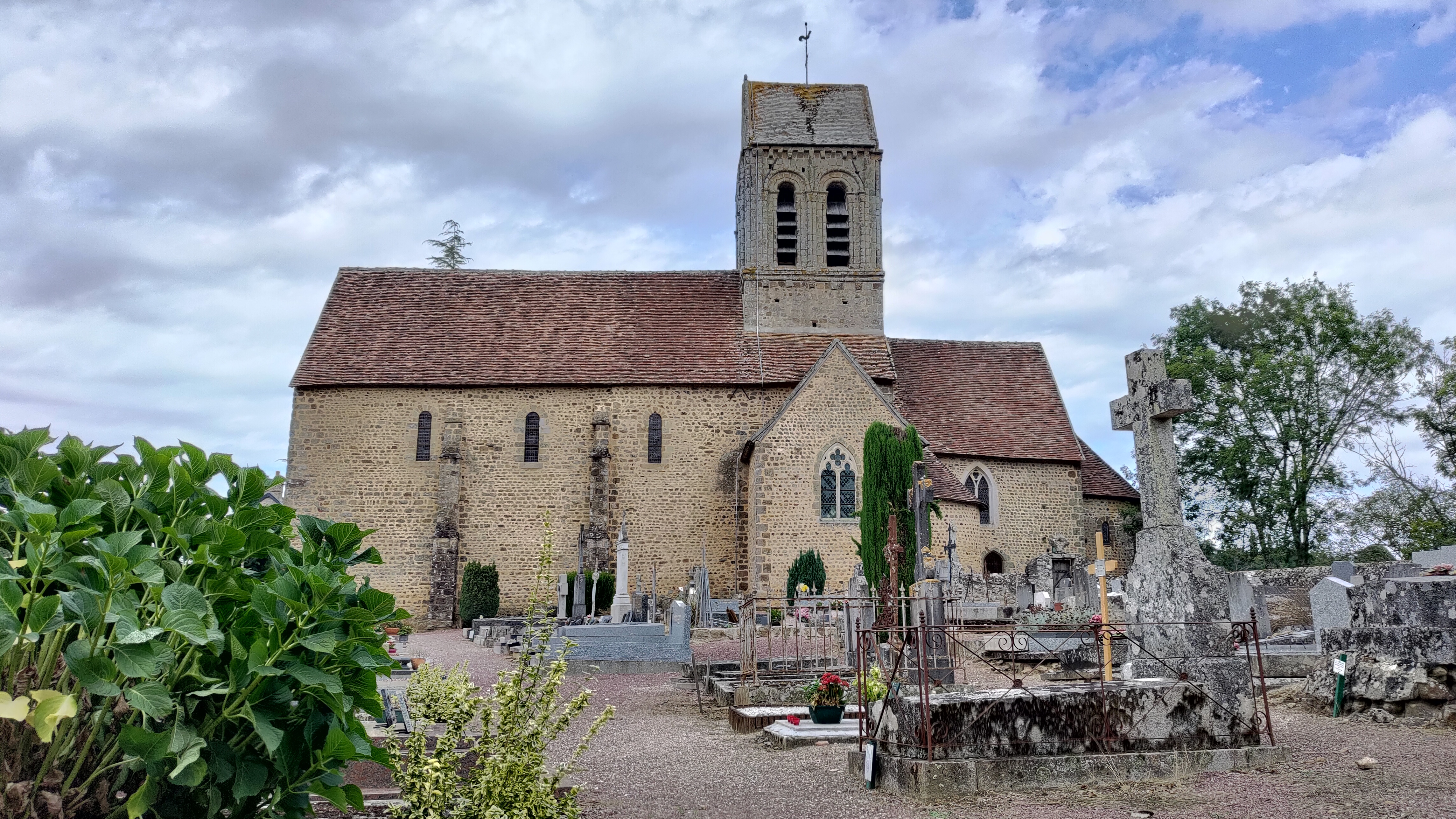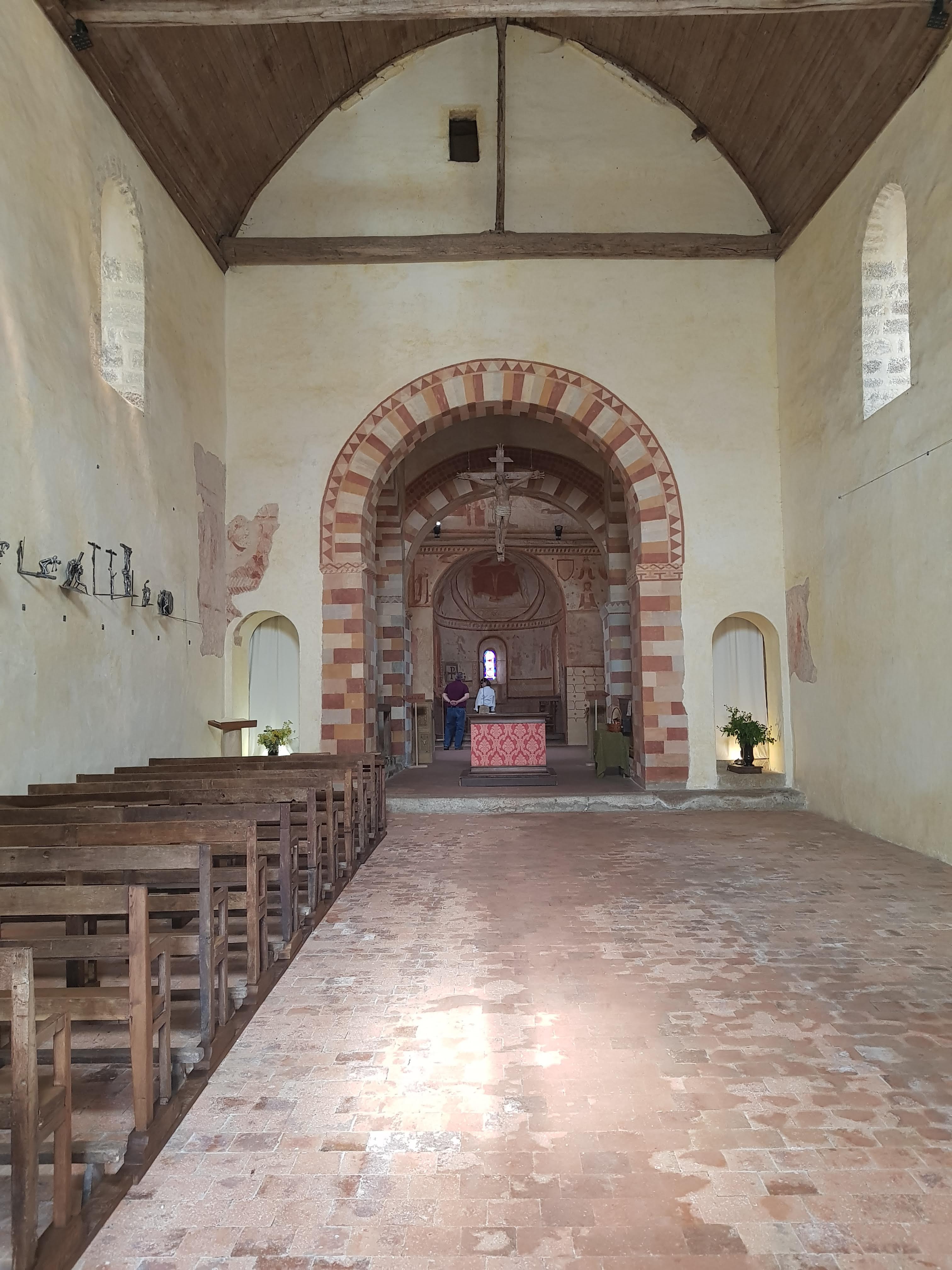 Charmante église Romane. Situation dans un beau village. Vue panoramique. Je reviendrais pour visiter les jardins.