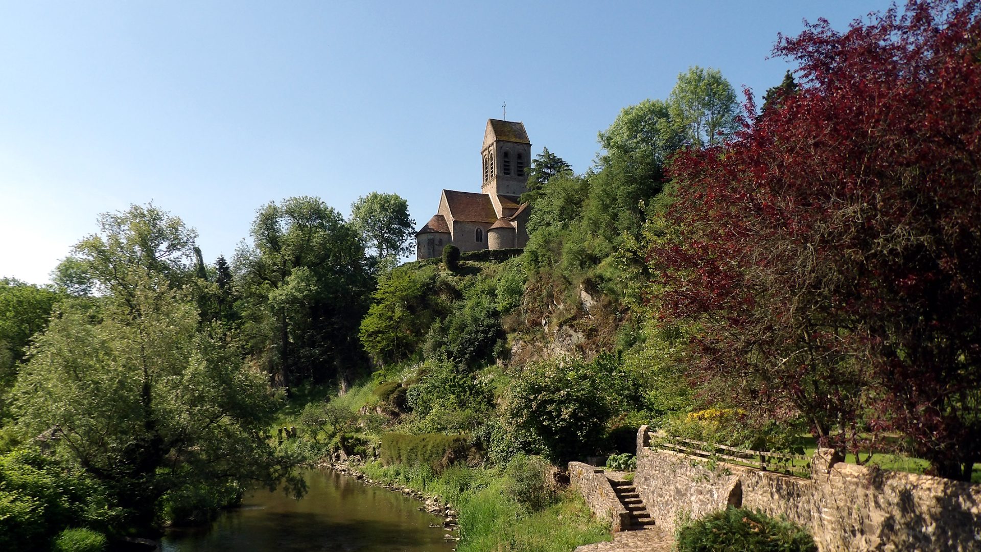 Belle vieille église. Belles promenades au bord de la rivière.