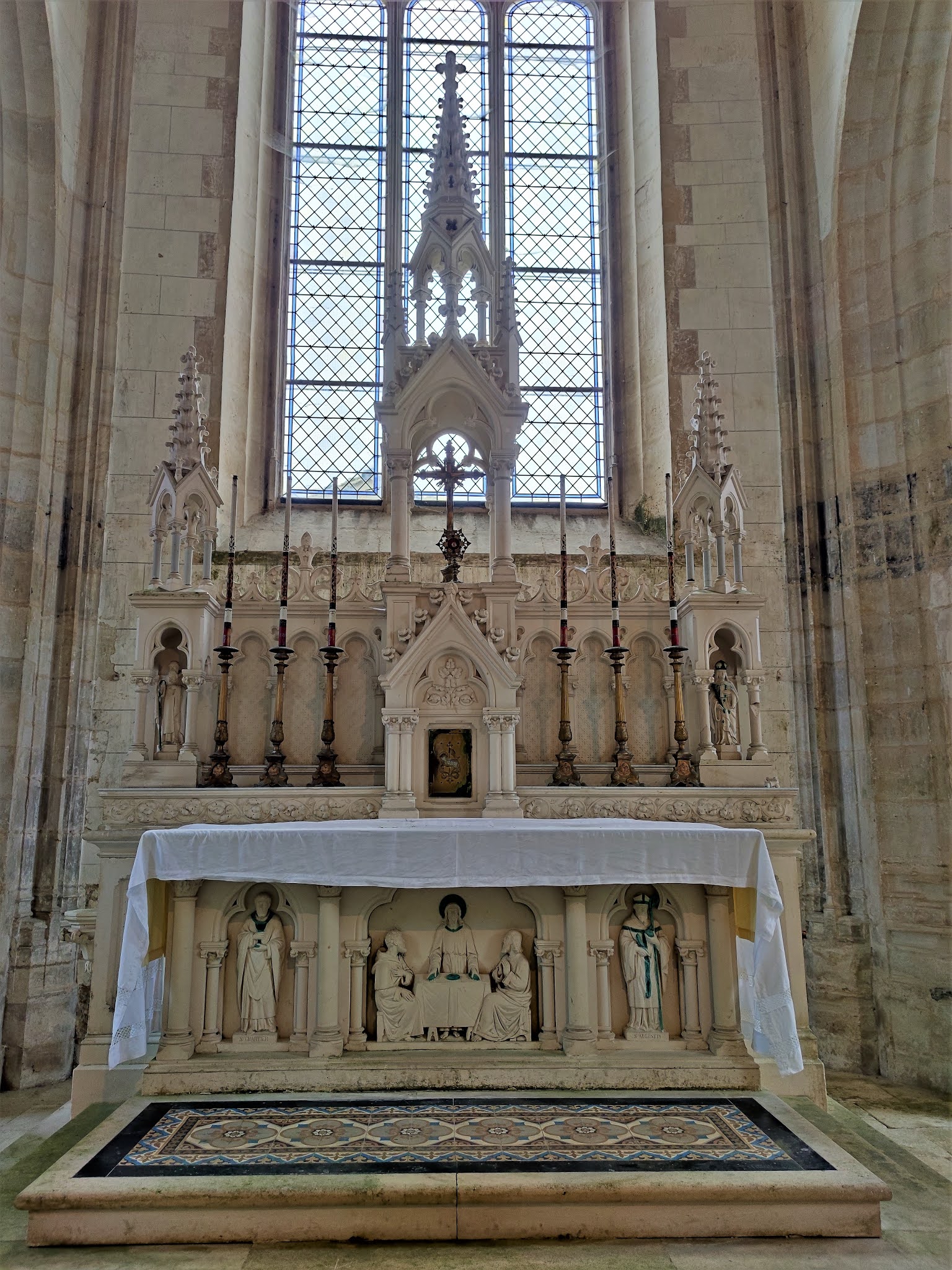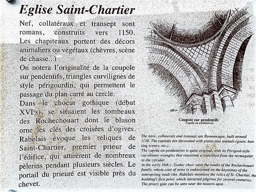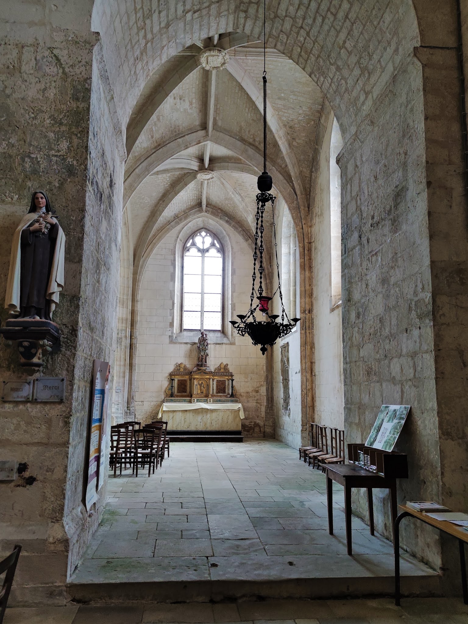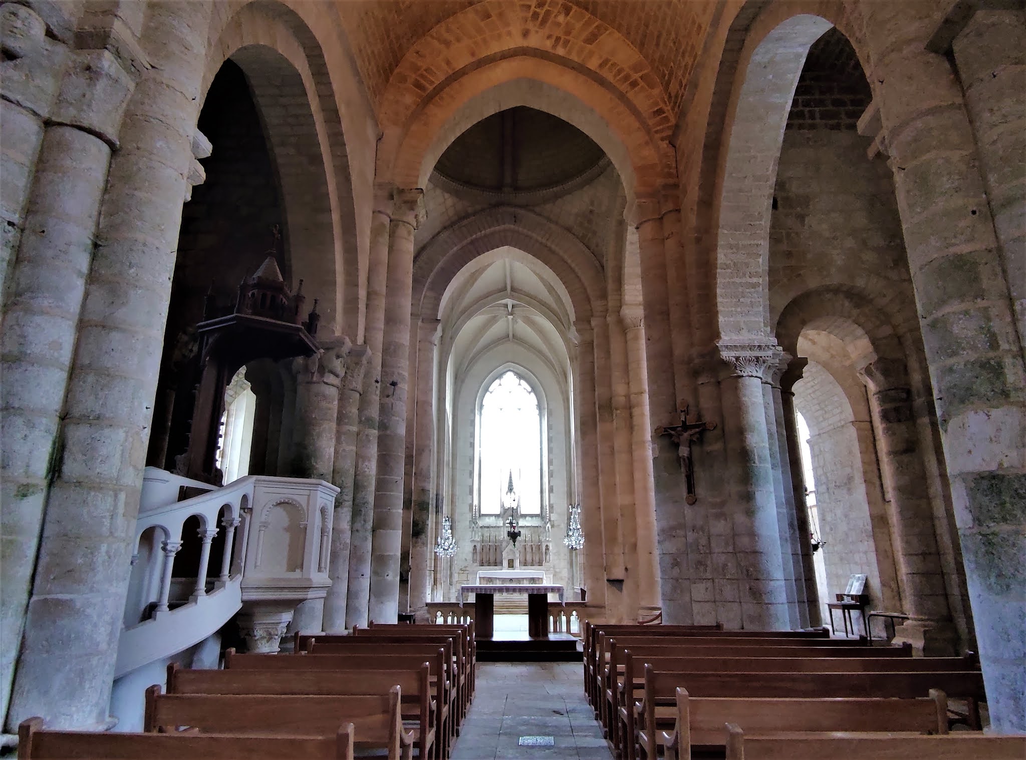 Classée par les M.H. depuis 1840, sa construction a débuté au 11ème siècle. Une église millénaire avec une grande partie romane, façade, nef, transept, base du clocher, et un chœur gothique totalement reconstruit au 16ème siècle. La nef romane possède trois vaisseaux, le chœur gothique trois vaisseaux également. Elle est située près du château dans un joli parc qui abrite un plan d'eau. C'est une église à découvrir, la hauteur de la nef est conséquente, les piliers aux multiples colonnes supportent une voûte en berceau brisé. Le chœur et ses ouvertures gothiques apporte une lumière bienvenue.