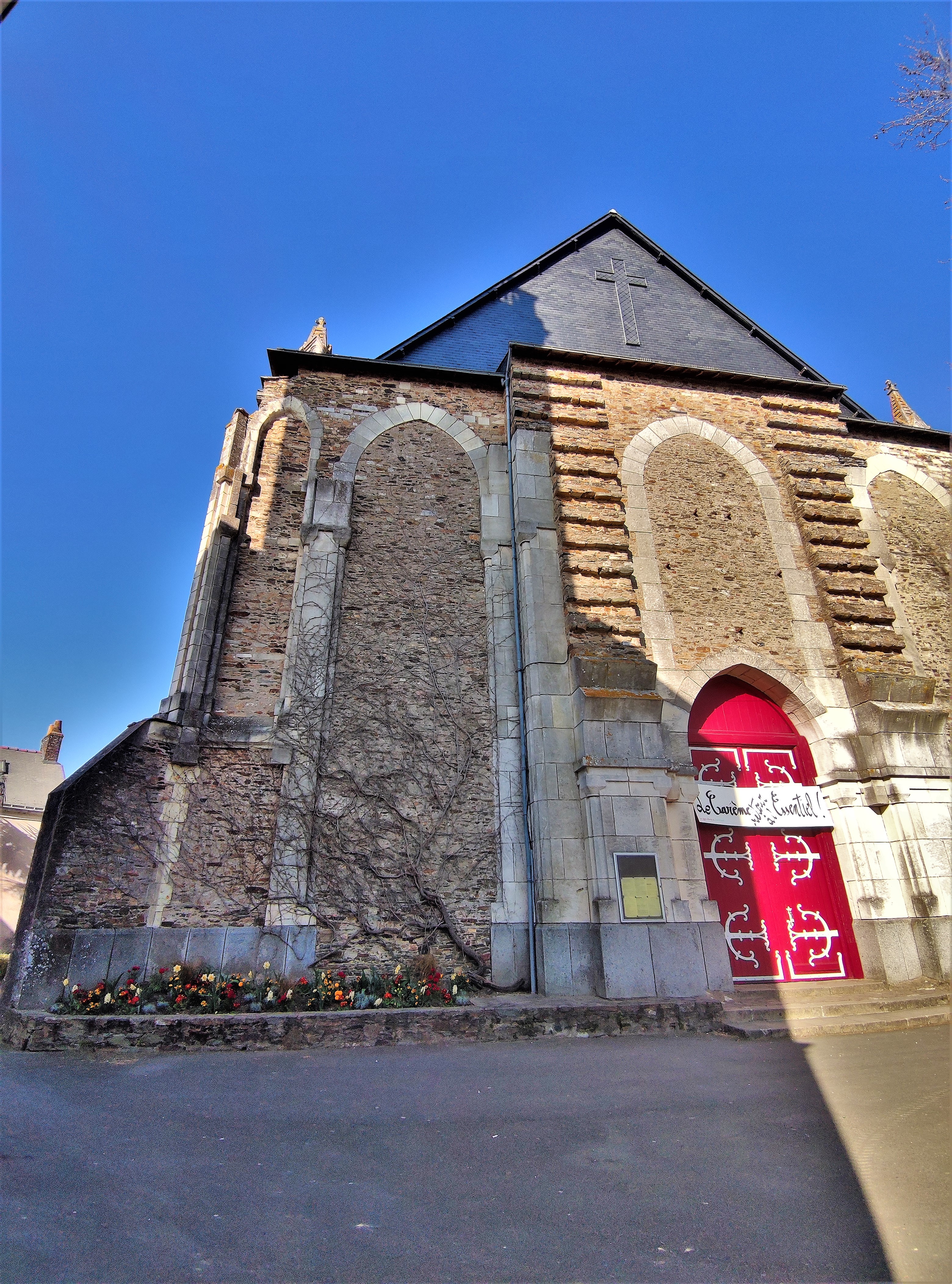 Normalement ouverte, l'église était fermée à 16 heures, la mairie m'a adressé fin de non-recevoir, une vraie déception. Ce 24 mars 2022, le soleil était de la partie et, venu de Poitiers pour découvrir le petit patrimoine de nos régions, une des étapes était cette église néogothique du 20ème siècle aux vitraux somptueux. Je me faisais une joie de la découvrir. L'église étant fermée, j'ai téléphoné à la mairie, mes interlocutrices m'ont expliqué que la mairie ne s'occupait pas de l'église, qu'il fallait contacter le presbytère. Le N° de téléphone qu'elles m'ont communiqué ne répondait pas. La commune est propriétaire de l'église, doit posséder les clés, ne serait-ce que pour l'entretien, et j'ai l'habitude d'emprunter les clés contre une pièce d'identité. C'est une des églises les plus grandes de Loire Atlantique, les réponses du personnel municipal m'ont vraiment choqué.