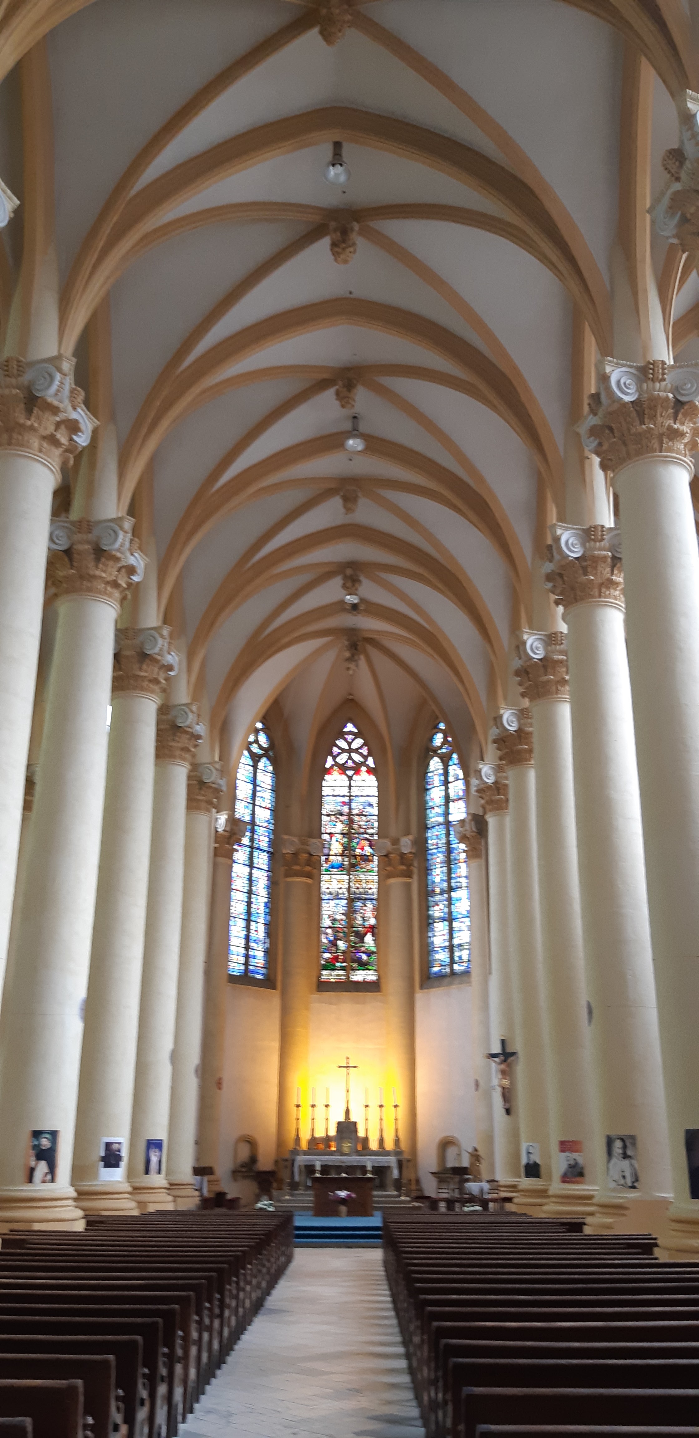 Église qui appartenait à un couvent bénédictin puis aux jésuites. Aujourd'hui paroisse où viennent de nombreuses familles avec de jeunes enfants (ils ont un tapis et des jeux à l'intérieur de l'église)