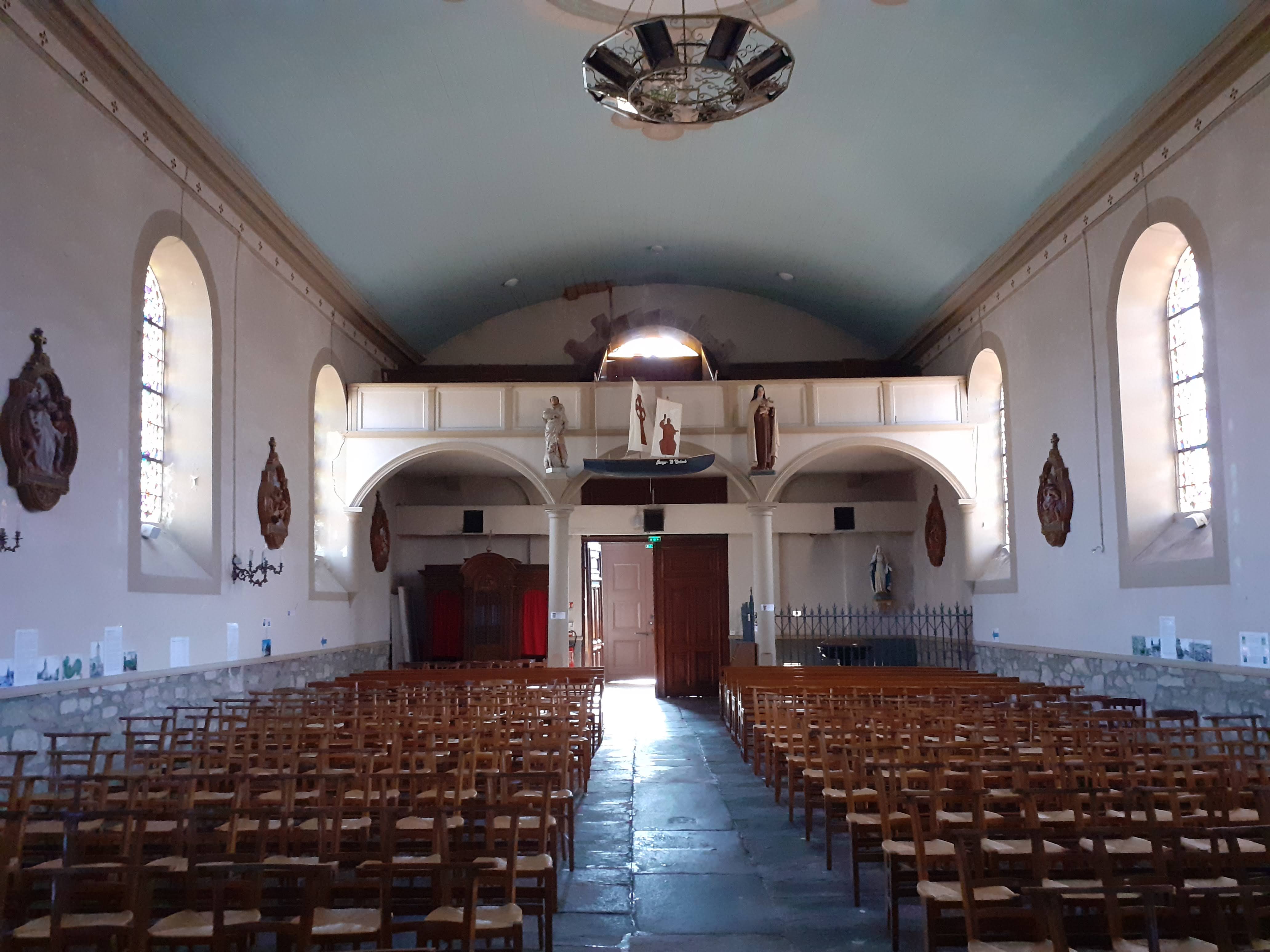 06/2022 - Bien campée sur son piédestal avec son clocher original. Intérieur simple quelques jolis vitraux et statuettes.