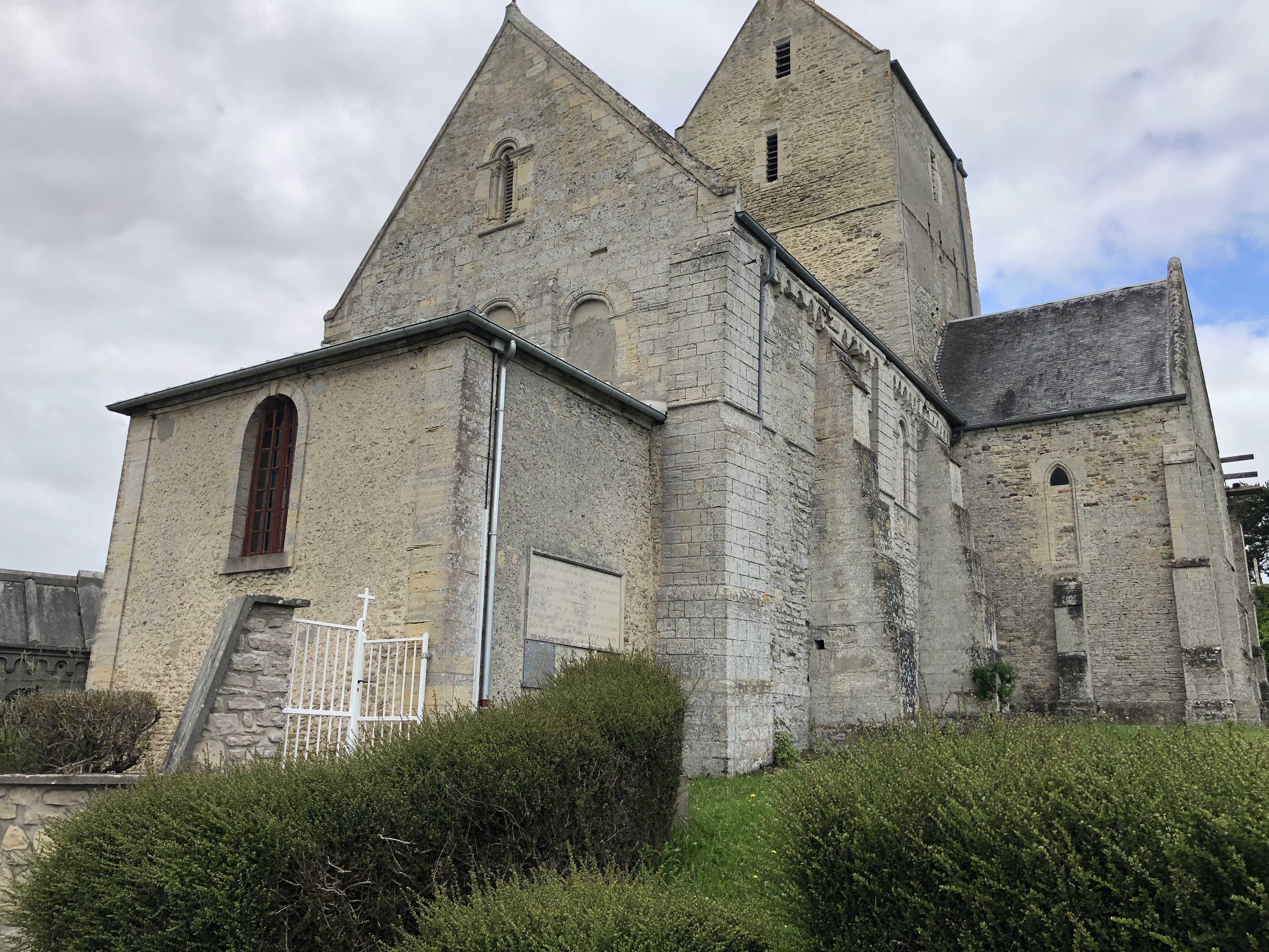 Une église en partie incendiée par les bombardements alliés lors du débarquement, les cloches sonnèrent lorsque les troupes touchent le sol français. Entourée de son ancien cimetière.