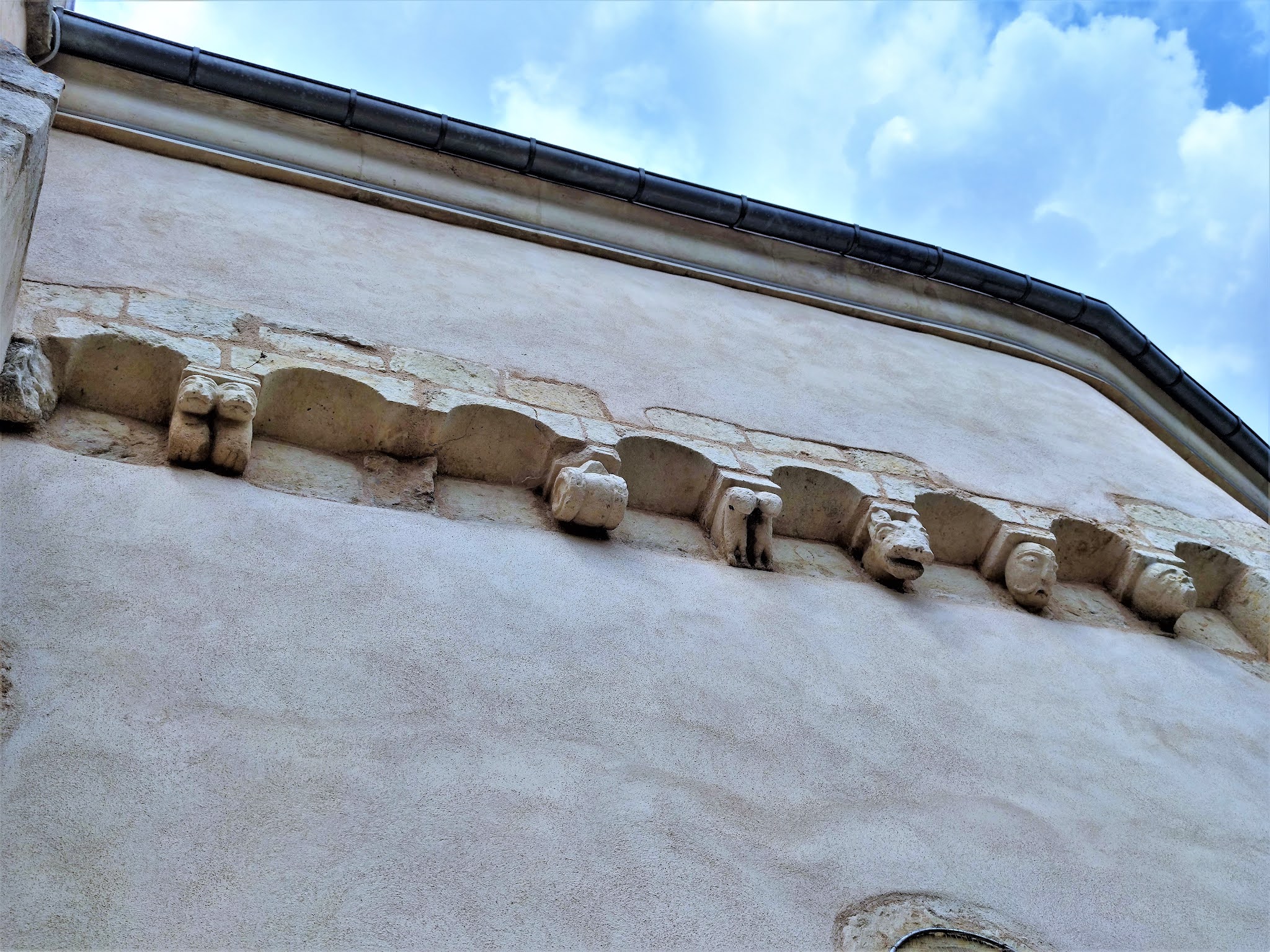 Une réjouissante découverte dans cette commune au riche patrimoine, 2 autres églises romanes et un pigeonnier sont à découvrir à proximité. Face à la mairie et son petit parc, cette église est située au milieu du bourg. La façade est surmontée d'un clocher-mur à 2 arcades équipées de 2 cloches. Pour accéder aux combles, une tour escalier est placée au sud. En faire le tour permet de voir les modillons. Eglise romane agrémentée de décors peints, ces derniers, détériorés sans doute par un problème d'humidité, mériteraient une restauration. Des arcs doubleaux à chapiteaux sculptés séparent deux travées de la nef voûtées en berceau et une voûtée d'arêtes qui semble la plus ancienne. Cette nef à vaisseau unique s'ouvre sur la travée du chœur, voûtée en berceau, prolongée par l'abside du sanctuaire. Une réjouissante découverte dans cette commune au riche patrimoine, 2 autres églises romanes et un pigeonnier sont à découvrir à proximité.