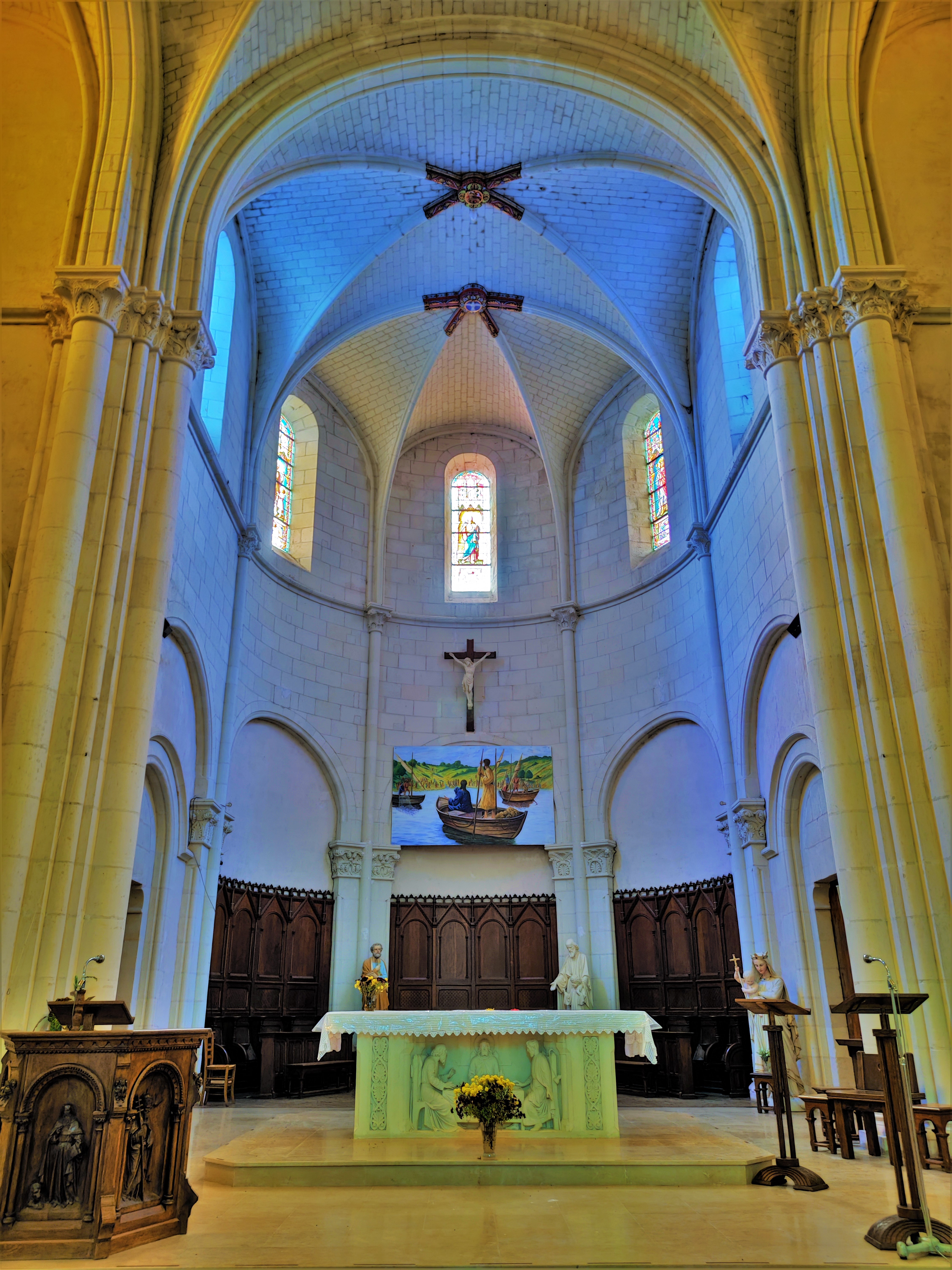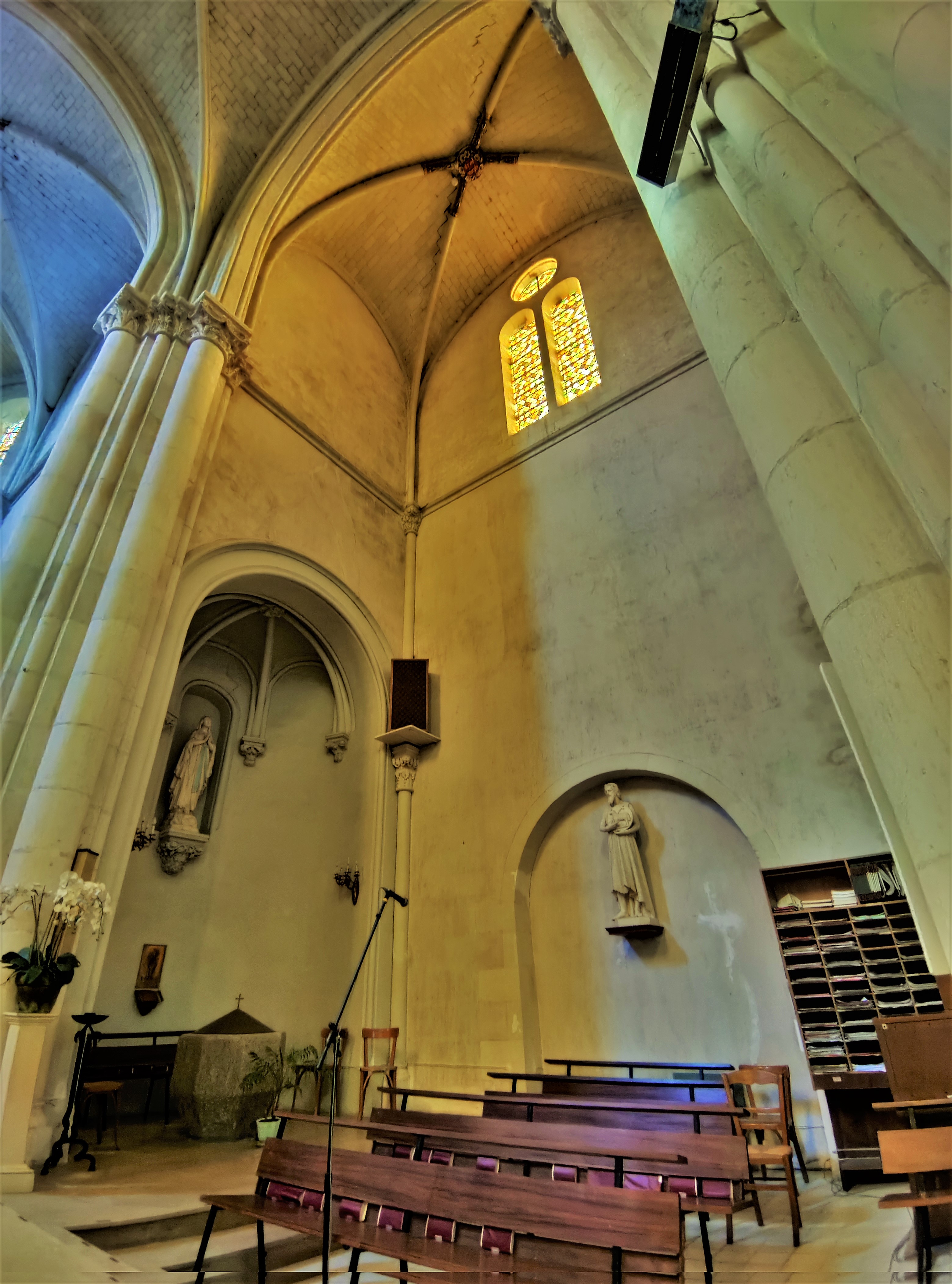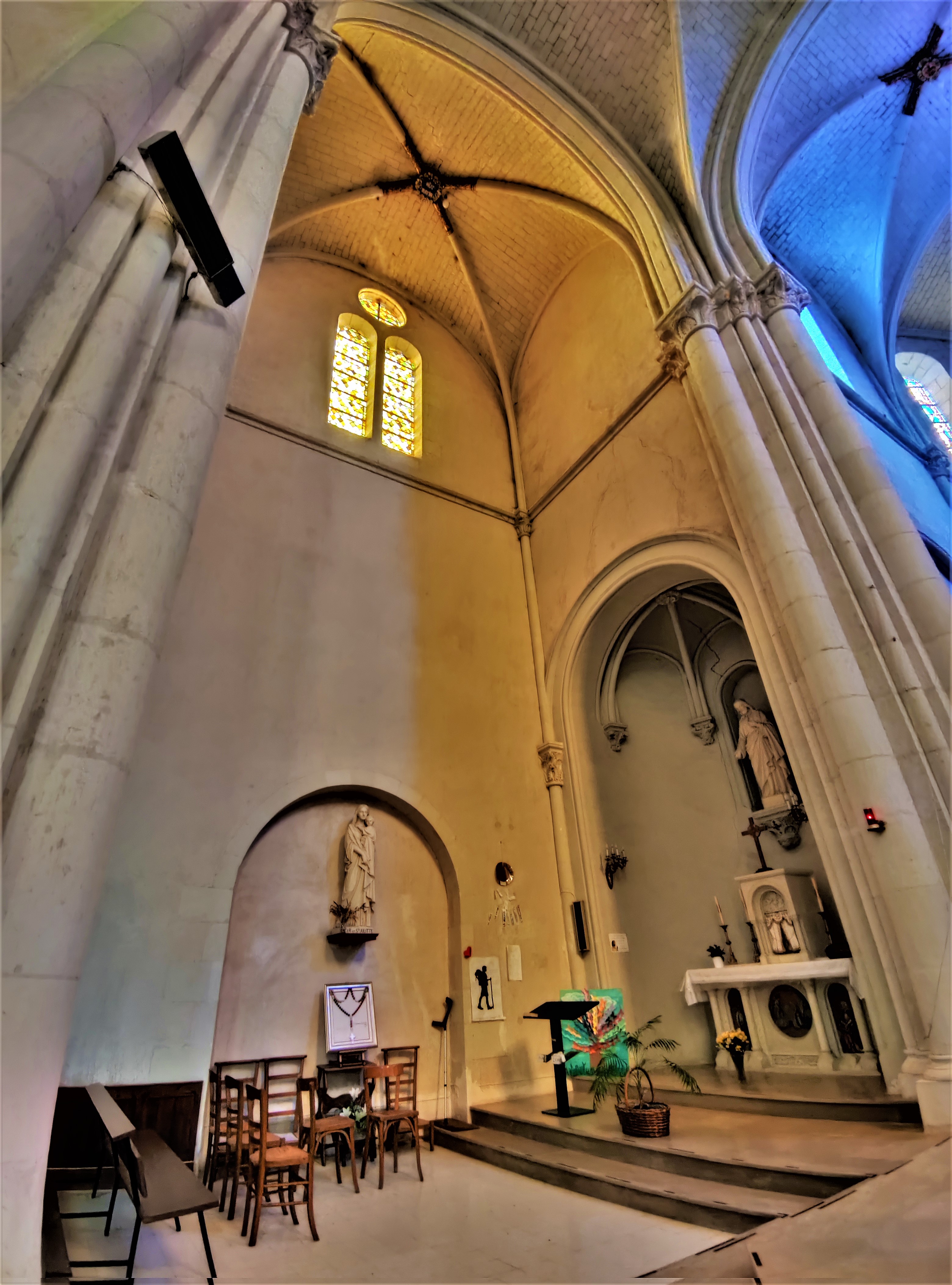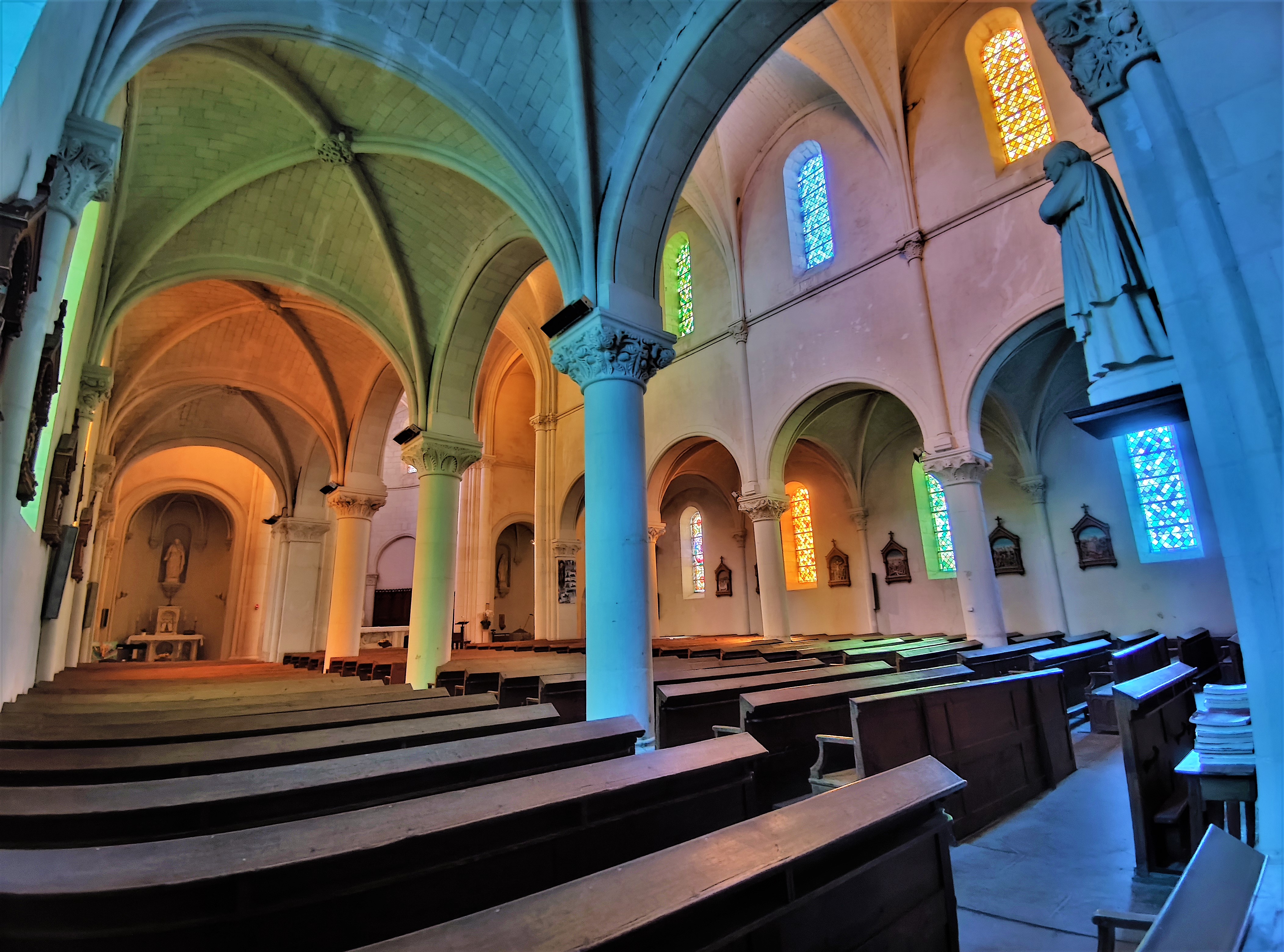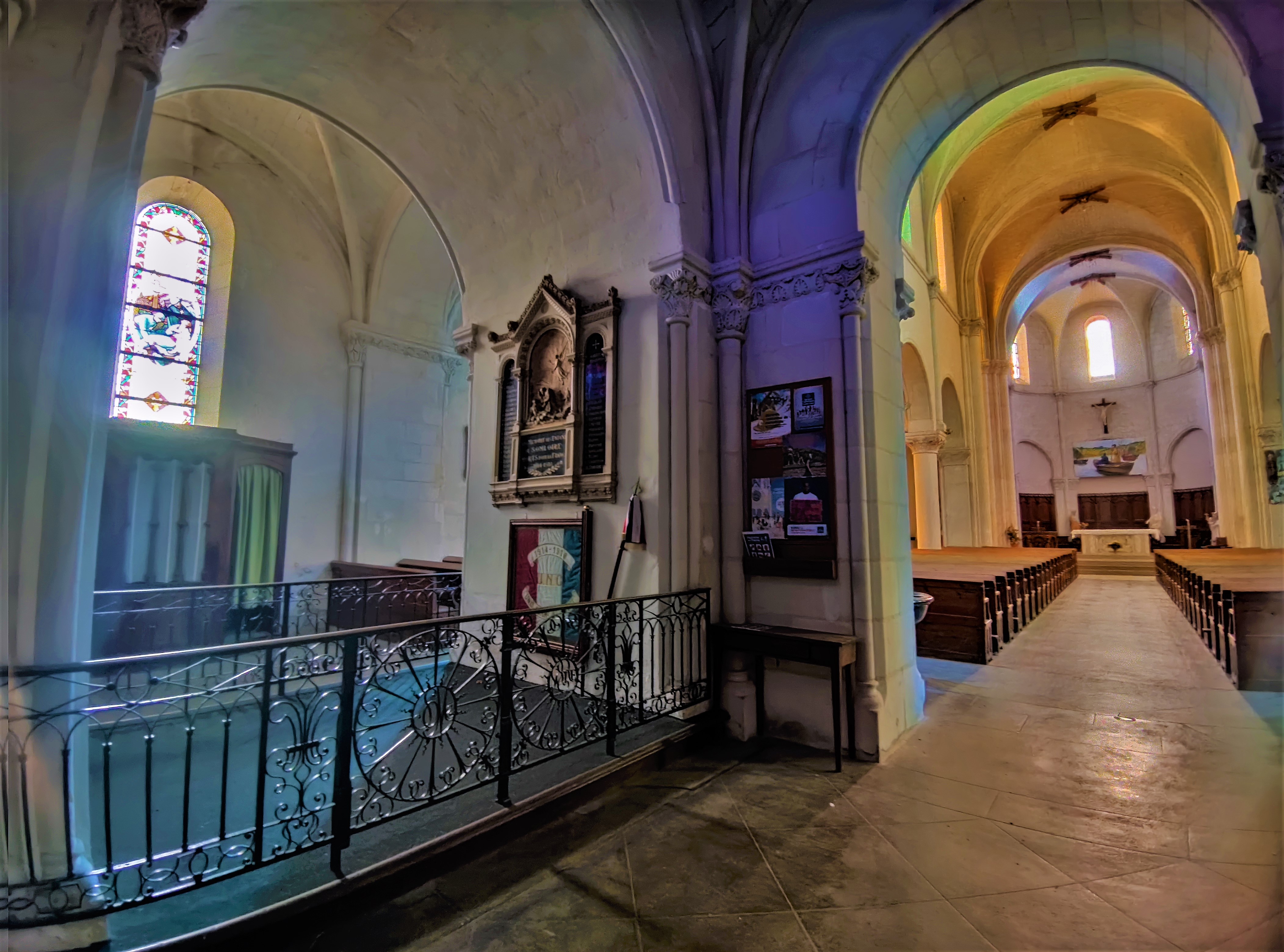 Une église du 19ème qui a remplacé l'église médiévale, arcs-boutants gothiques pour un édifice ou les courbes en plein cintre dominent. L'intérieur est d'une luminosité agréable, toutes les baies possèdent des vitraux, l'élévation de la nef centrale apporte un supplément de lumière. Les voûtes en croisées d'ogives ressemblent à des voûtes d'arêtes avec des liernes en plein cintre. Ouverte et accueillante, c'est une église qui rassemble, invitant à l'intériorité dans un espace simple et paisible. Bien mise en valeur sur sa petite place, elle est située à l'écart des voies passantes. À voir pour le plaisir d'un moment de spiritualité ou de simple détente.