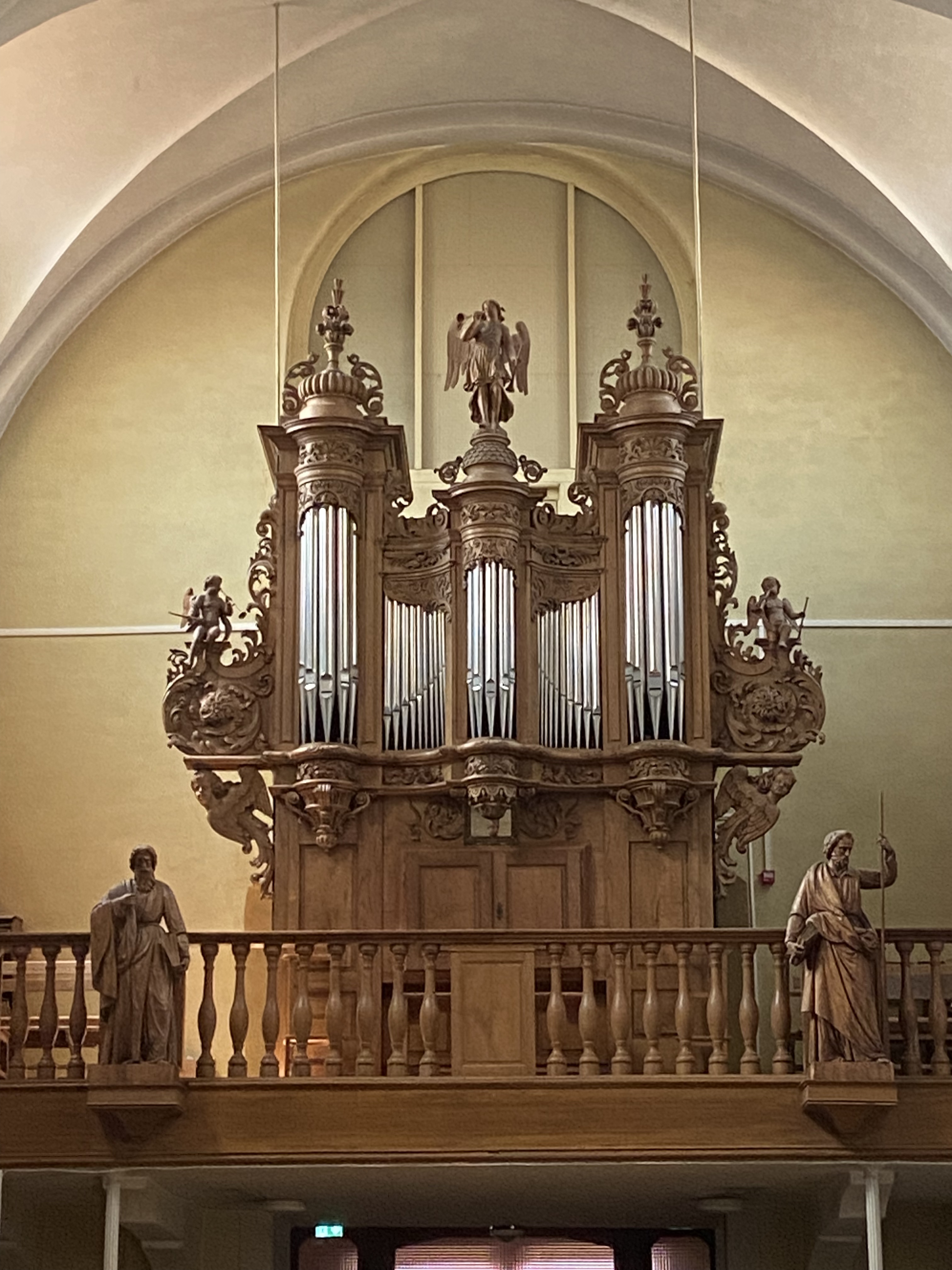 L'église (18e s.) échappa au terrible incendie de 1798. Sa façade est surmontée d'un clocher à bulbe. À l'intérieur, on peut admirer un grand retable baroque du 17e s. entièrement restauré. En face, l'orgue de Marin Carouge (18e s.), paré d'anges, a été reconstitué d'origine.