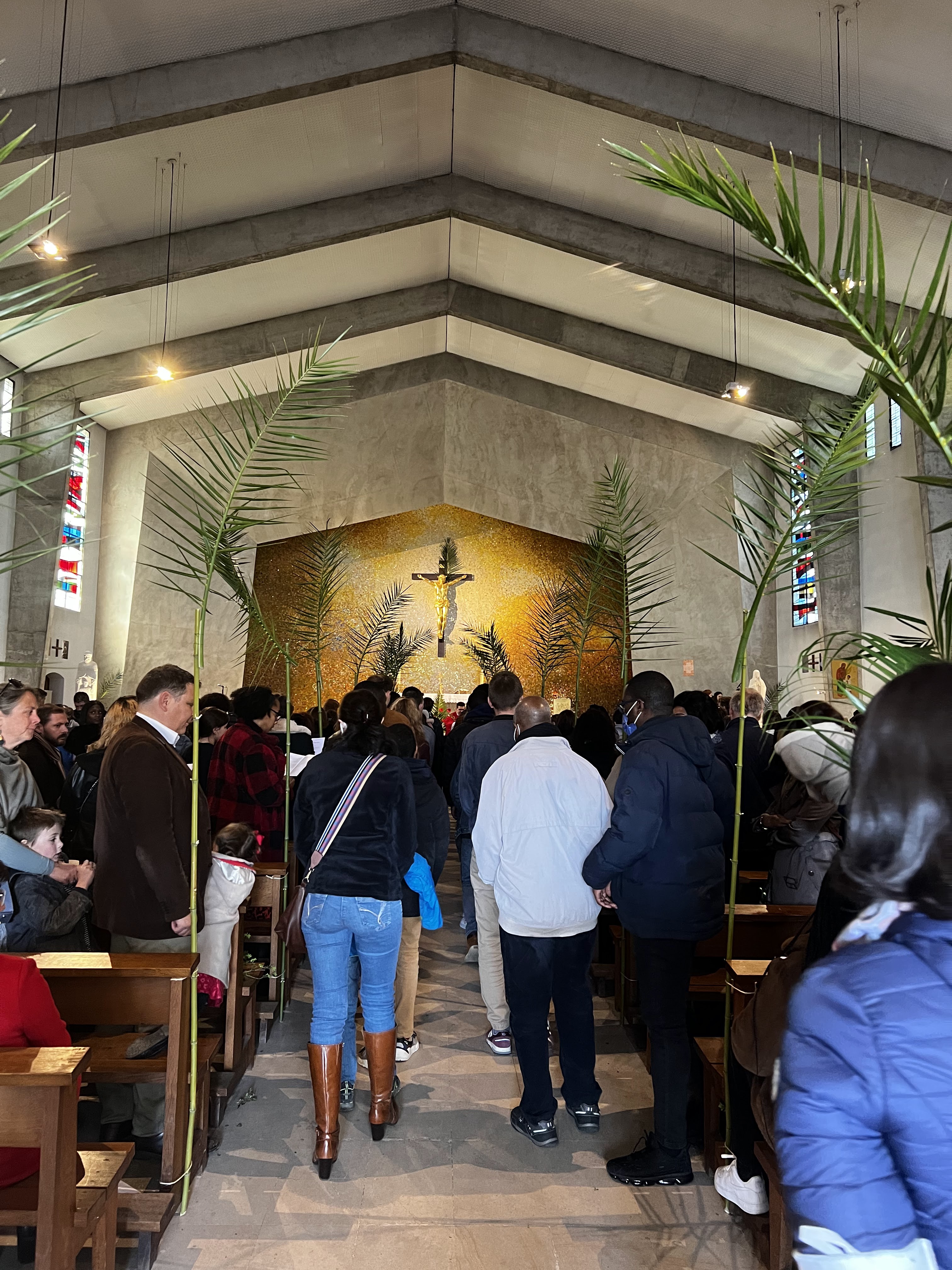 Très peu sensible à cet esthétisme tant extérieur qu'intérieur. L'Eglise est très grande, mais aussi très vide. Aucune chaleur ne s'en dégage, et en cela le béton n'aide vraiment pas. En cas de forte affluence, je vous conseille de monter à l'étage, moins de monde, plus de place et une meilleure vue finalement que si vous vous retrouvez coincés au fond de l'Eglise. Je précise que mon avis ne porte que sur l'architecture extérieure et intérieure de ce monument et ne porte absolument pas sur la valeur des prêtres qui y officient ainsi que de ses fidèles.