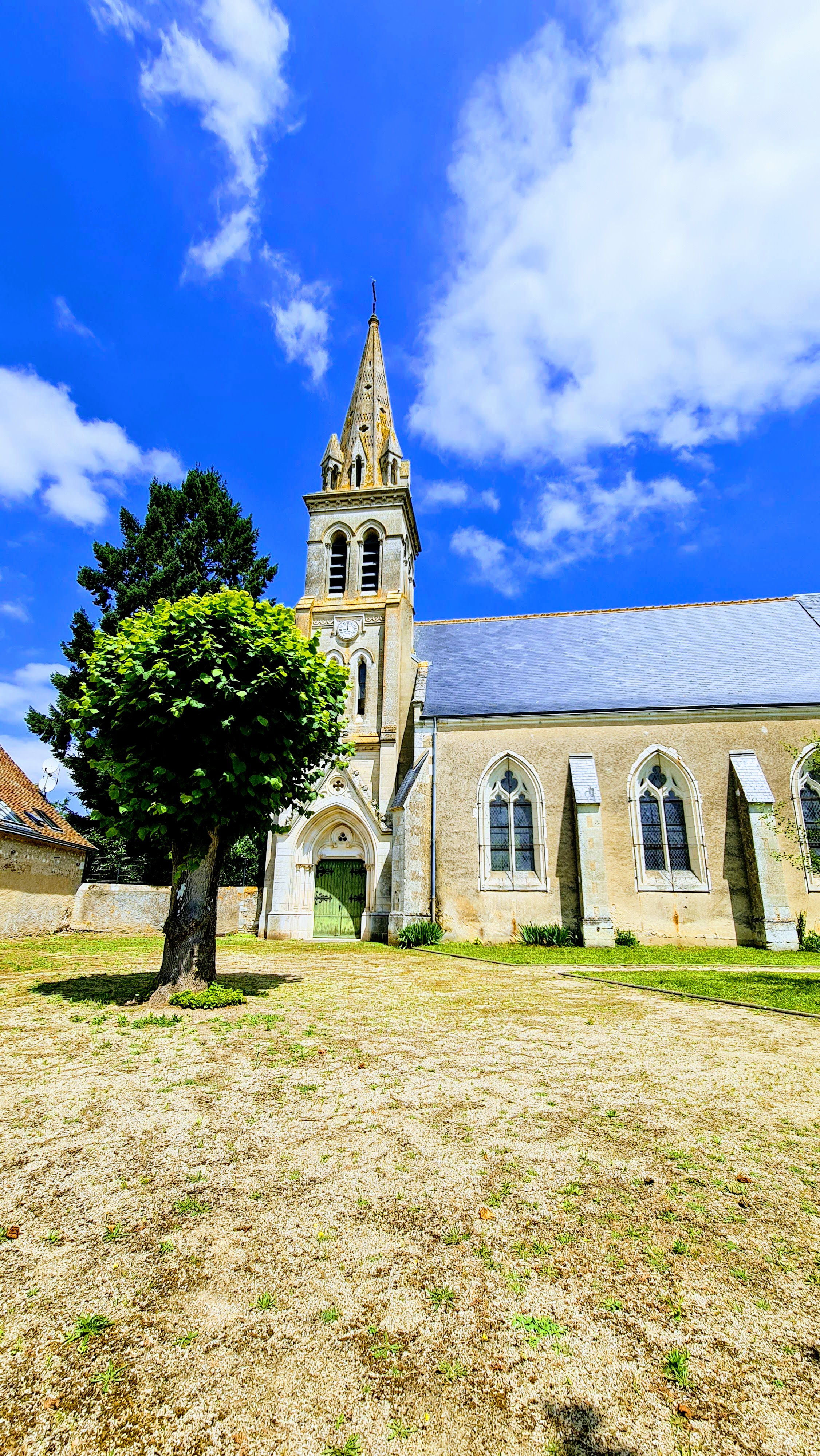 Charmante petite église au bord du Loir avec un banc à l'ombre pour se reposer. Elle n'est pas toujours ouverte on n'a pas pu la visiter.