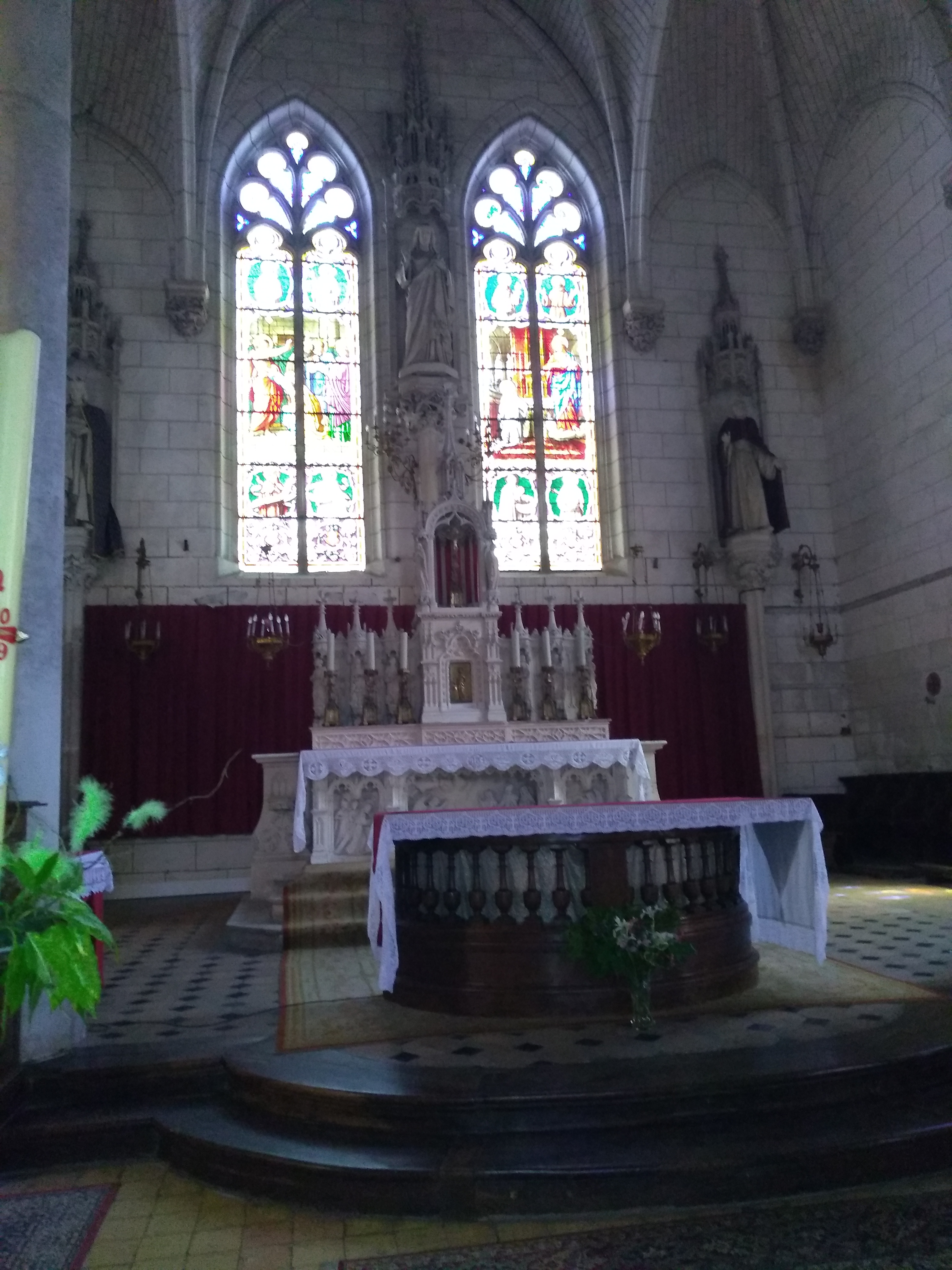 Des beaux vitraux, dommage la voûte en bois pas éclairée, sinon belle église.