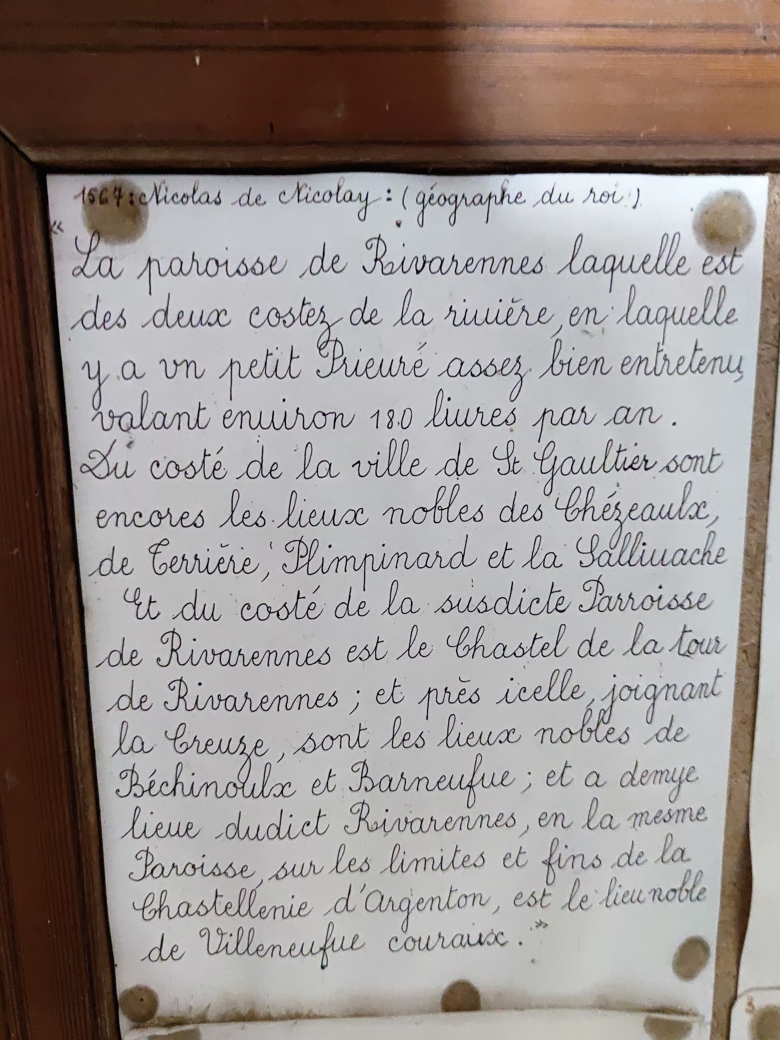 Classée en 1927, l'église Saint-Denis de Rivarennes fut construite au 11ème siècle et modifiée au 12ème siècle. La nef fut reconstruite au 15ème siècle. Ouverte presque tous les jours, une abondante signalétique guide les visiteurs et enrichit la découverte de cet édifice. L'entrée se situe au Nord, plusieurs chapelles complexifient le plan de l'édifice, chapelles seigneuriales, ajoutées au cours des siècles, voûtées en croisée d'ogives et/ou en berceau. Une tour-escalier permet d'accéder aux combles et par eux au clocher. Voir aussi, l'église et prieuré de Saint-Gaultier, anciennement église Saint-Hilaire, à Saint- Gaultier, les histoires de ces deux églises sont liées. Au 11ème siècle, la commune de Rivarennes faisait partie du village de Saint-Gaultier et ses terres appartenaient au seigneur de Chabanais. Ces terres furent données en compensation, sur demande du pape, ainsi que les deux églises à l'abbaye de Lesterps. Cette dernière avait été incendiée au cours d'une guerre féodale. Le Père-Abbé Gaultier de l'abbaye de Lesterps avait déposé plainte auprès du pape et obtint gain de cause.