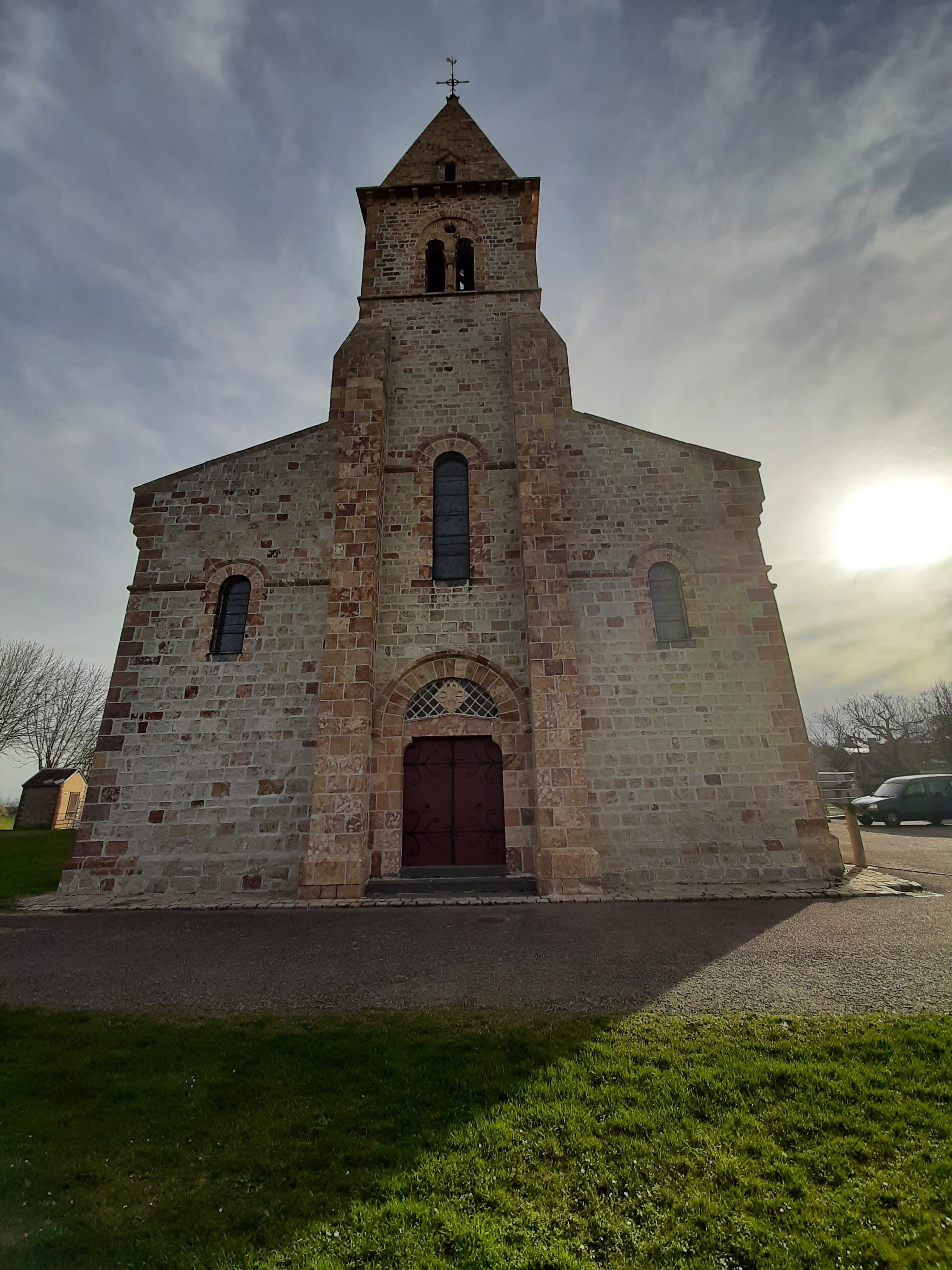 Très belle église, faite de pierre rouge. A visiter si vous passez devant la petite route qui y mène.