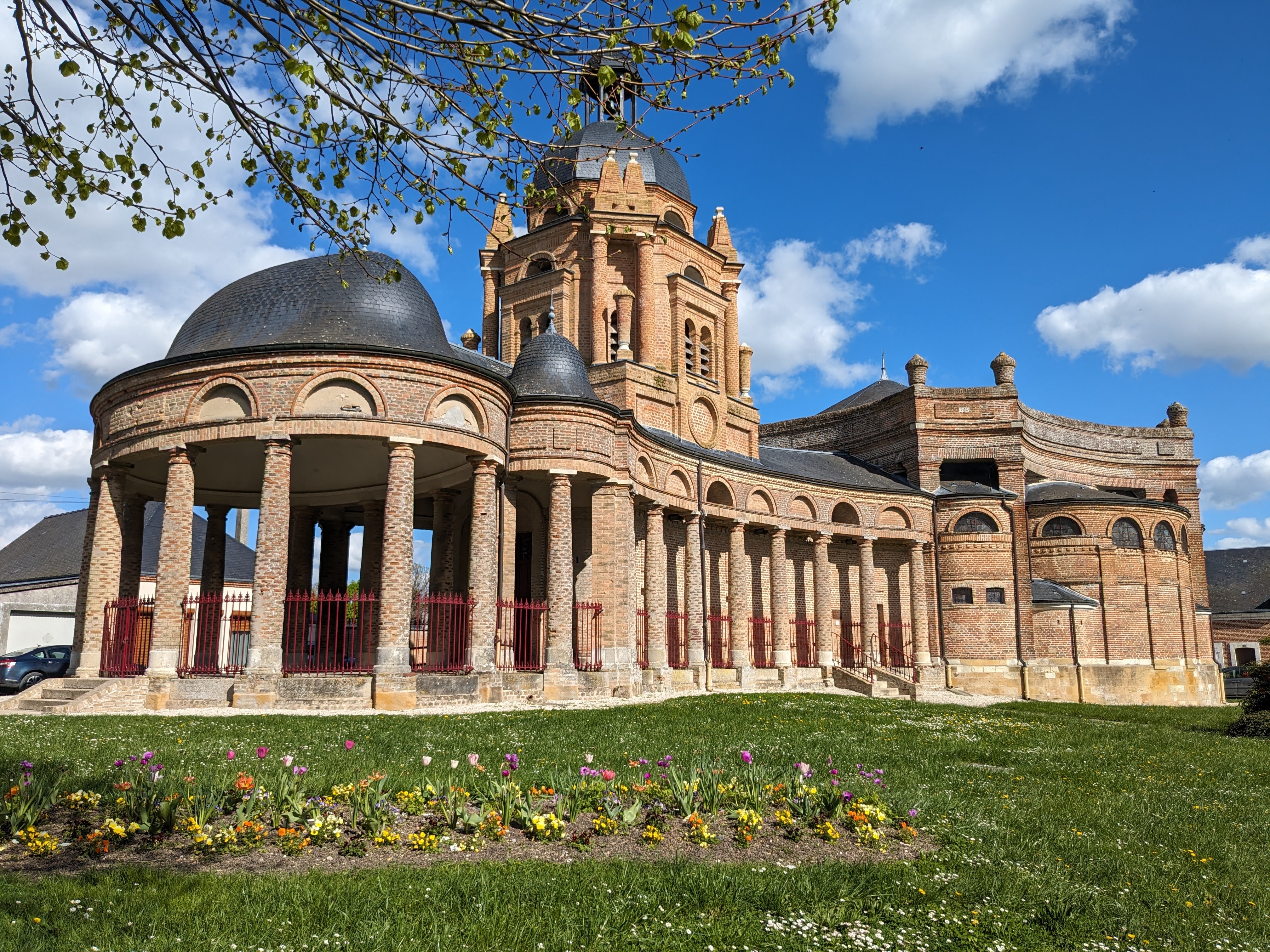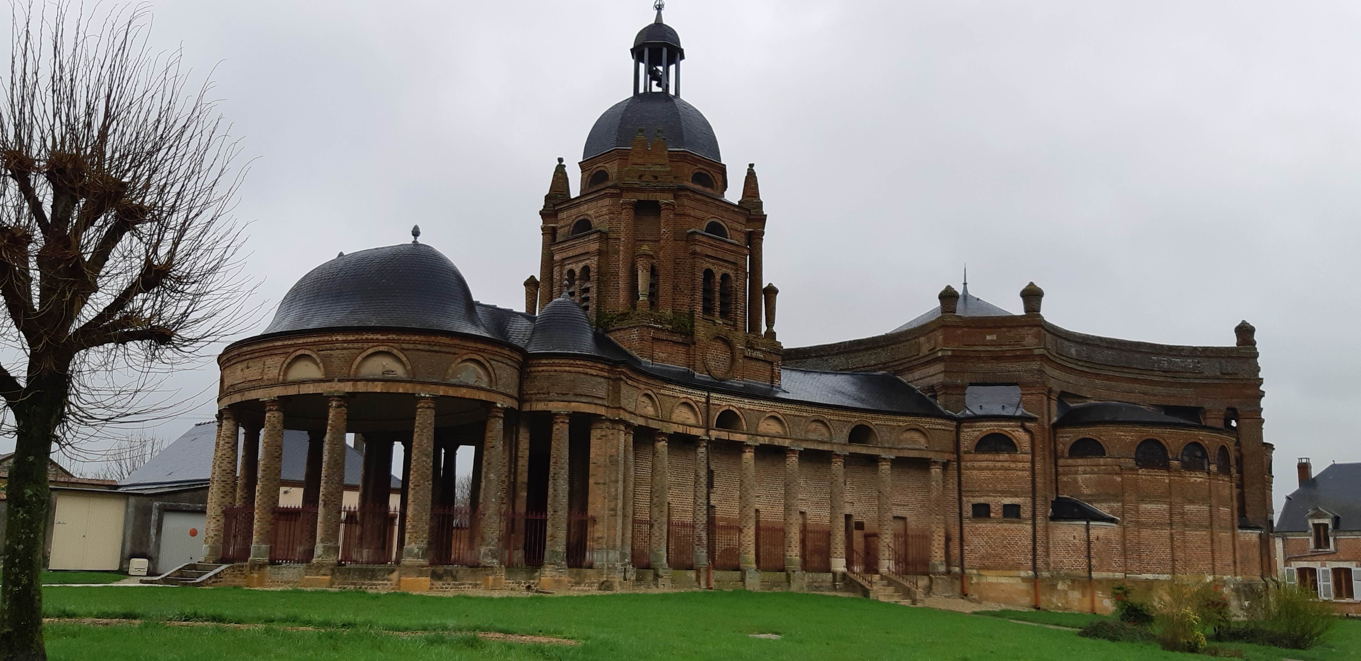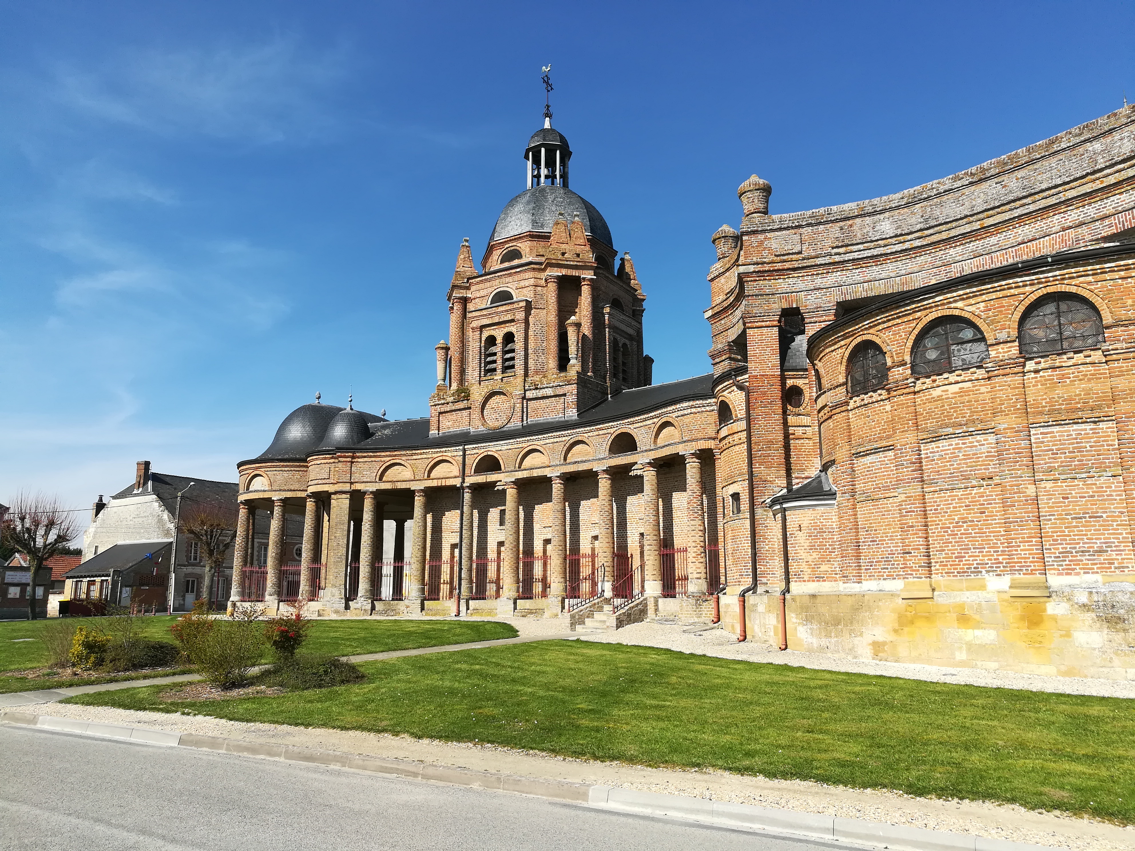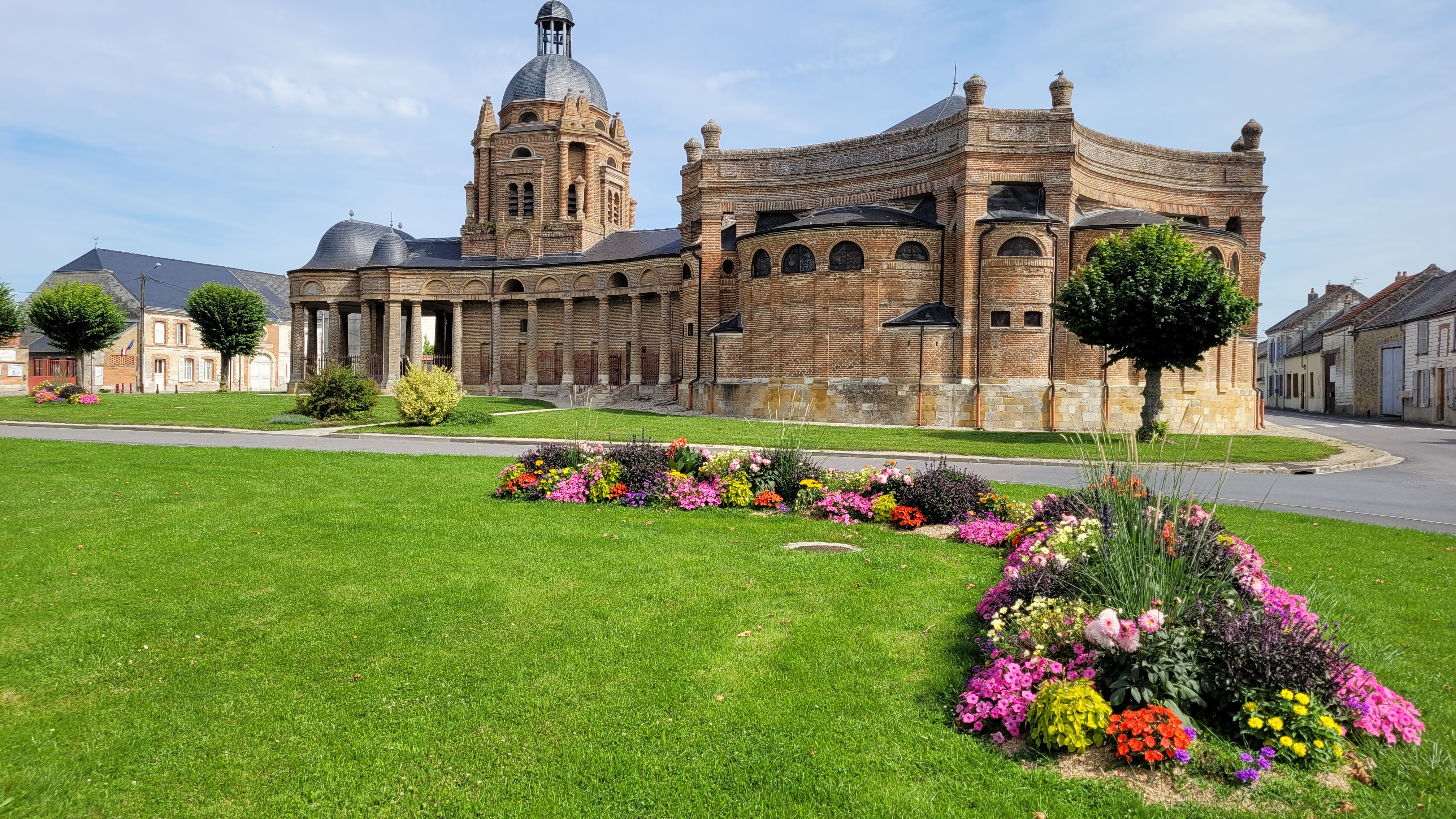 Dans ce village de Champagne-Ardennes portant un nom aux consonnances étrangement germaniques, une église tout aussi improbable dont le plan évoque la silhouette d'une viole. La partie la plus remarquable, aussi bien intérieurement qu'extérieurement, est la rotonde bâtie sur un plan pentagonal.