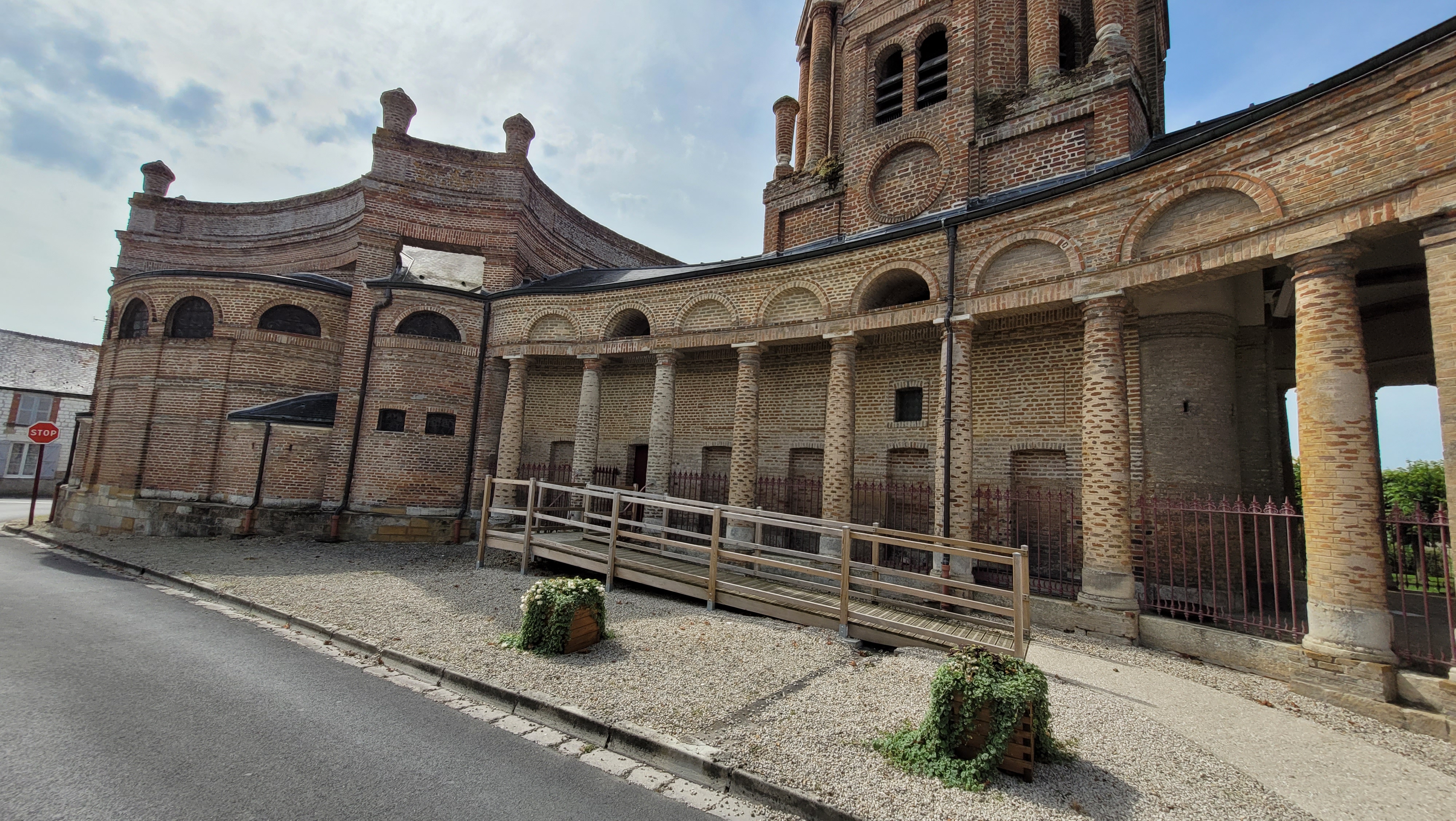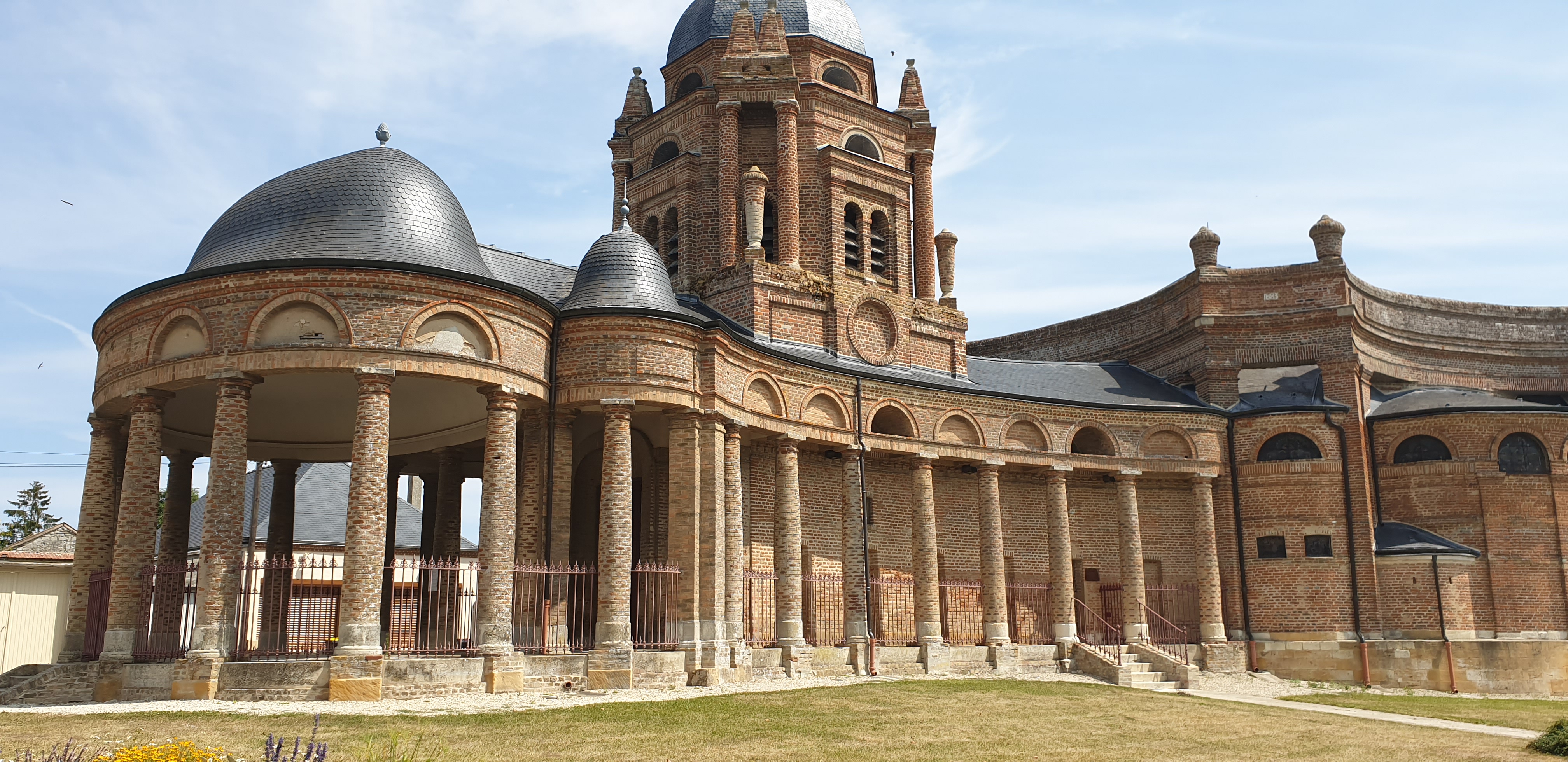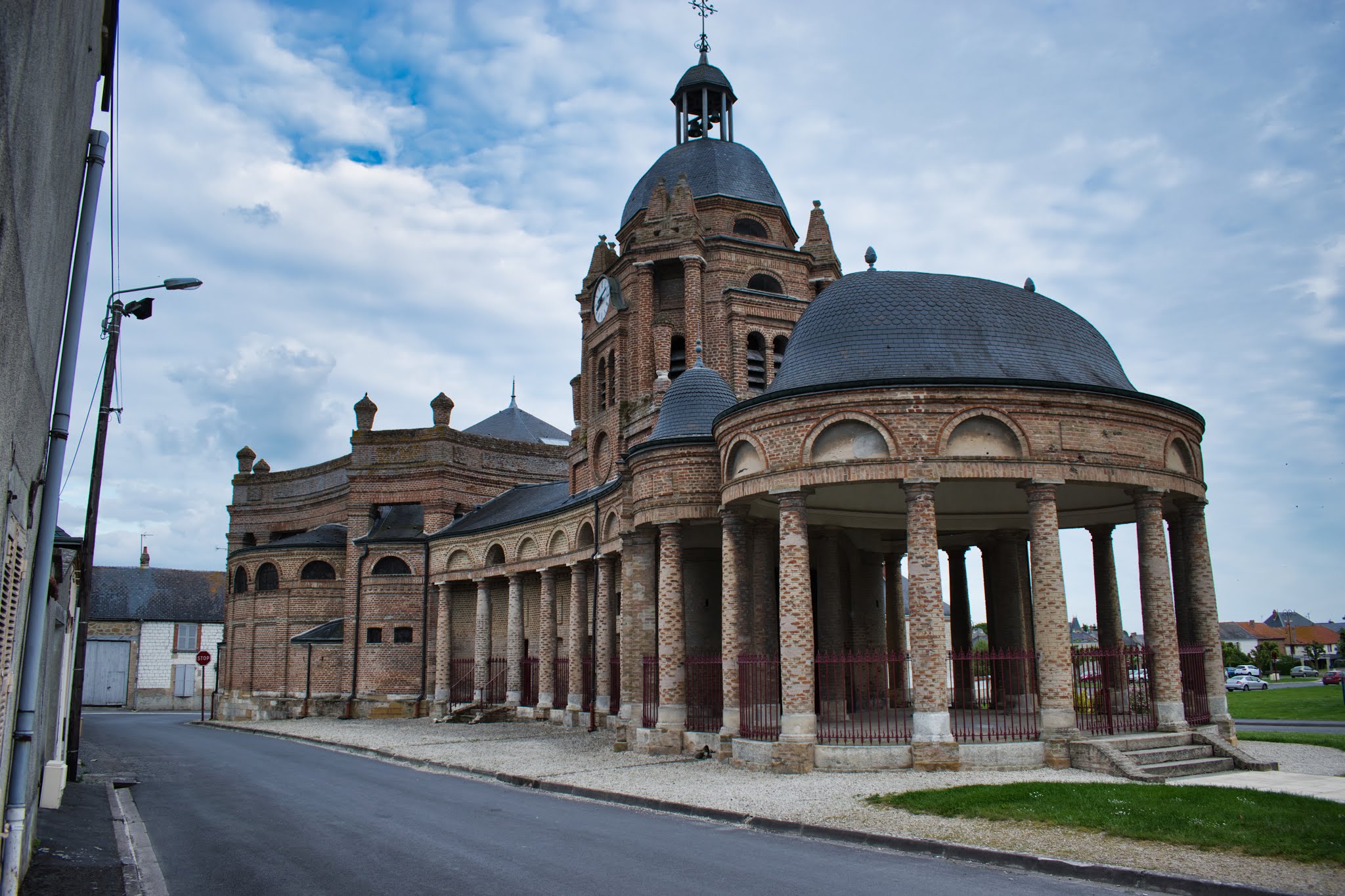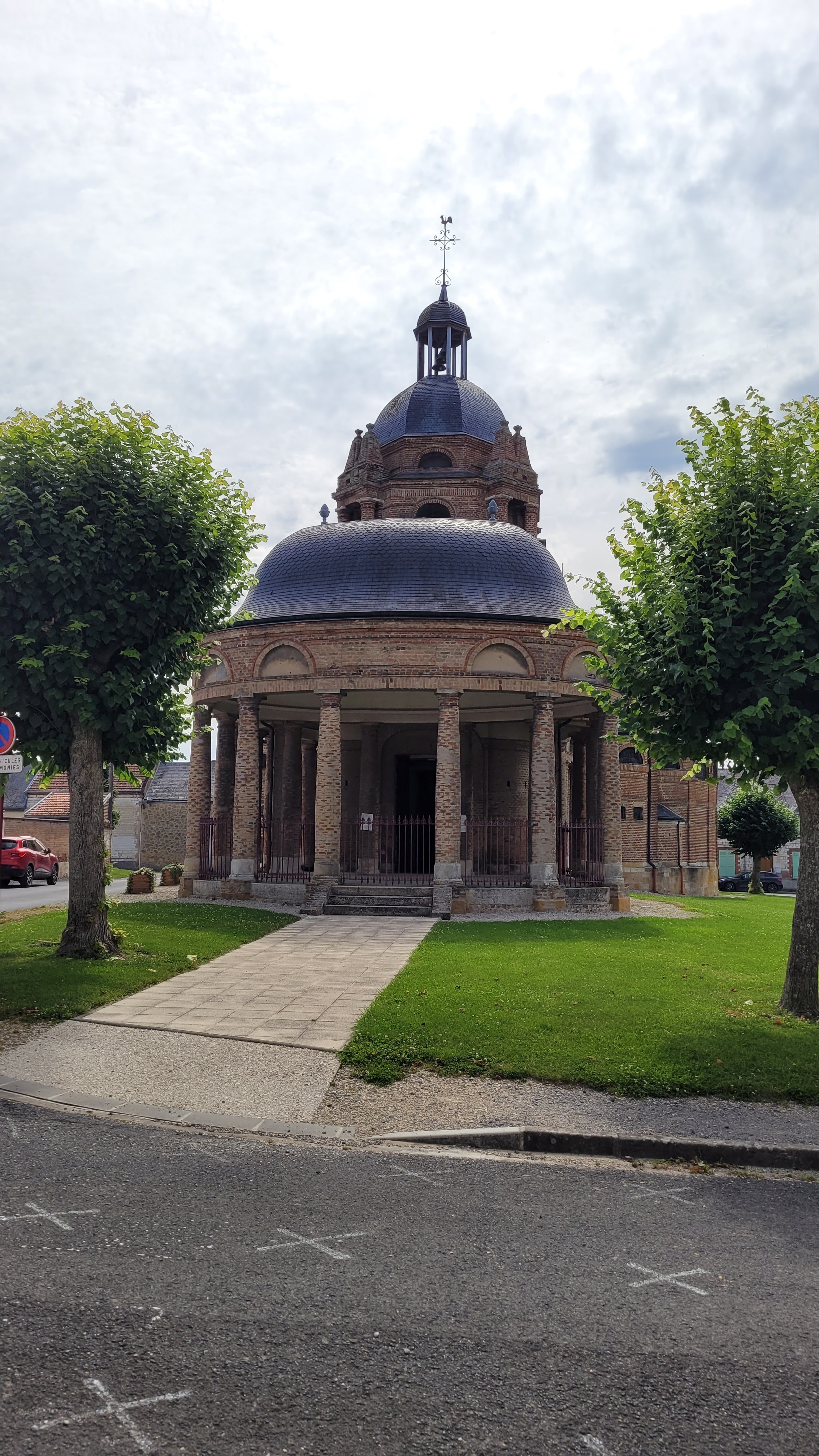 Dans ce village de Champagne-Ardennes portant un nom aux consonnances étrangement germaniques, une église tout aussi improbable dont le plan évoque la silhouette d'une viole. La partie la plus remarquable, aussi bien intérieurement qu'extérieurement, est la rotonde bâtie sur un plan pentagonal.