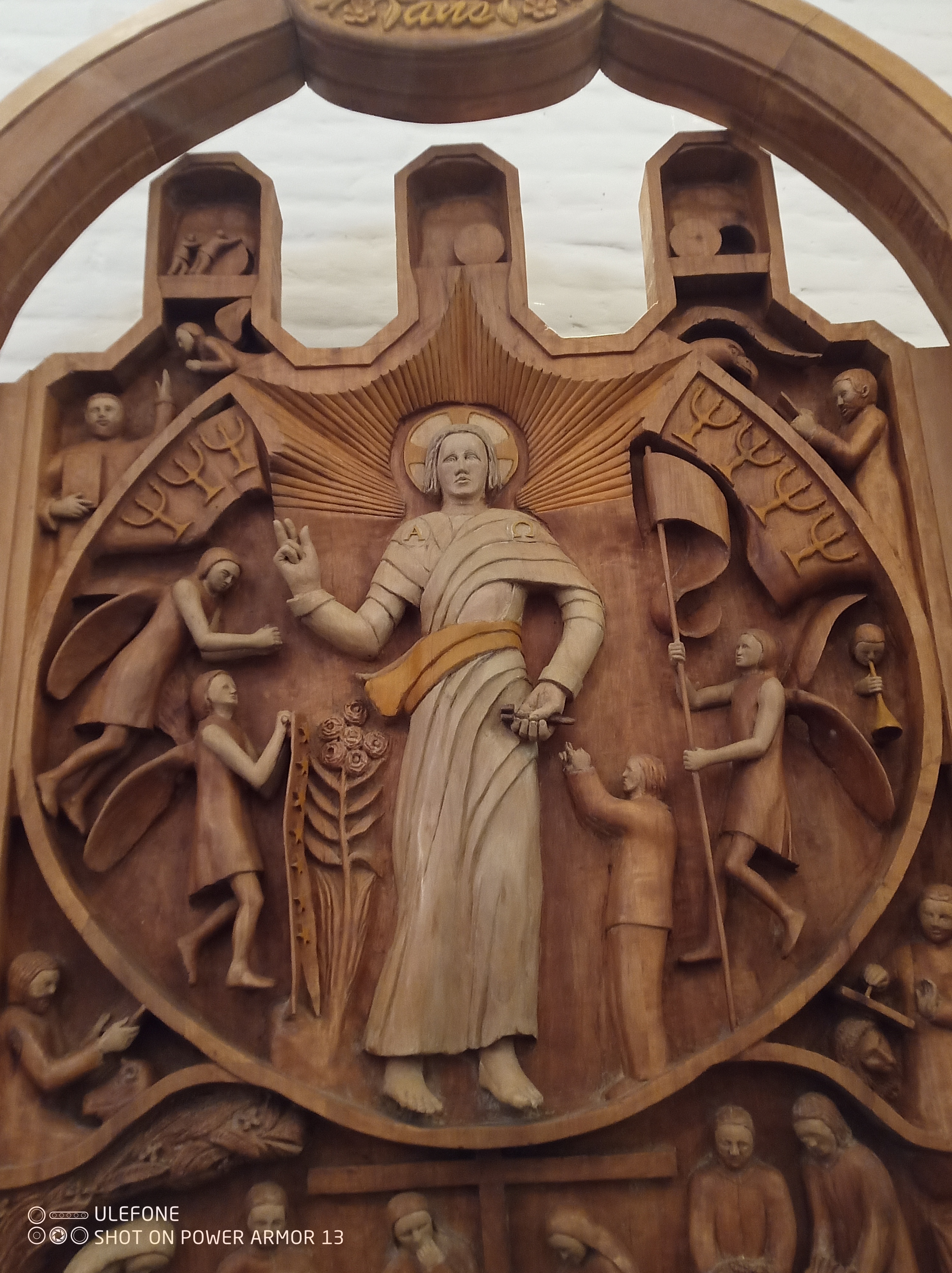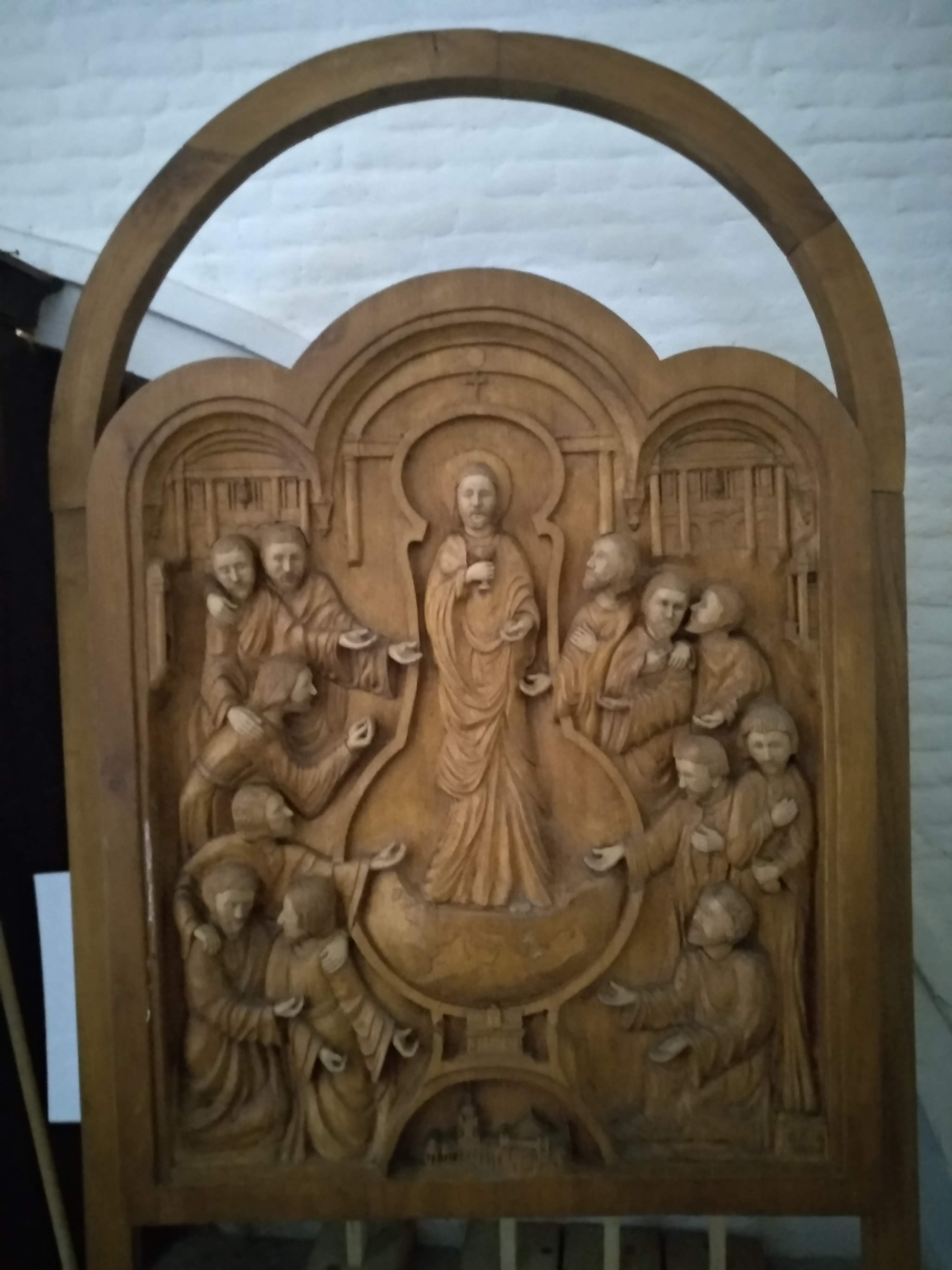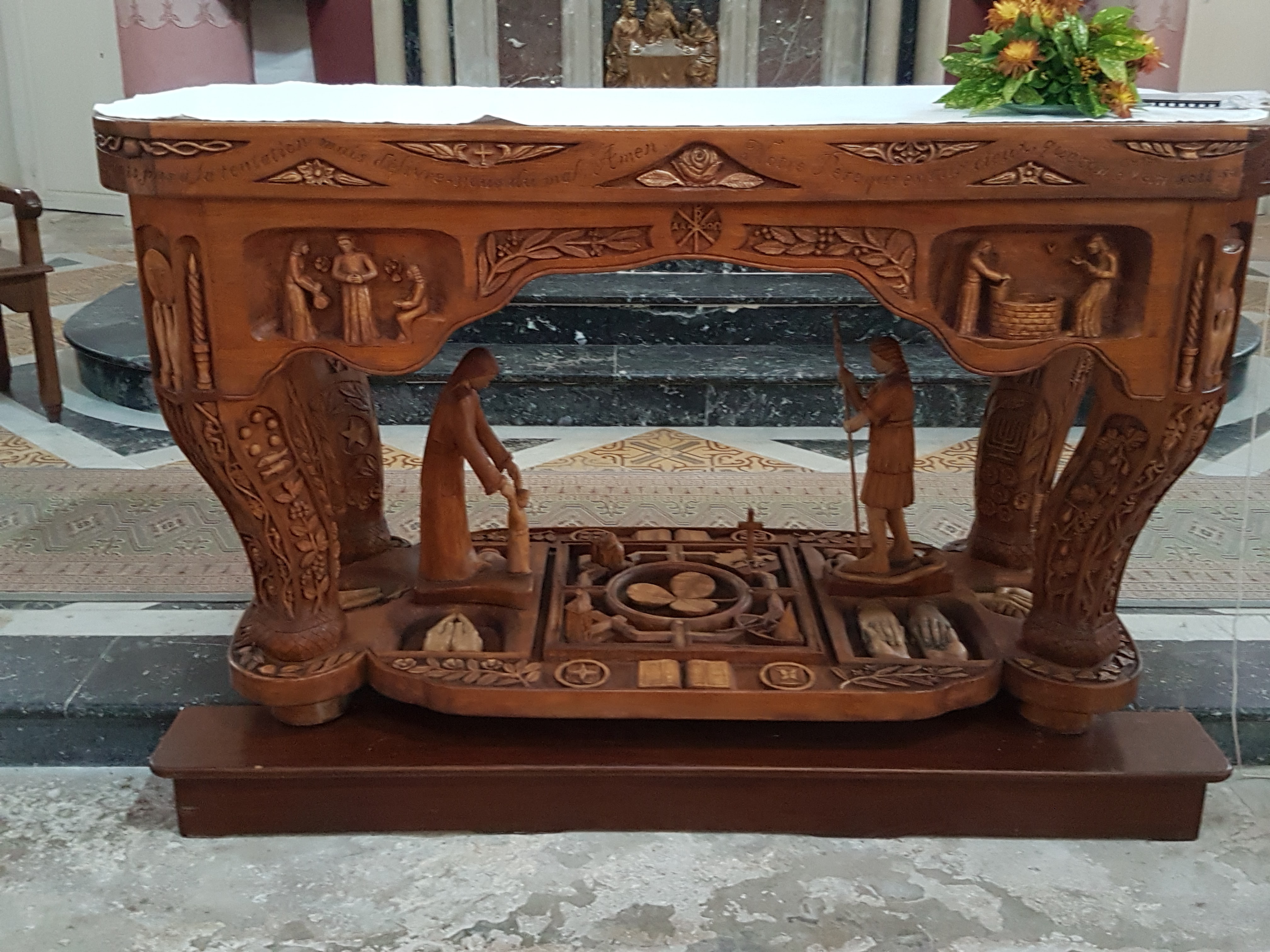 Visite enrichissante, Construction de forme très particulière et autel en chêne remarquable.