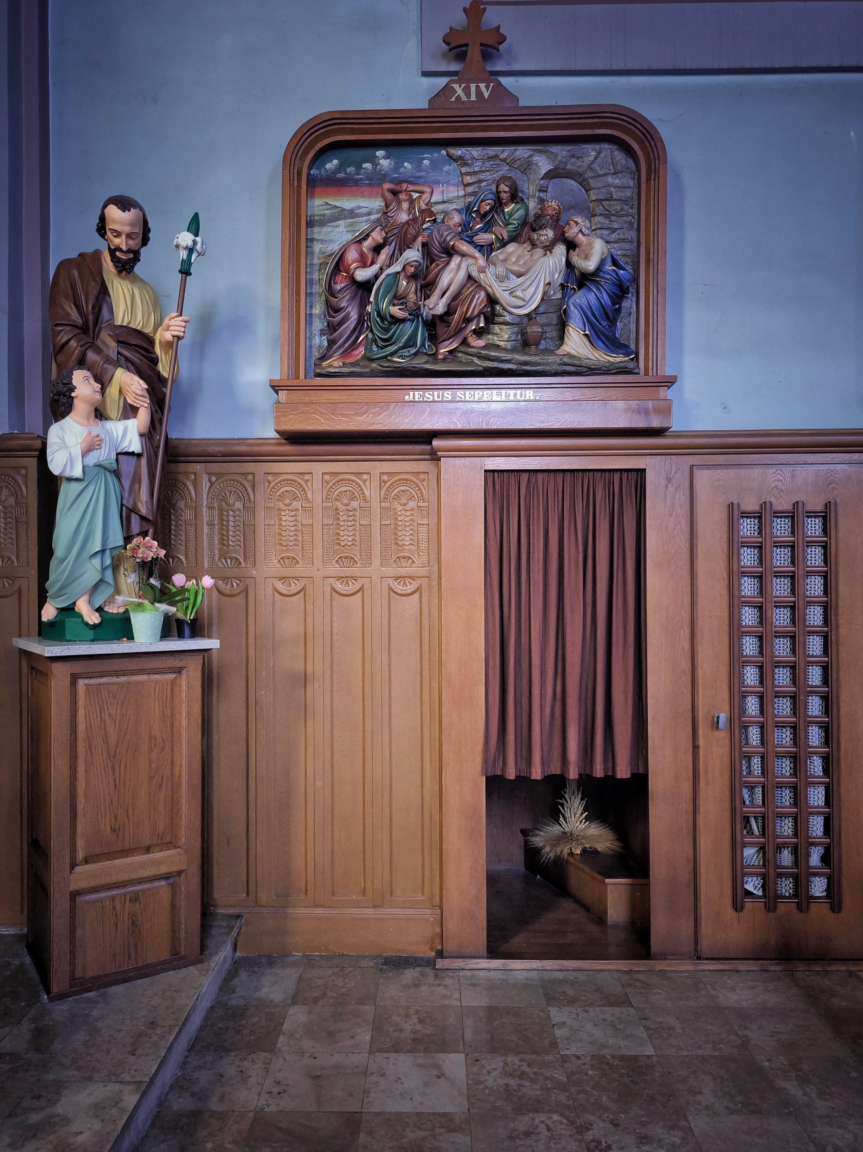 Sous son aspect extérieur austère, cette église du 18ème siècle est garnie d'un magnifique autel, baldaquin et tabernacle dans un style rococo. Les vitraux sont sobres et modernes, un bel orgue du 20ème siècle (1950-60) sur une mezzanine résonne dans tout l'édifice