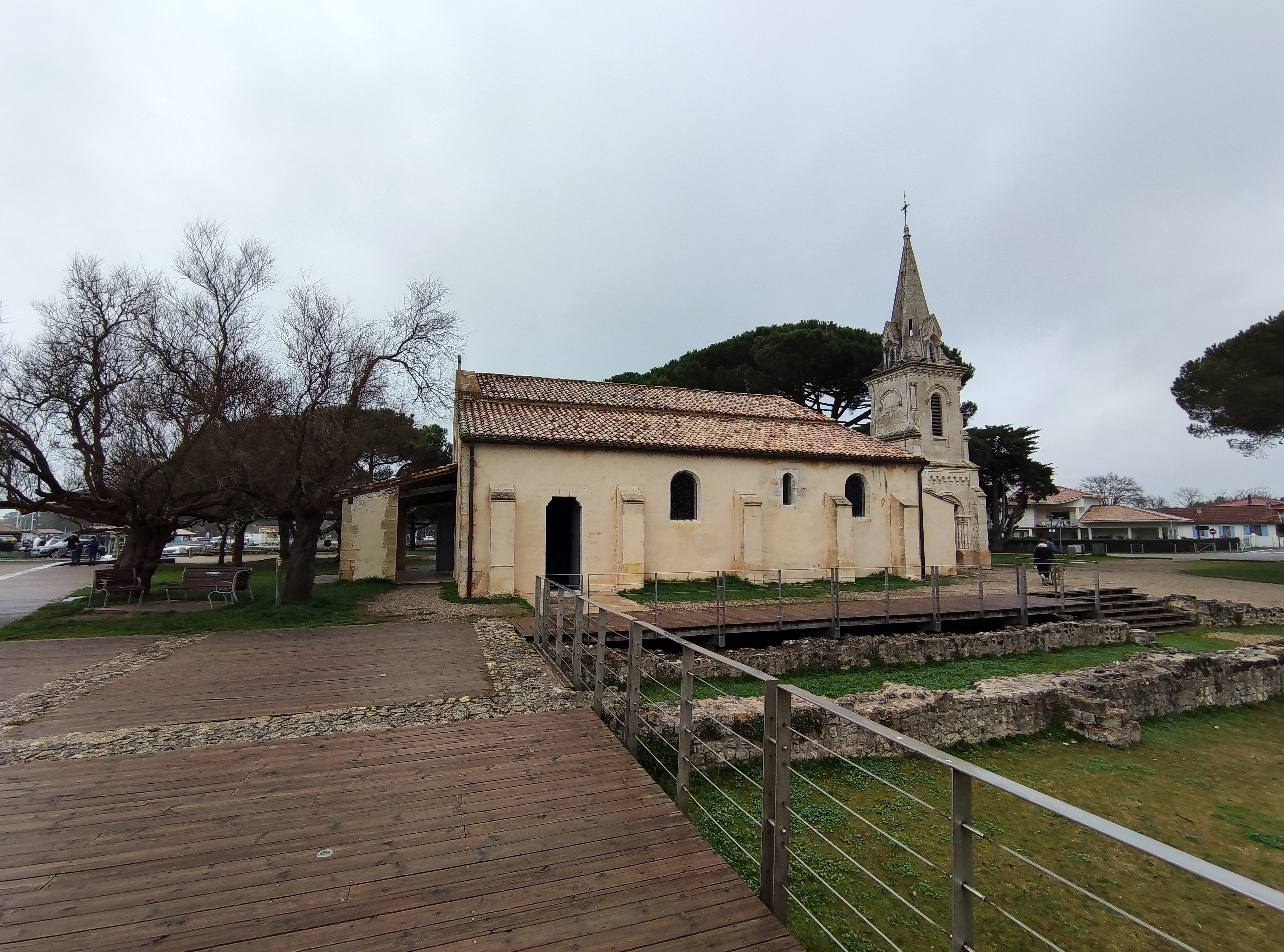 Jolie petite église au bord du bassin avec en prime juste à côté des vestiges d une villa romaine