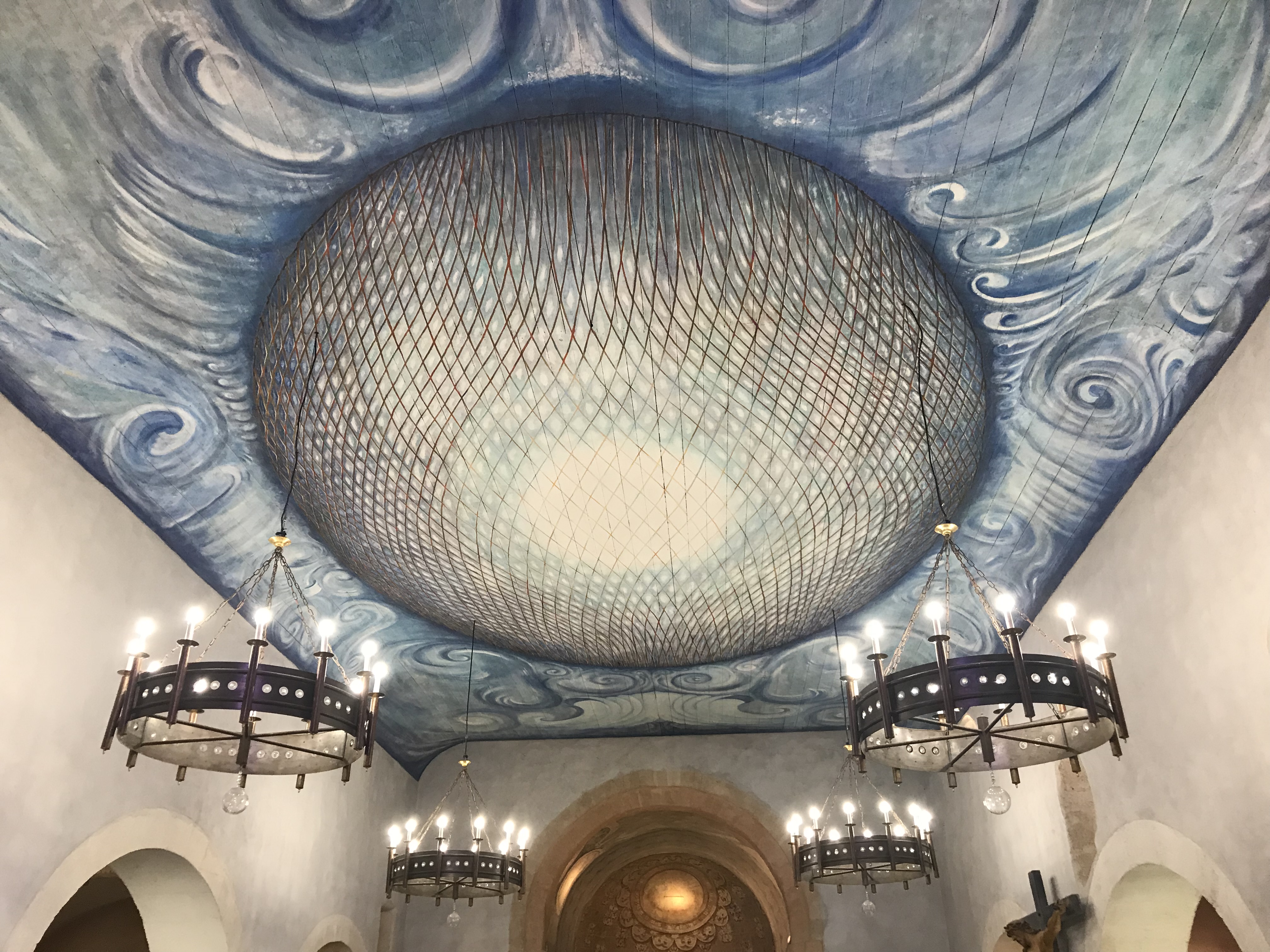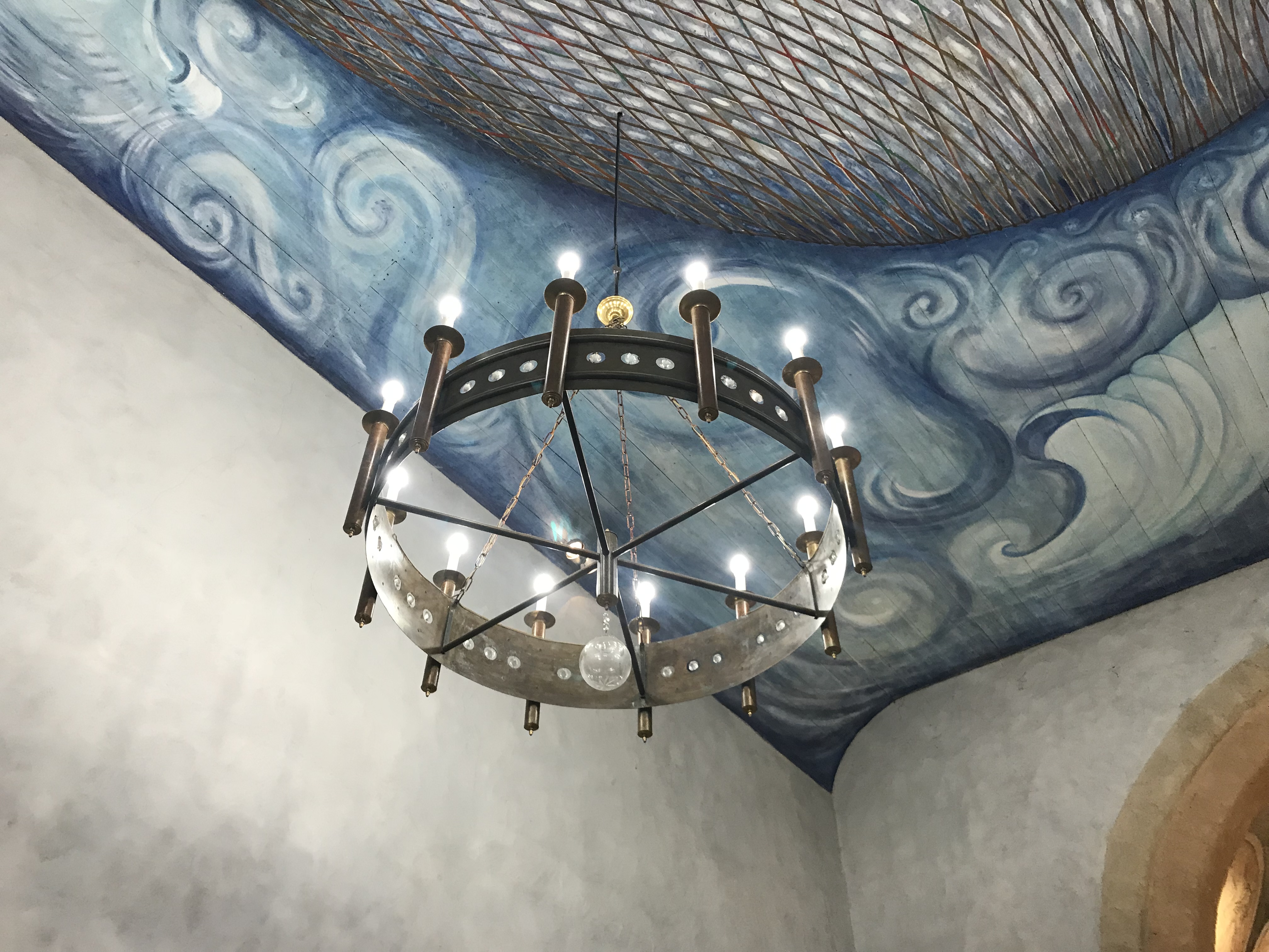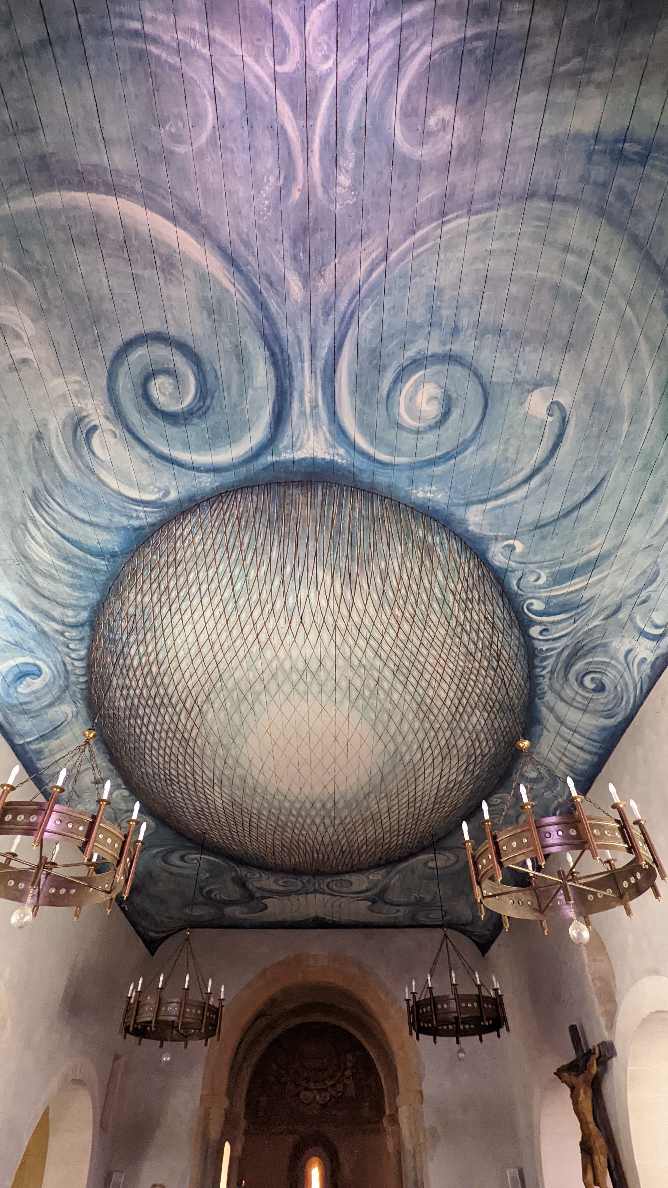Déjà le lieu atypique de cette petite église en bord de mer, ensuite un magnifique plafond peint, enfin un mobilier original en métal...bref vaut le détour largement.