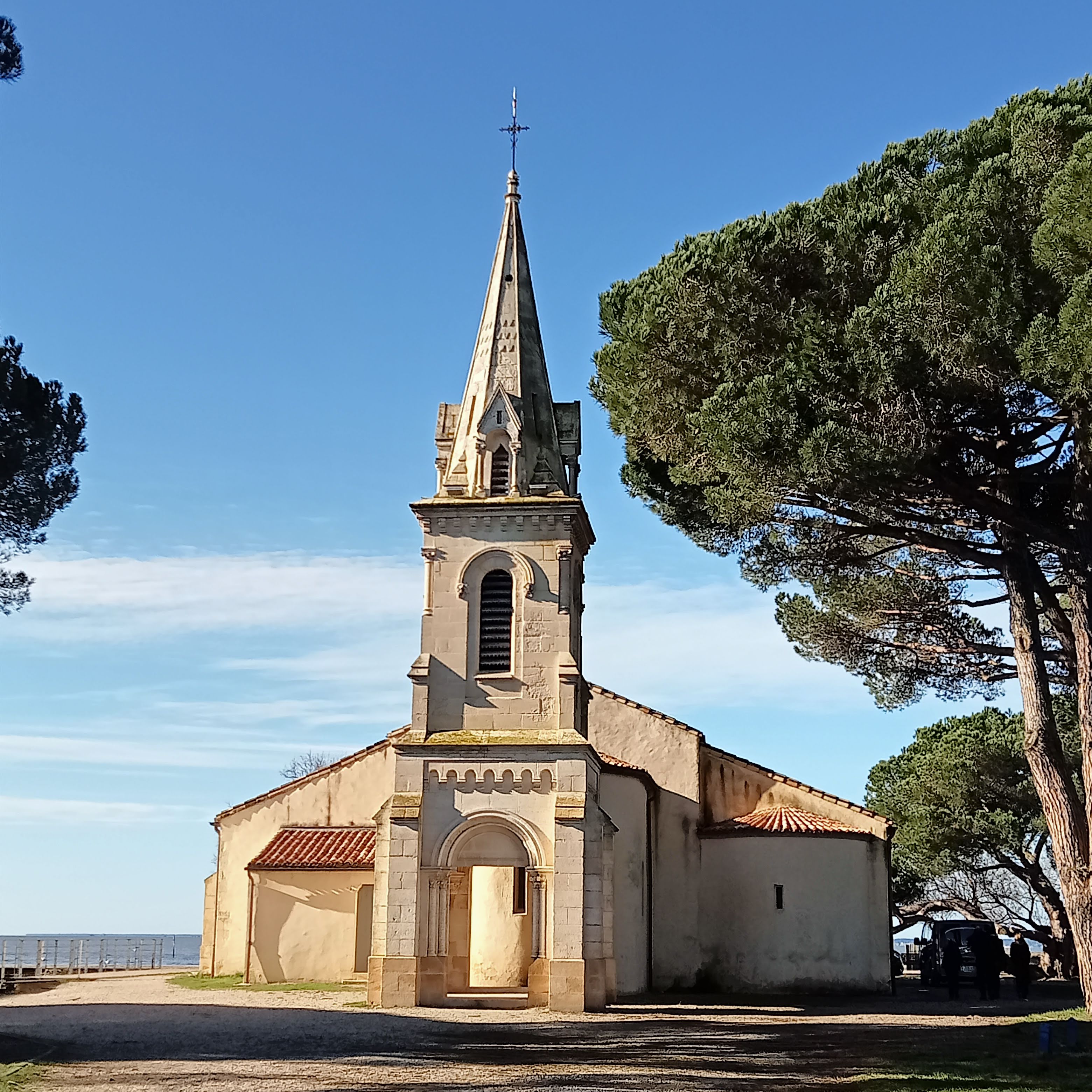 Charmante petite église juste devant le bassin d’Arcachon et à côté d'un site romain et du port d'Andernos. Le lieu est enchanteur.