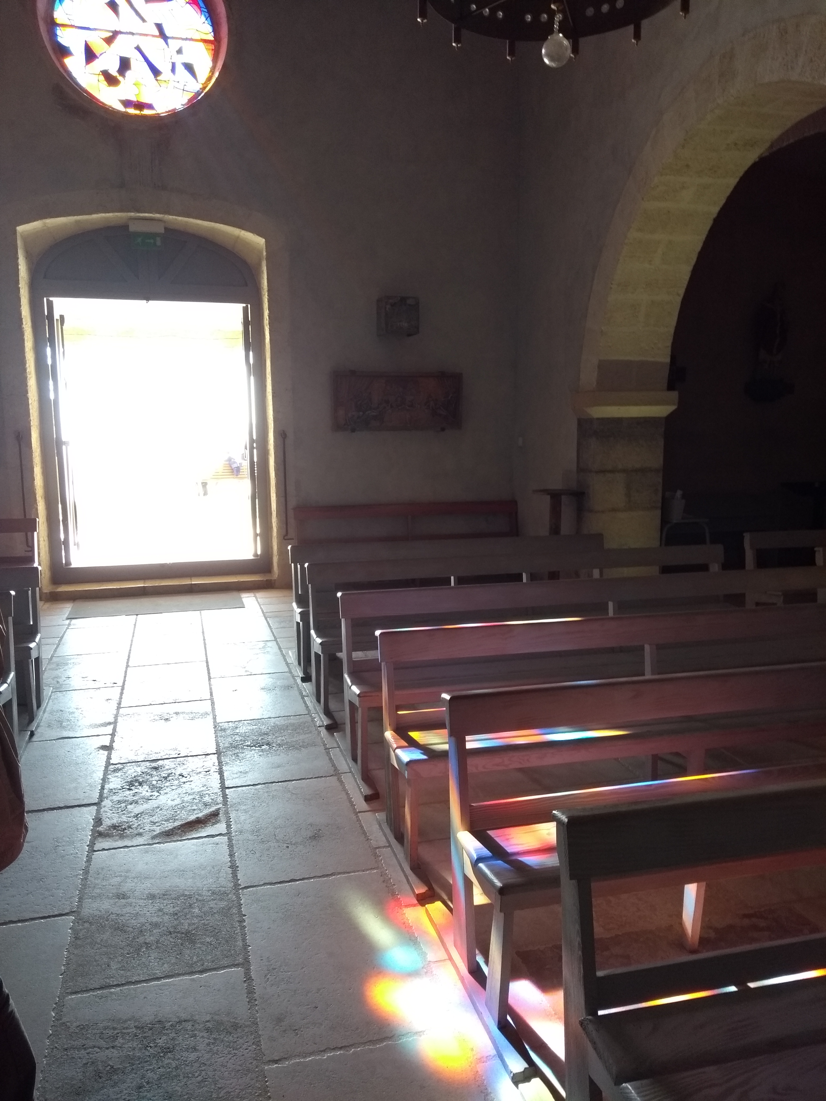 Belle Petite église , beaux vitraux et belles lumières avec le soleil .