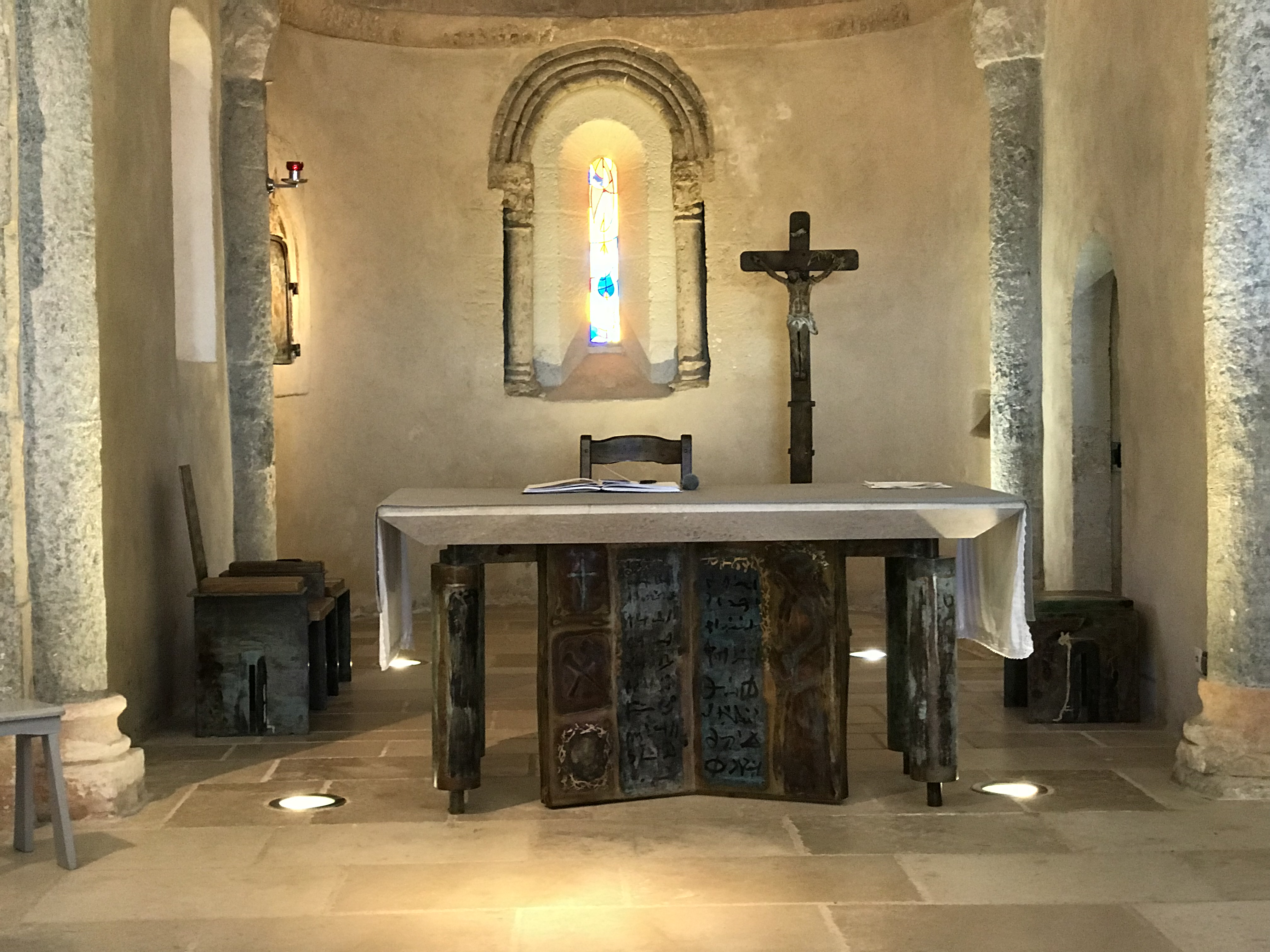 Belle petite eglise gallo-romaine à visiter mais ne penser pas être assis lors des offices principaux !