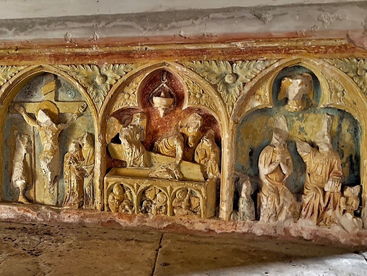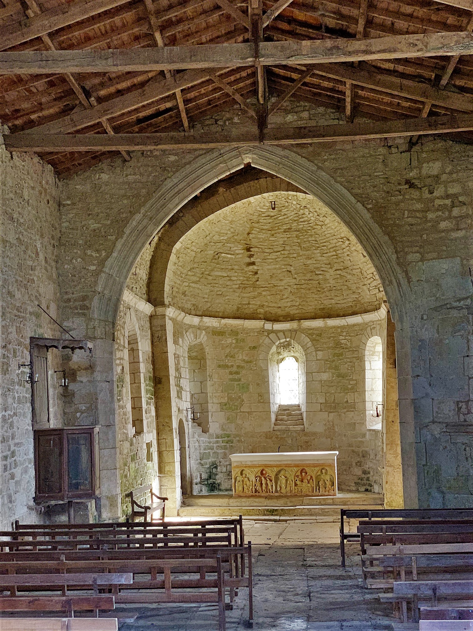 Une charmante église du 13ème siècle, loin de tout et pourtant près d'un important cimetière, située au bout de la route, des petits panneaux (église de Sainte-Eanne) vous guident, la localisation sur google maps est bonne, le GPS peut être utile. Une charmante église du 13ème siècle, la nef est à charpente apparente, la voûte en berceau du chœur a commencé à s'effondrer, découvrant les voliges, l'abside est voûtée en demi-coupole. L'adjonction d'une chapelle gothique au 15ème siècle a créé un bras de transept au sud. Dans le chœur, se trouve un autel intéressant, dont la face avant est une partie d'un retable du 15ème siècle. Chapelle et autel apportent une touche agréable de décors sculptés. Dépourvue de clocher, cette église est située à côté de l'ancien cimetière paroissial.
