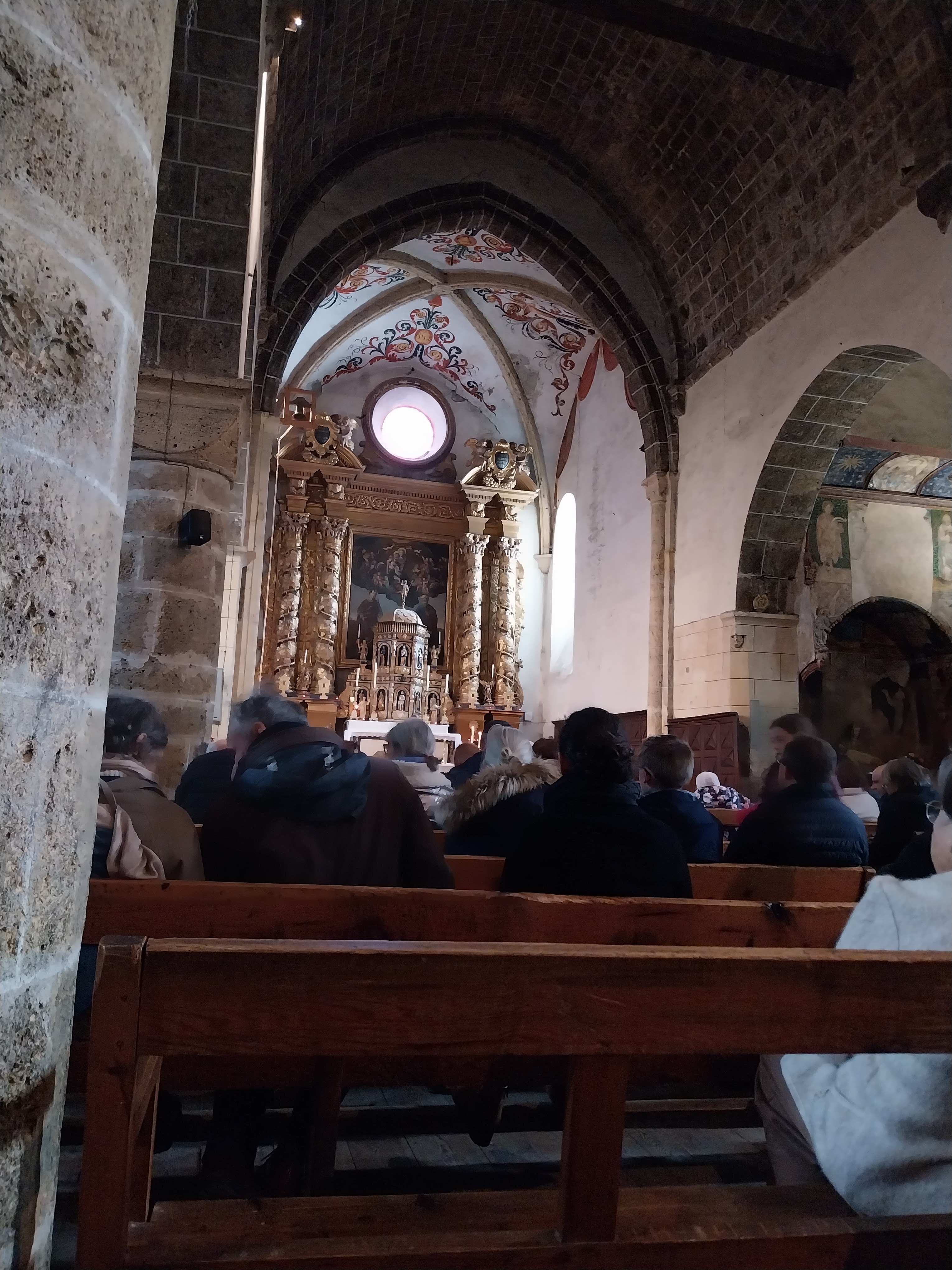 Très belle église avec des fresques typiques de la région. La paroisse est accueillante.