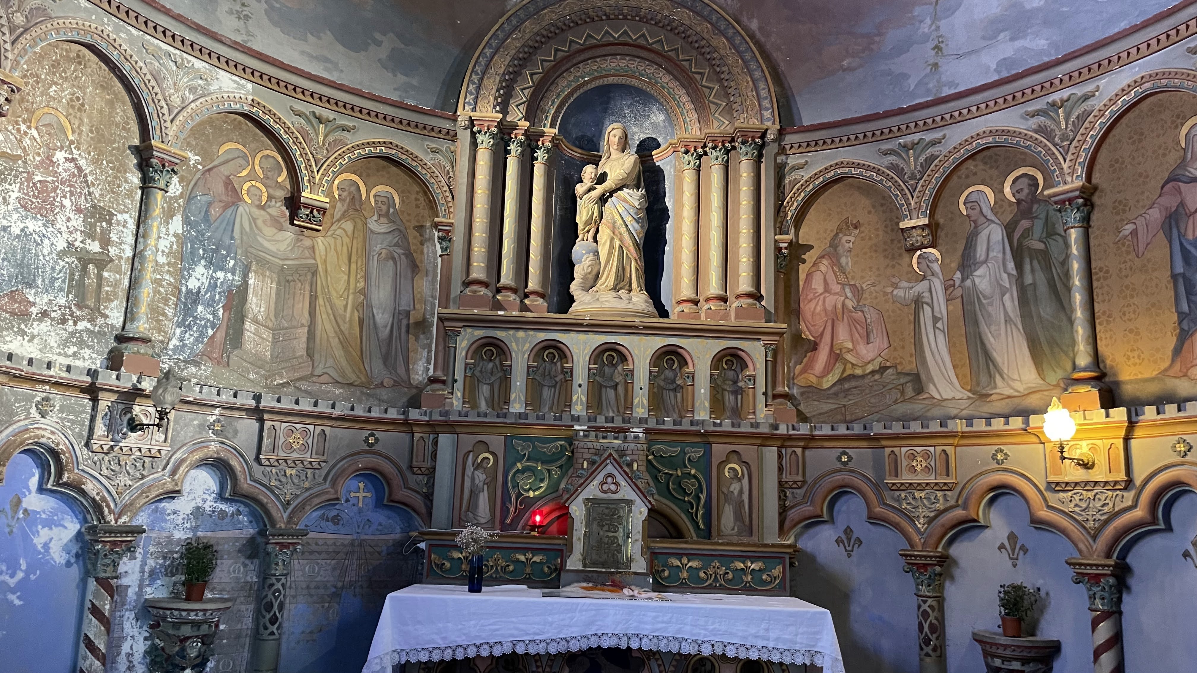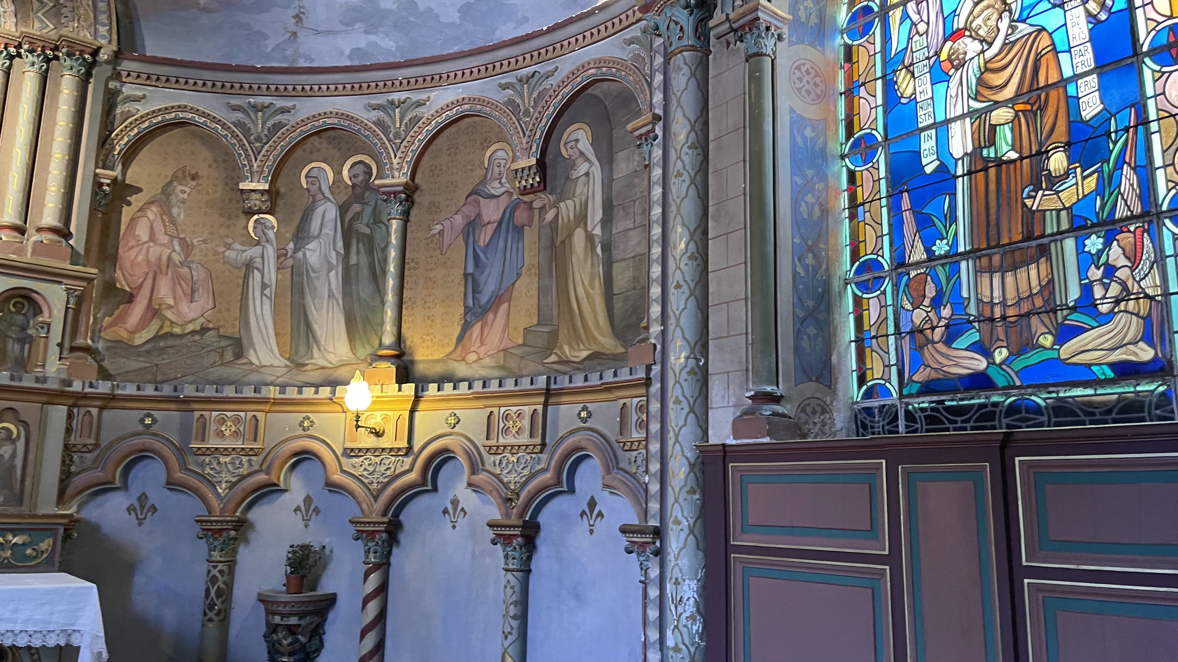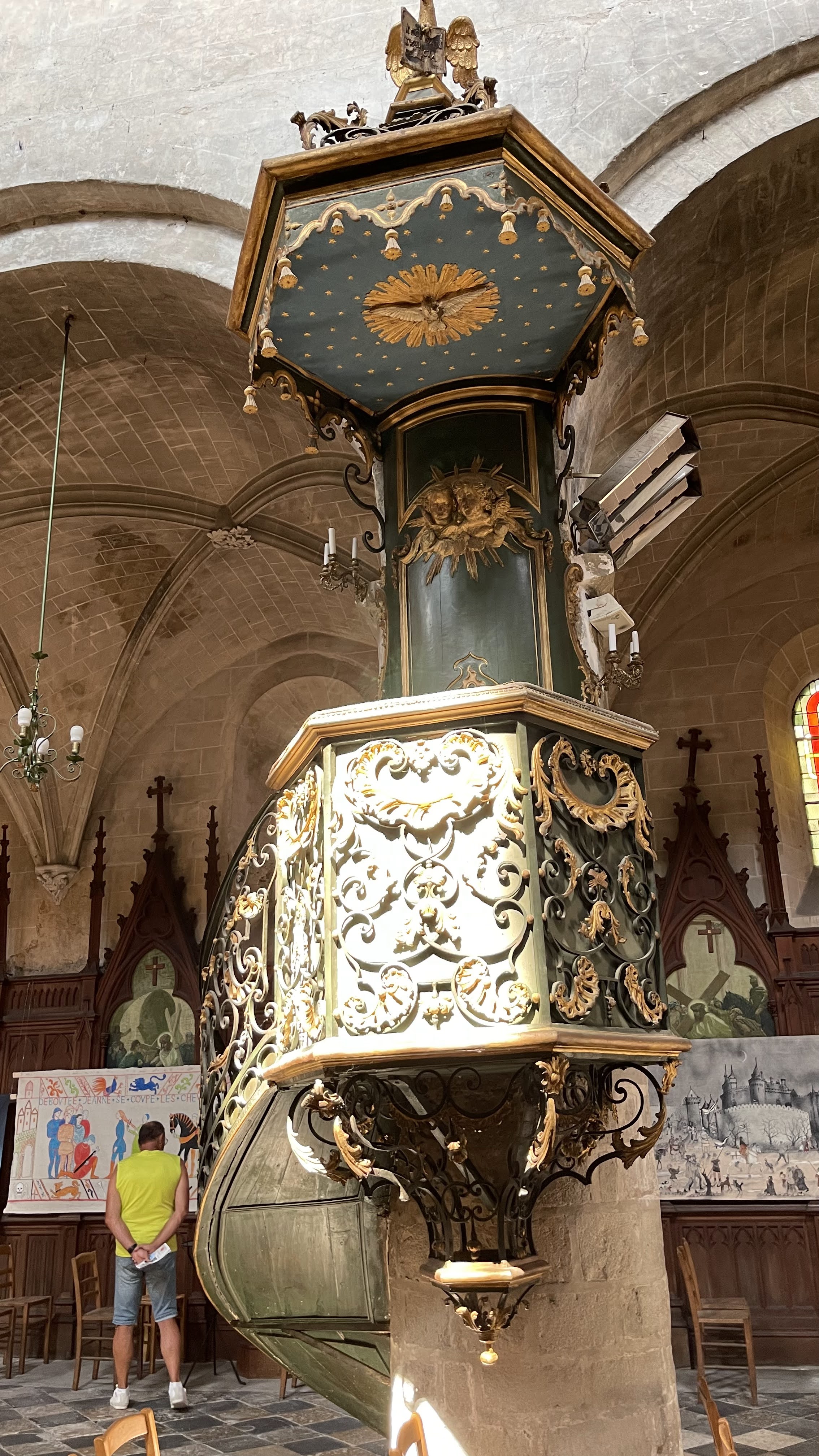 En pénétrant dans l'église de Saint-Étienne à Jargeau, je suis immédiatement enveloppé par une atmosphère solennelle, chargée d'histoire. Les murs anciens, baignés d'une lumière tamisée filtrant à travers les vitraux colorés, me racontent des siècles de dévotion et de turbulence. Le silence révérencieux est ponctué par le doux murmure des prières et le bruissement des pas sur les dalles de pierre usées par le temps. Je m'avance sous les voûtes imposantes, témoins du XIIe siècle, où Manassès de Galande, évêque d'Orléans, a consacré cette église. Les arches, robustes et majestueuses, s'élèvent vers le ciel, comme pour relier le passé au présent. Les couleurs des vitraux dansent sur les murs, projetant des histoires de saints et de martyrs dans un kaléidoscope lumineux. Chaque recoin de cette église semble murmurer des récits de l'histoire de France. Je me sens transporté au 12 juin 1429, quand Jeanne d'Arc, figure de bravoure et de foi, mena la prise de Jargeau. Ces murs ont été témoins de sa vaillance, et je ressens presque sa présence héroïque dans l'air chargé d'histoire. Lorsque mes yeux se posent sur la chaire en fer forgé et tôle repoussée de 1752, œuvre de P. Perdoux, je suis ébloui par la finesse de son art. La complexité de ses motifs, alliée à la robustesse du matériau, crée un contraste fascinant, reflétant l'harmonie entre la force et la grâce. L'ambiance de l'église est un mélange d'awe et de paix, où le poids de l'histoire se mêle à la spiritualité. La palette de couleurs, allant des teintes chaudes des châtaignes rappelant la foire historique aux bleus profonds des vitraux, enveloppe le visiteur dans un monde à la fois réel et hors du temps. En quittant l'église, je me sens imprégné de son histoire, de sa beauté, et de son importance culturelle. L'expérience est à la fois éducative et spirituelle, laissant une envie profonde de mieux connaître et comprendre ce lieu emblématique, où chaque pierre a une histoire à raconter.
