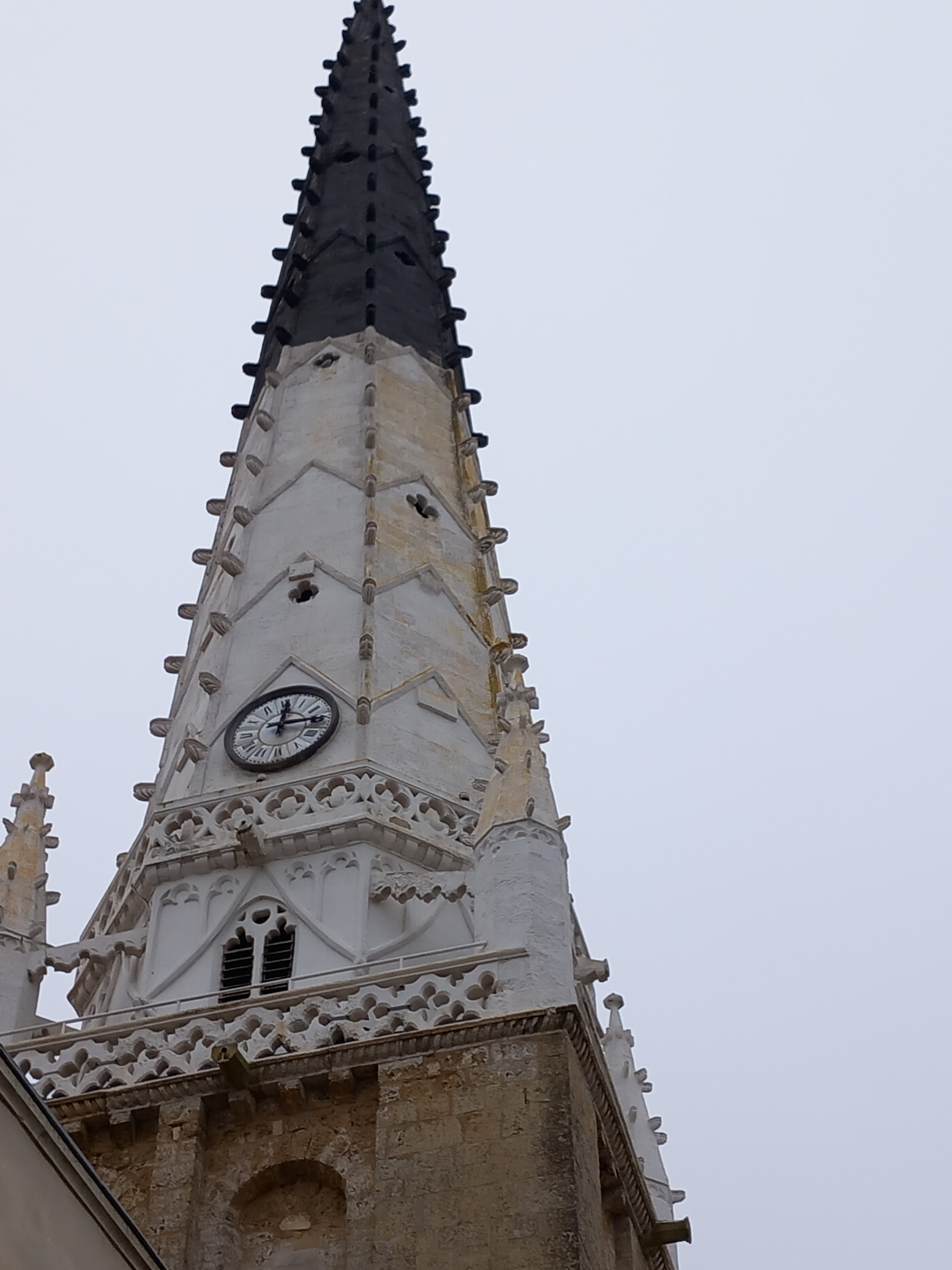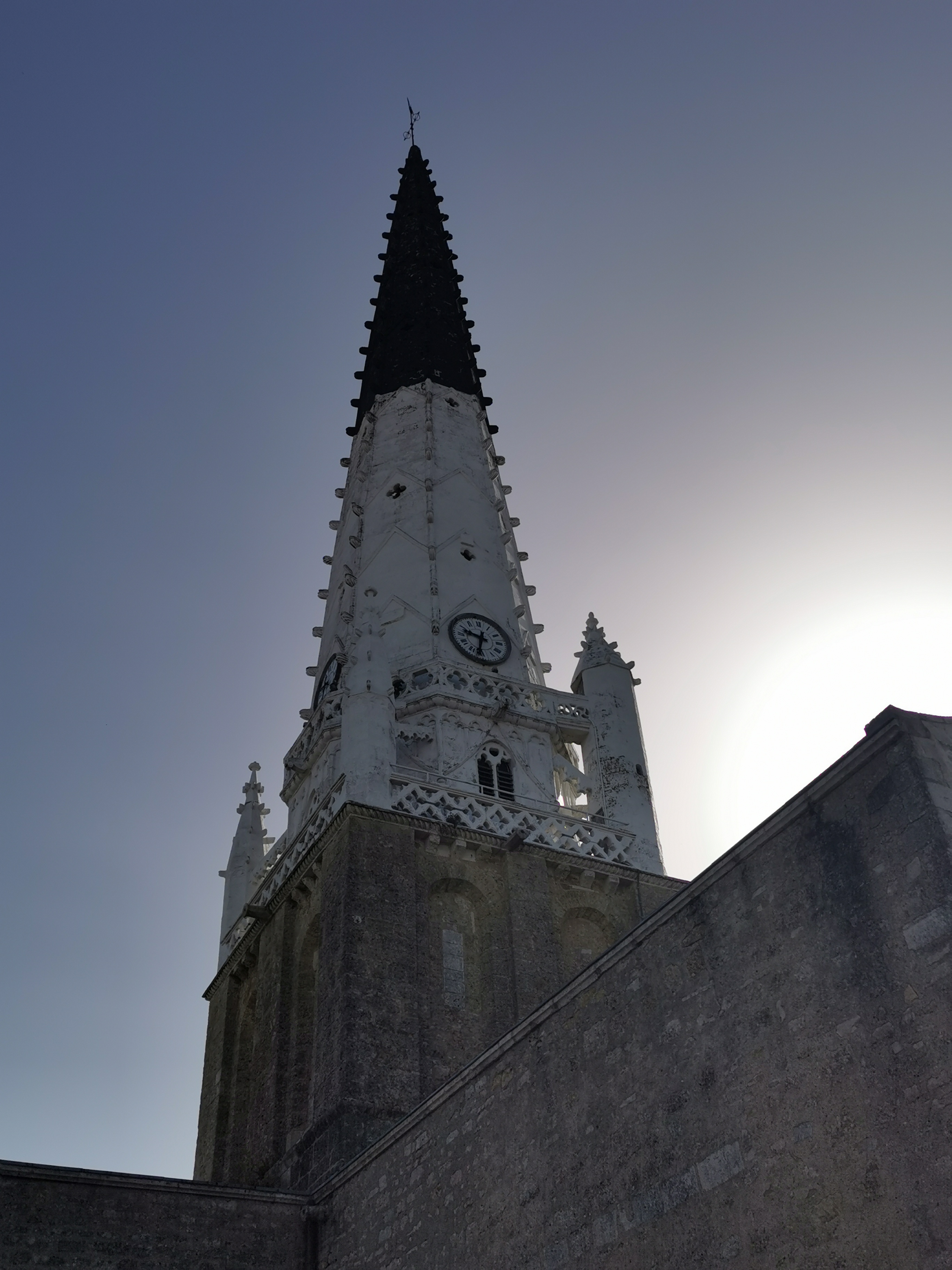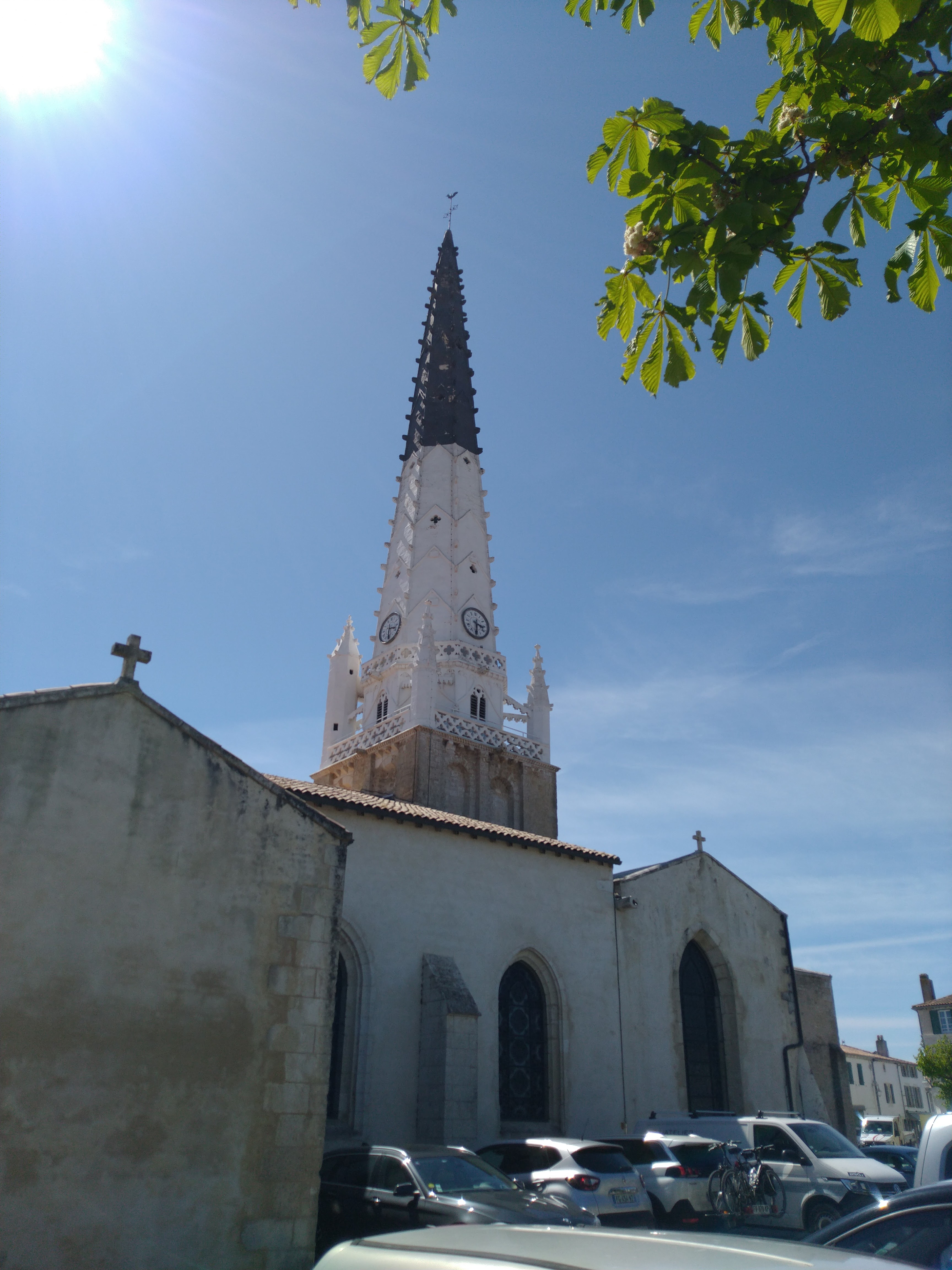 Léglise d'Ars-en-Ré se repère de loin avec son clocher à la flèche peinte en noir et blanc