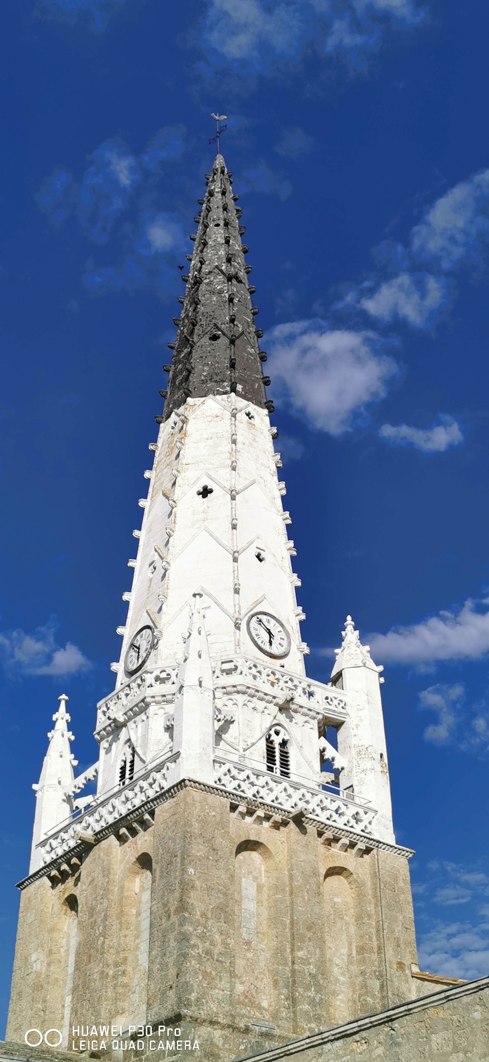 typique de l'île de Ré, clocher peint façon Phare pour repérer les marins...