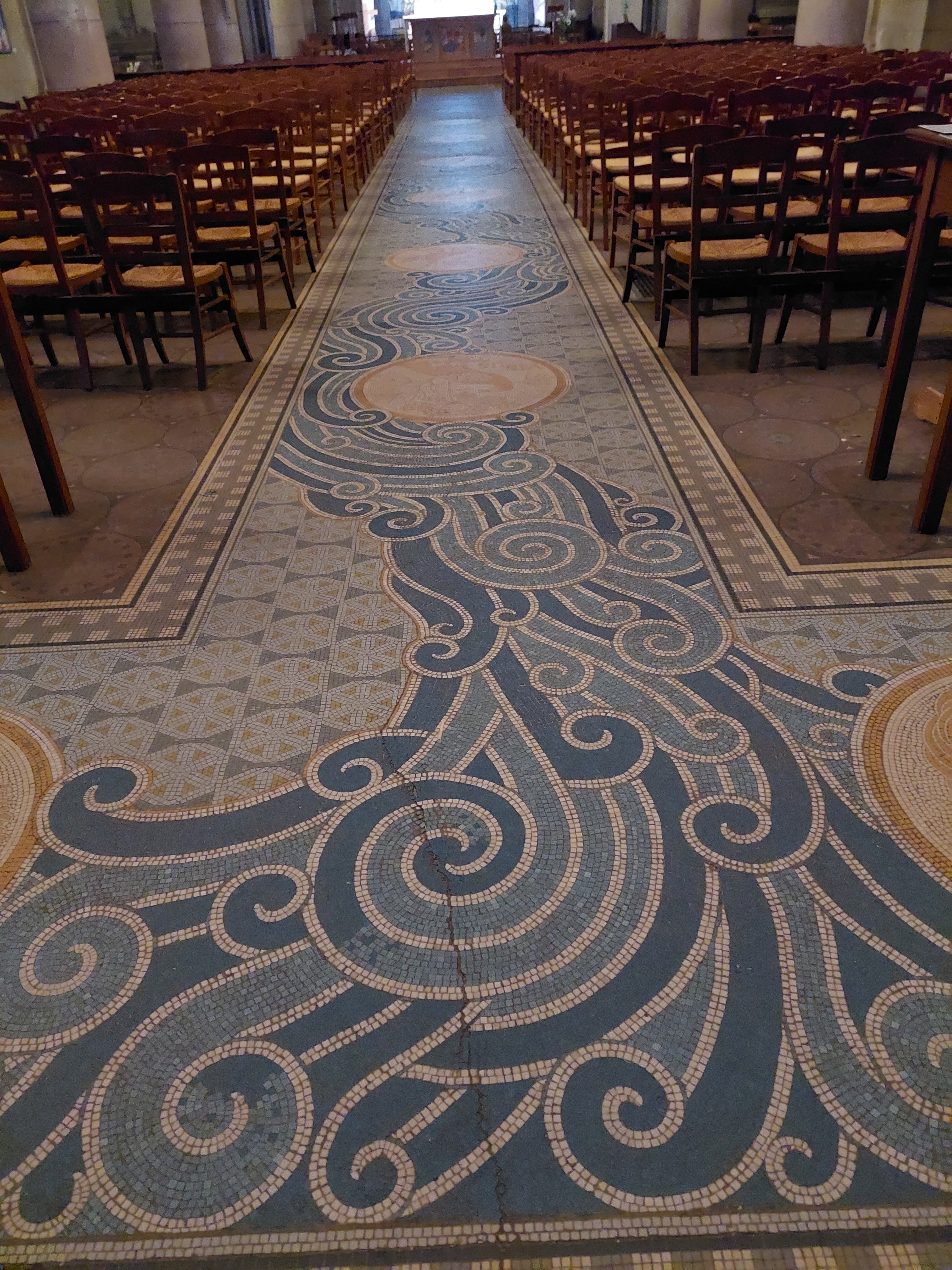 Belle église dont le sol est en mosaïque à voir : quel travail !