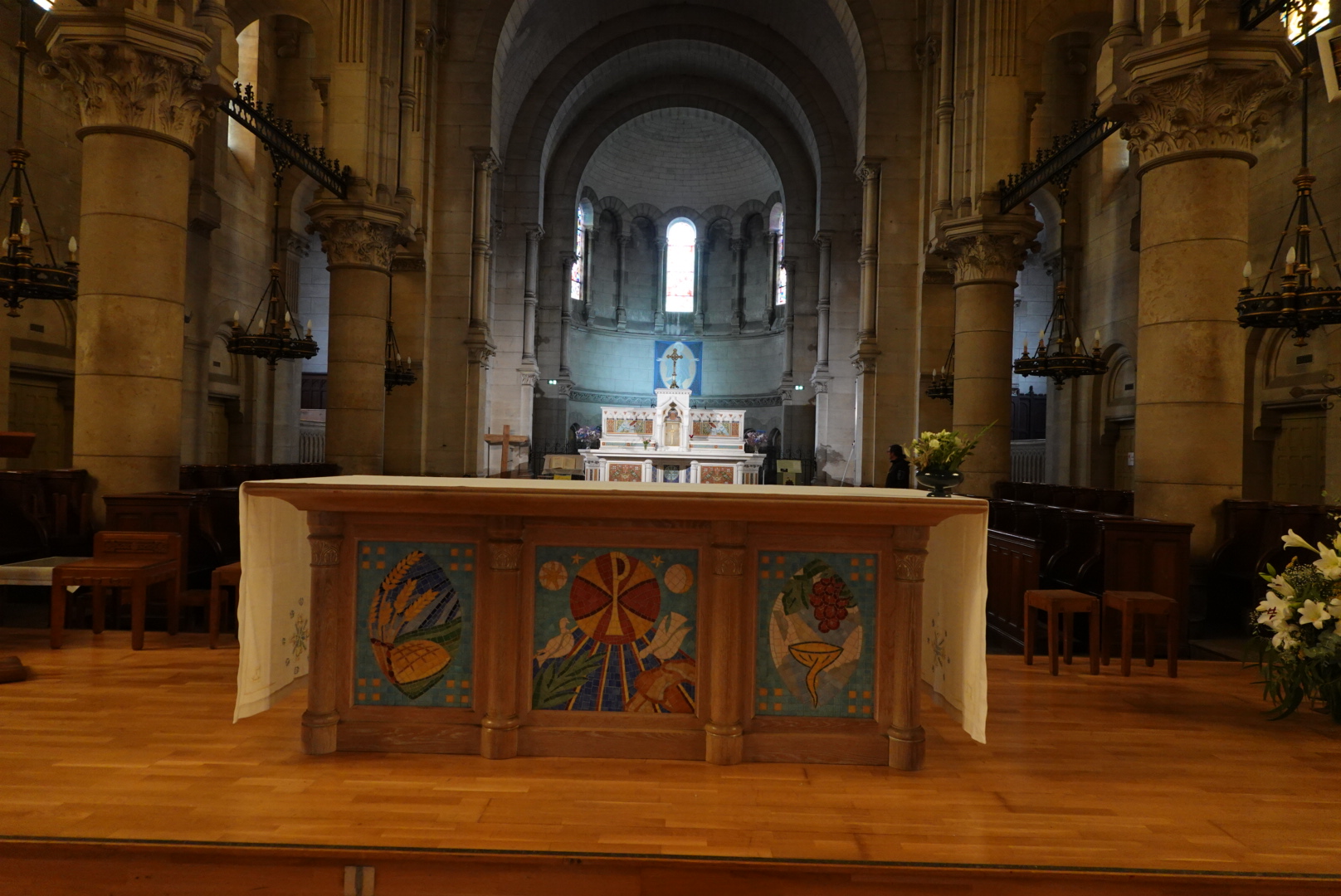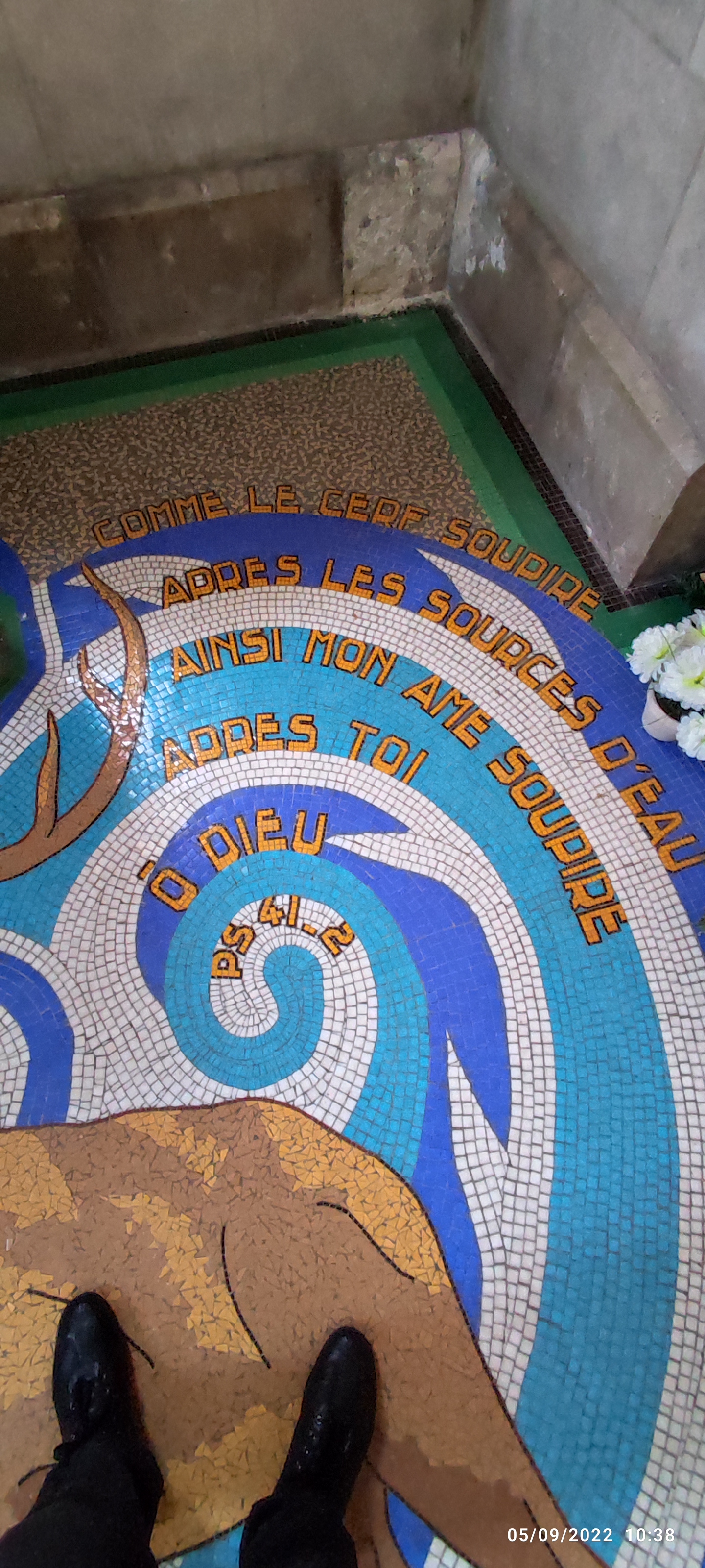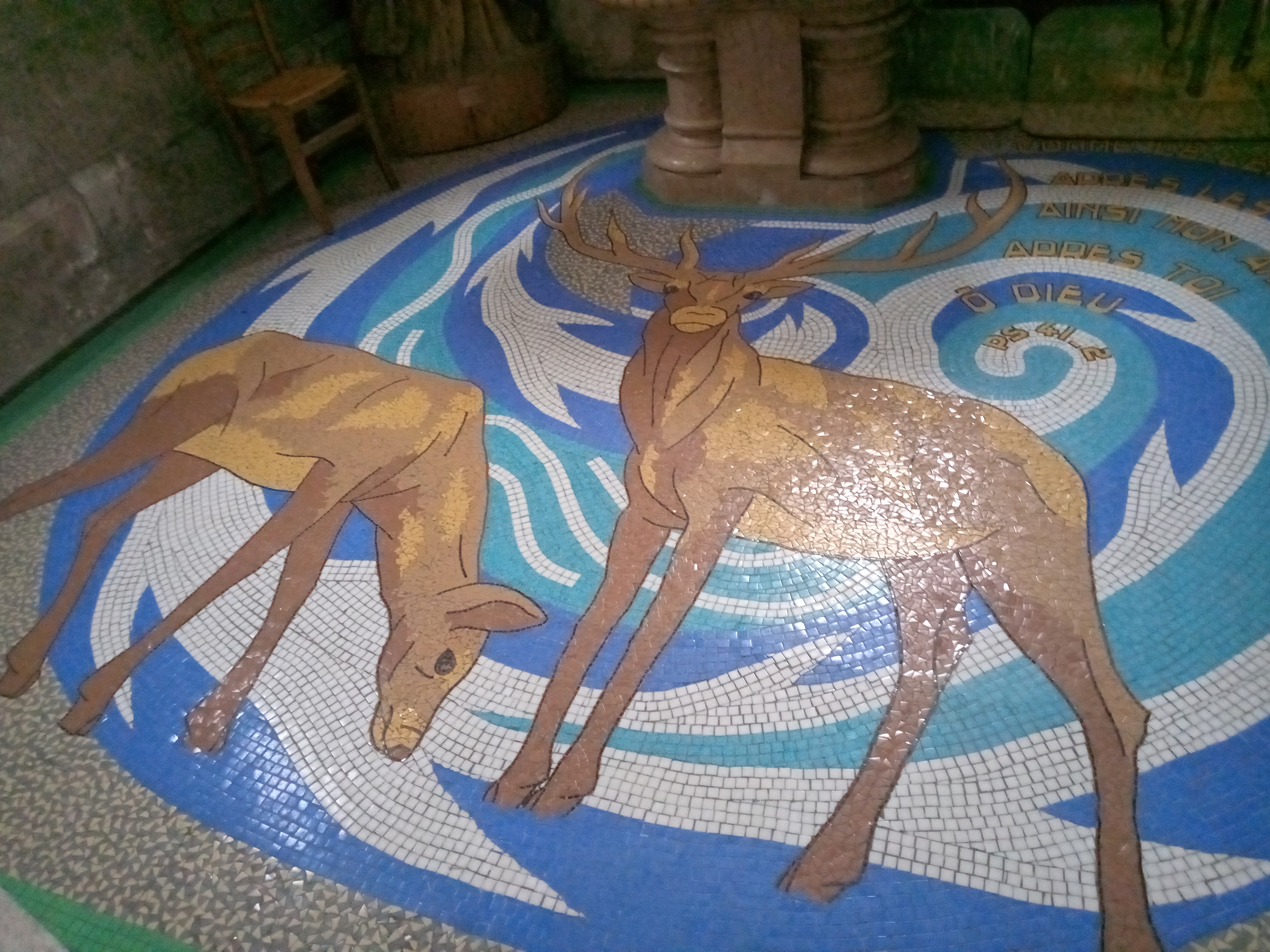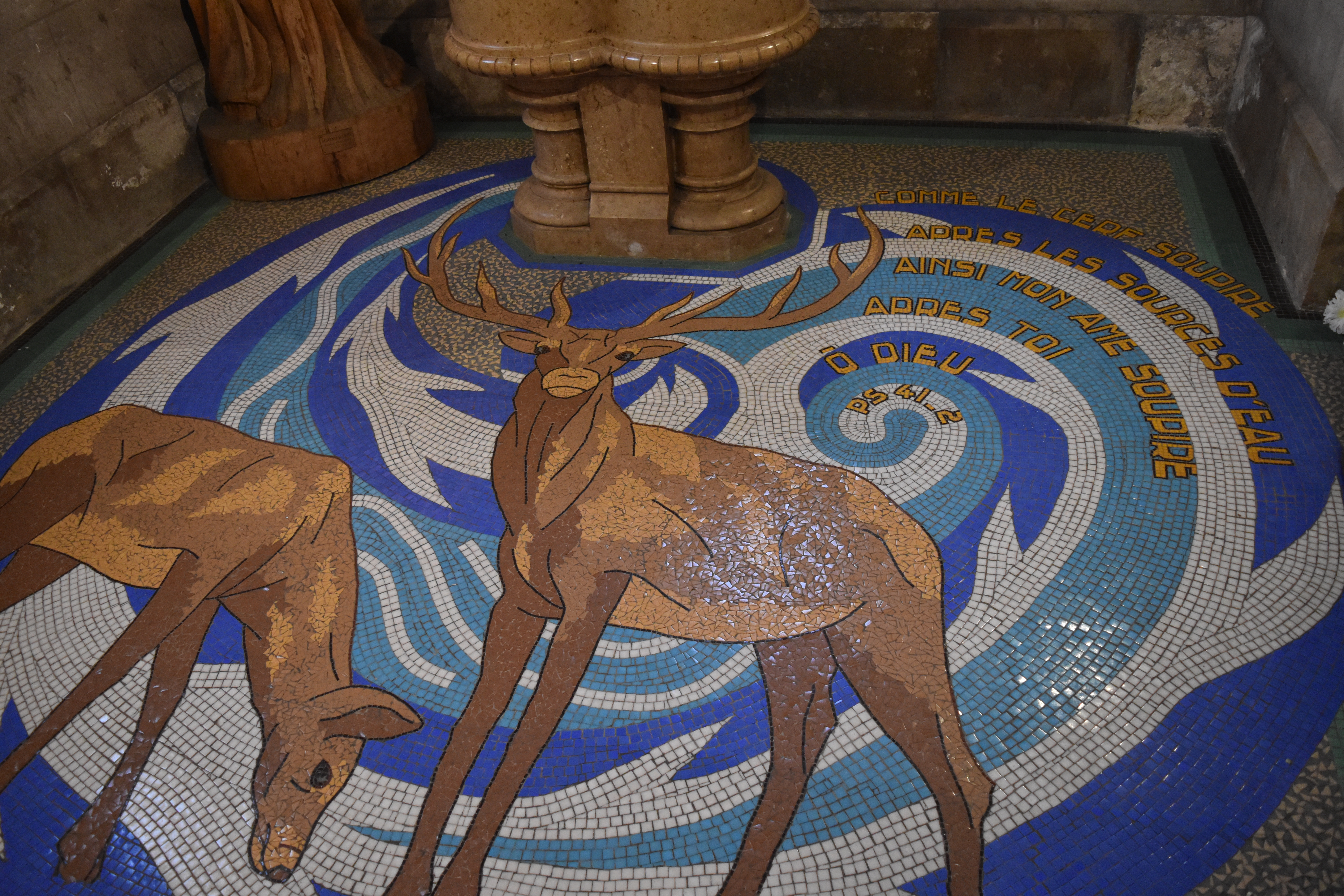 J'adore le baptistère et les dessins au sol en émaux de Briare